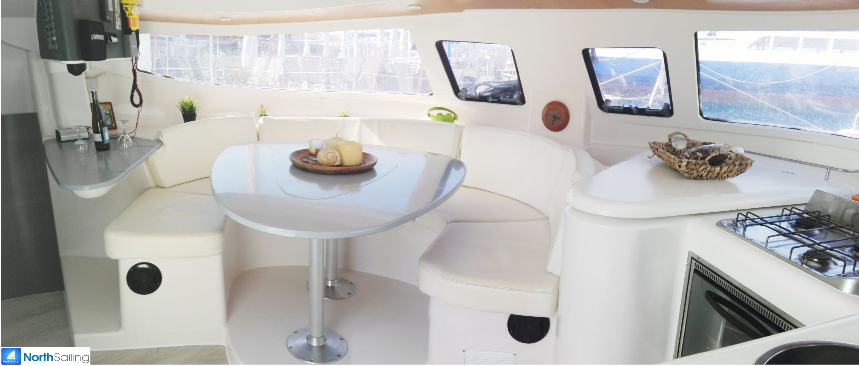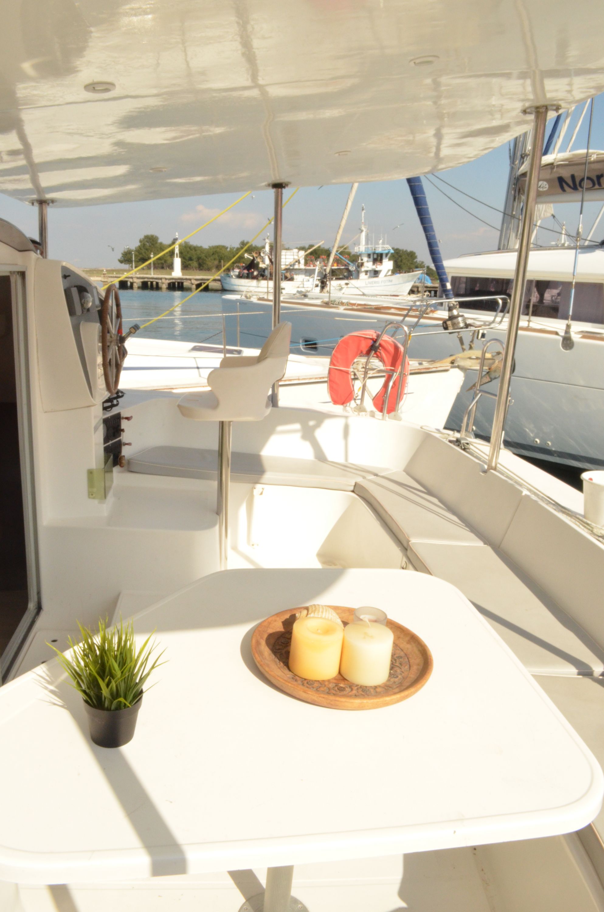 | Outside | 220 V-Landanschluss, Badeleiter, Badeplattform, Biminitop, Cockpitdusche, Cockpitlautsprecher, Cockpitpolster, Cockpittisch, elektr. Ankerwinsch, Segel-Flickwerkzeug, Solaranlage, Sprayhood, Wantenschneider, Windex |