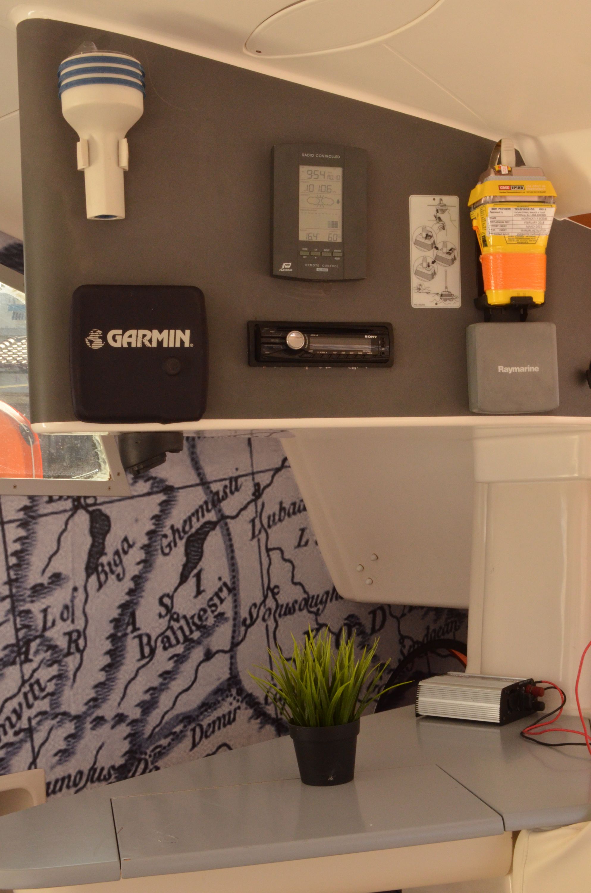 | Navigation | Barometer, Echolot, elektr. Seekarten, Fernglas, GPS mit Kartenplotter im Cockpit, GPS mit Kartenplotter im Salon, Hafenhandbücher, Handpeilkompass, Kompass, Navigationsbesteck, Seekarten, Sumlog, Windmesser |