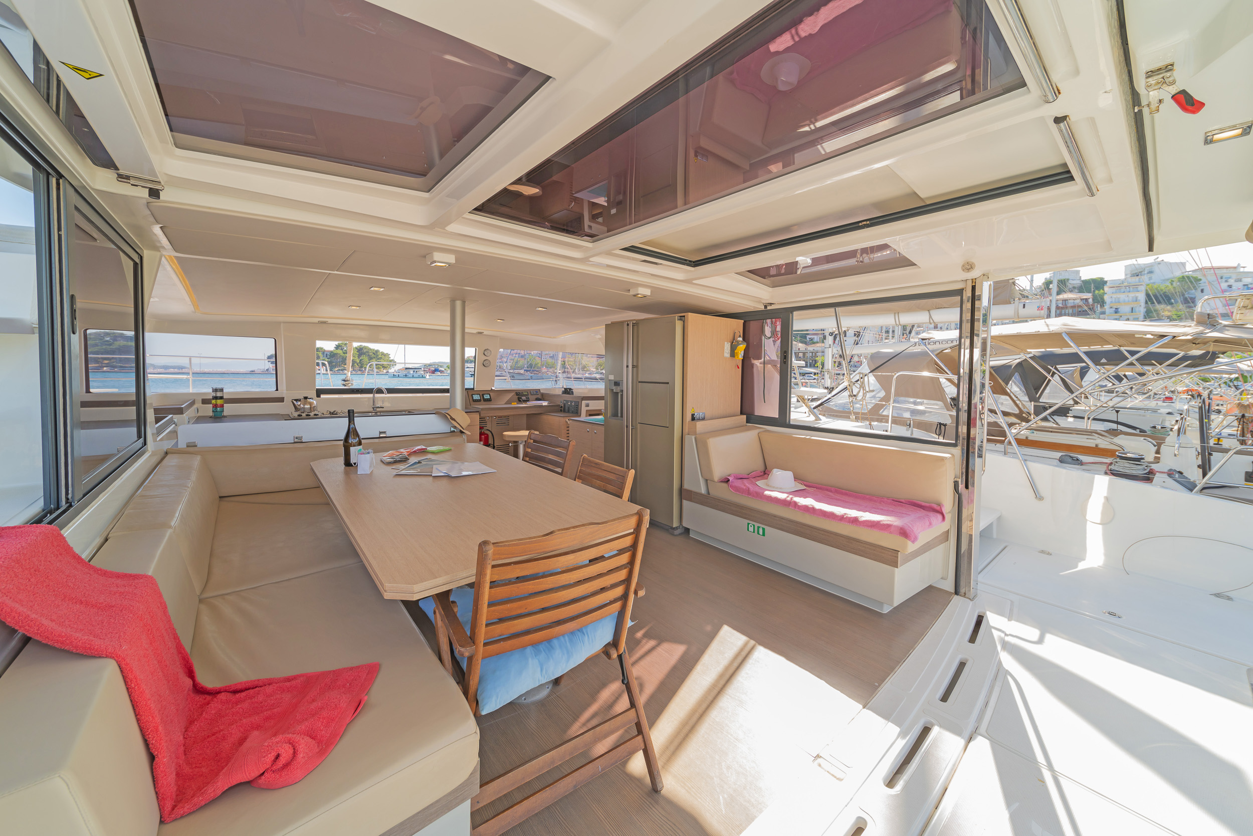 | Outside | Biminitop, Cockpitpolster, elektr. Winsch, Gangway, Solaranlage, Sprayhood |