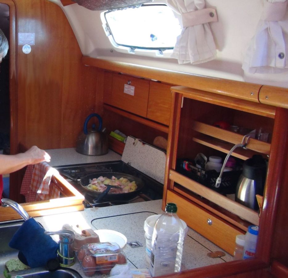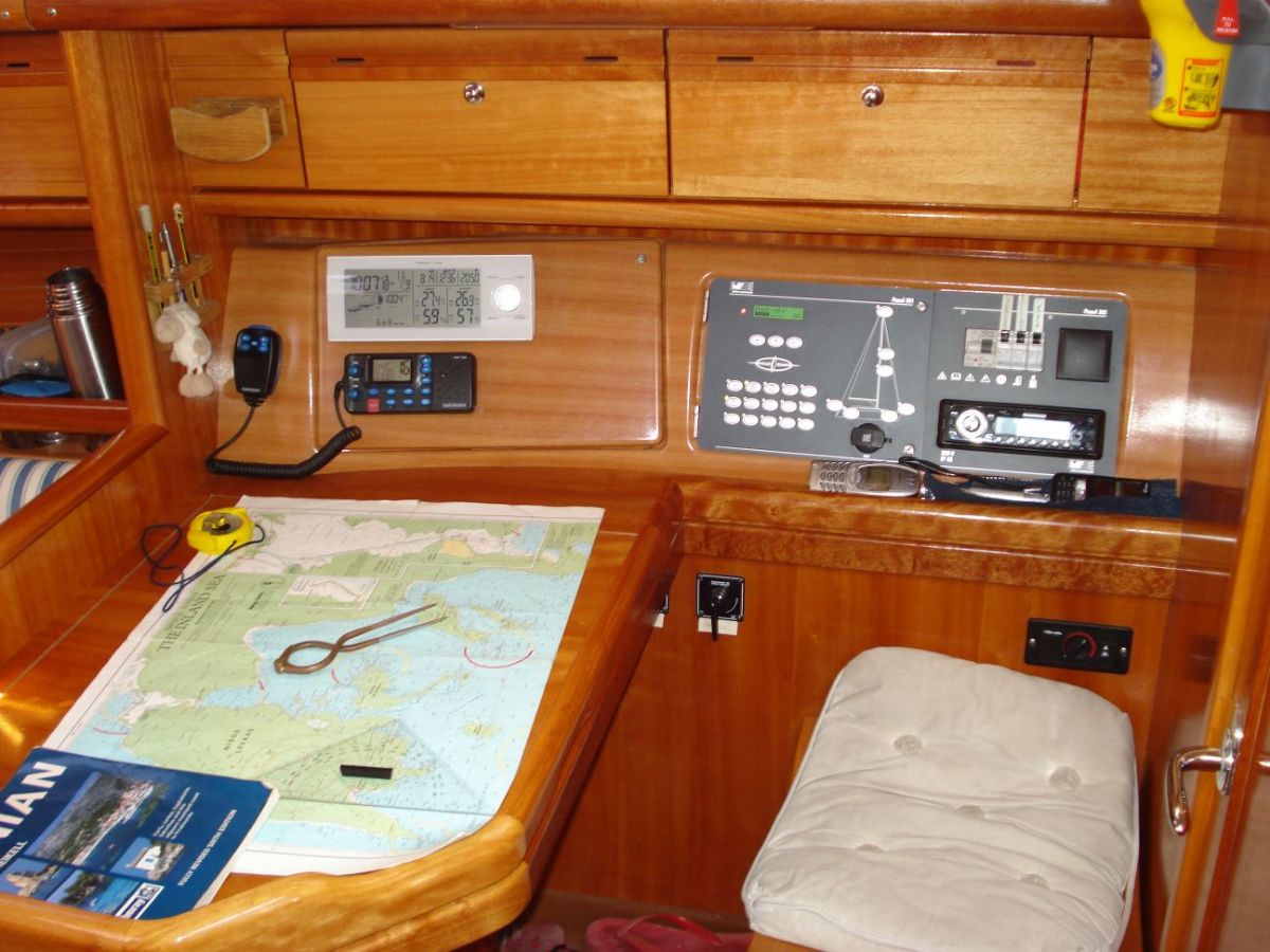 | Navigation | Barometer, Fernglas, GPS mit Kartenplotter im Cockpit, Handpeilkompass, Kompass, Seekarten, Sumlog, Windmesser |