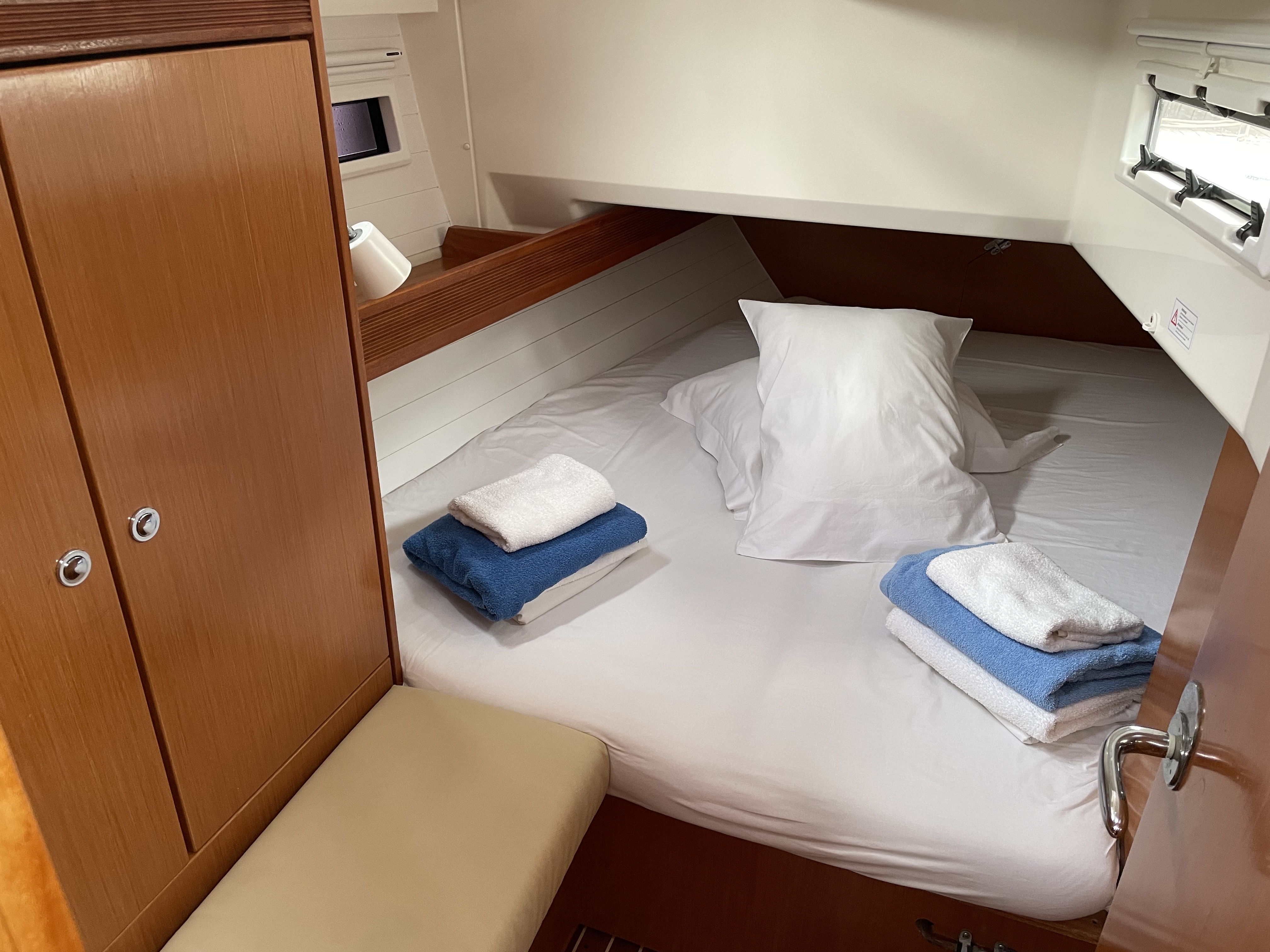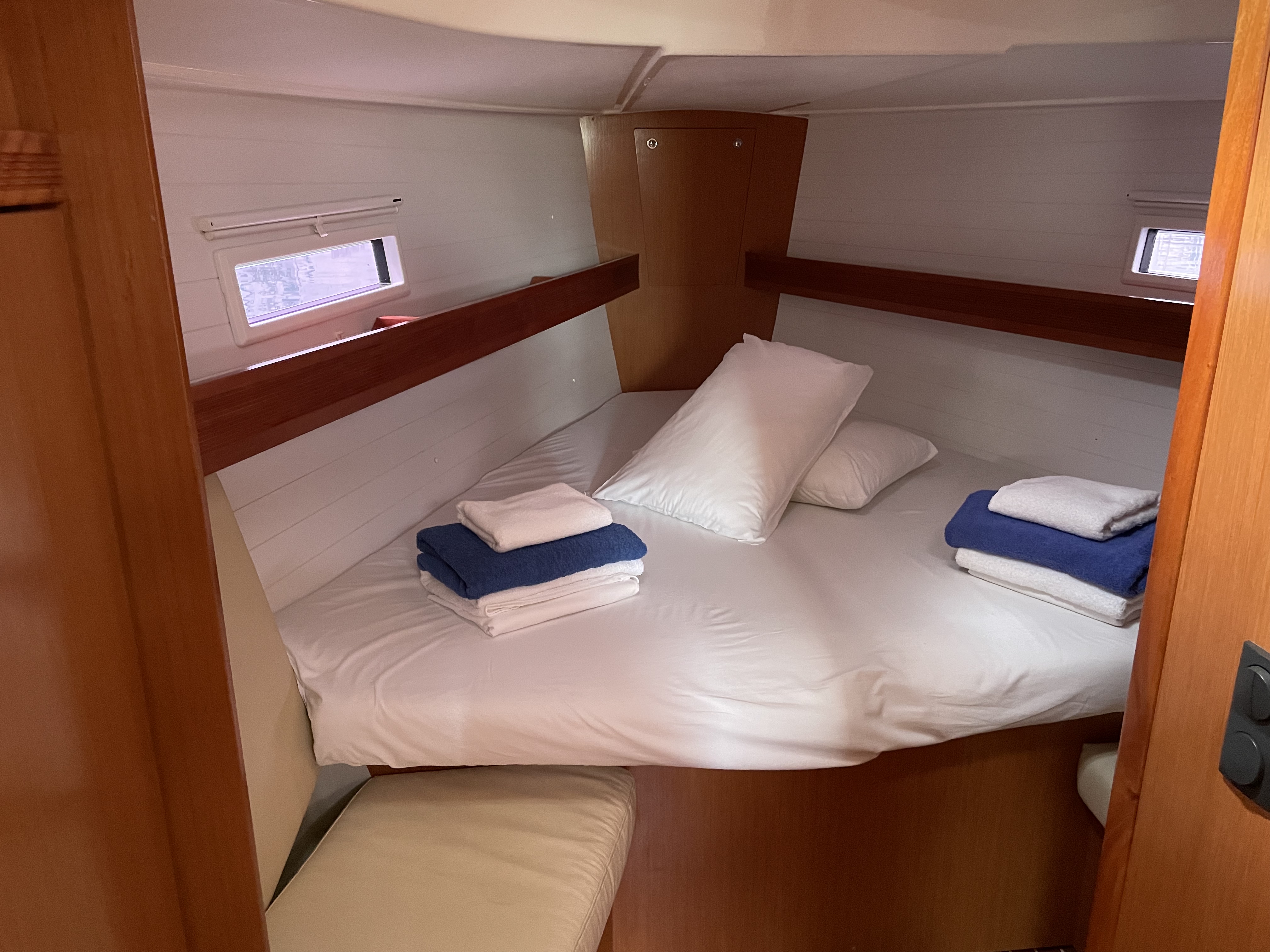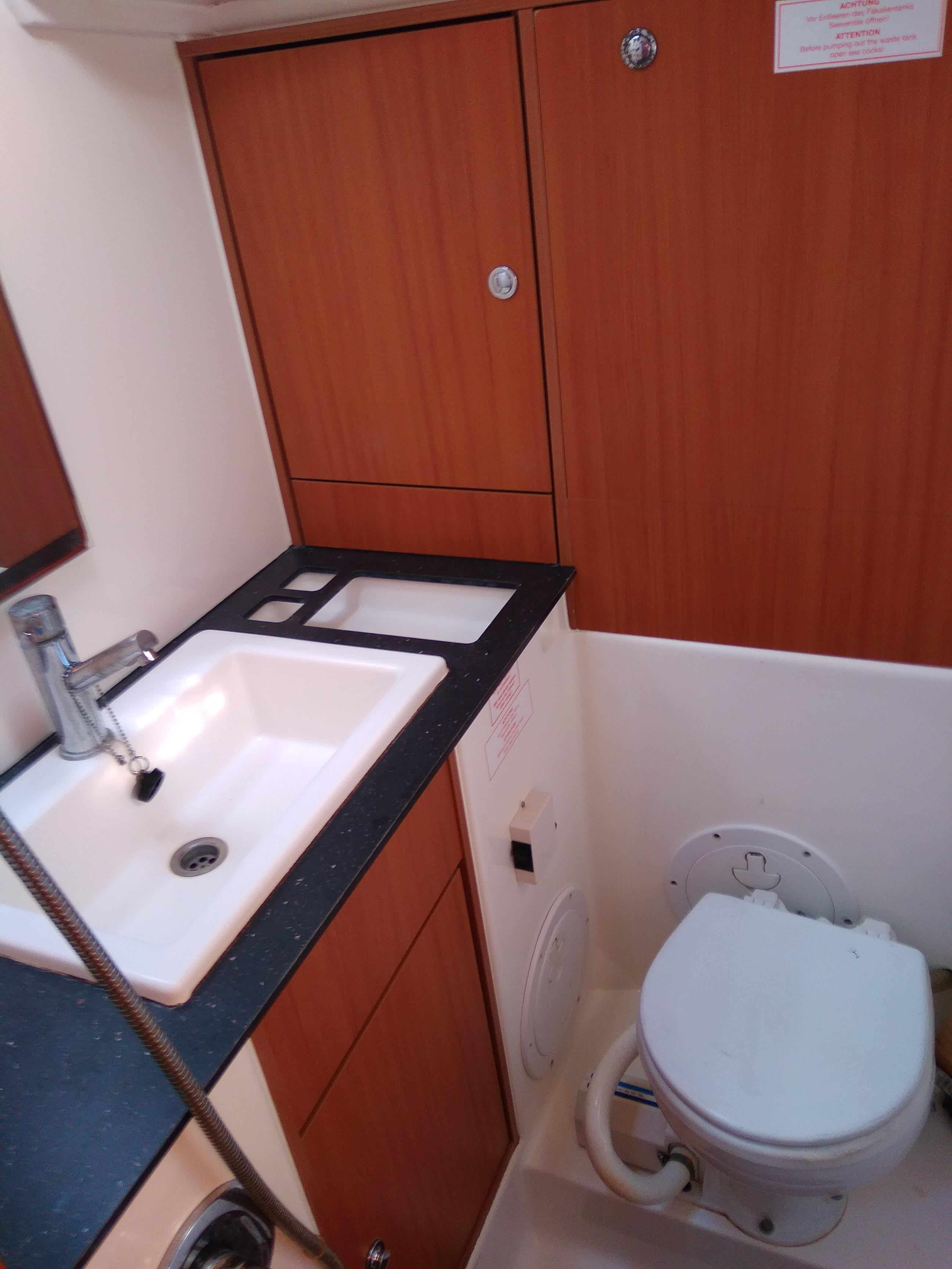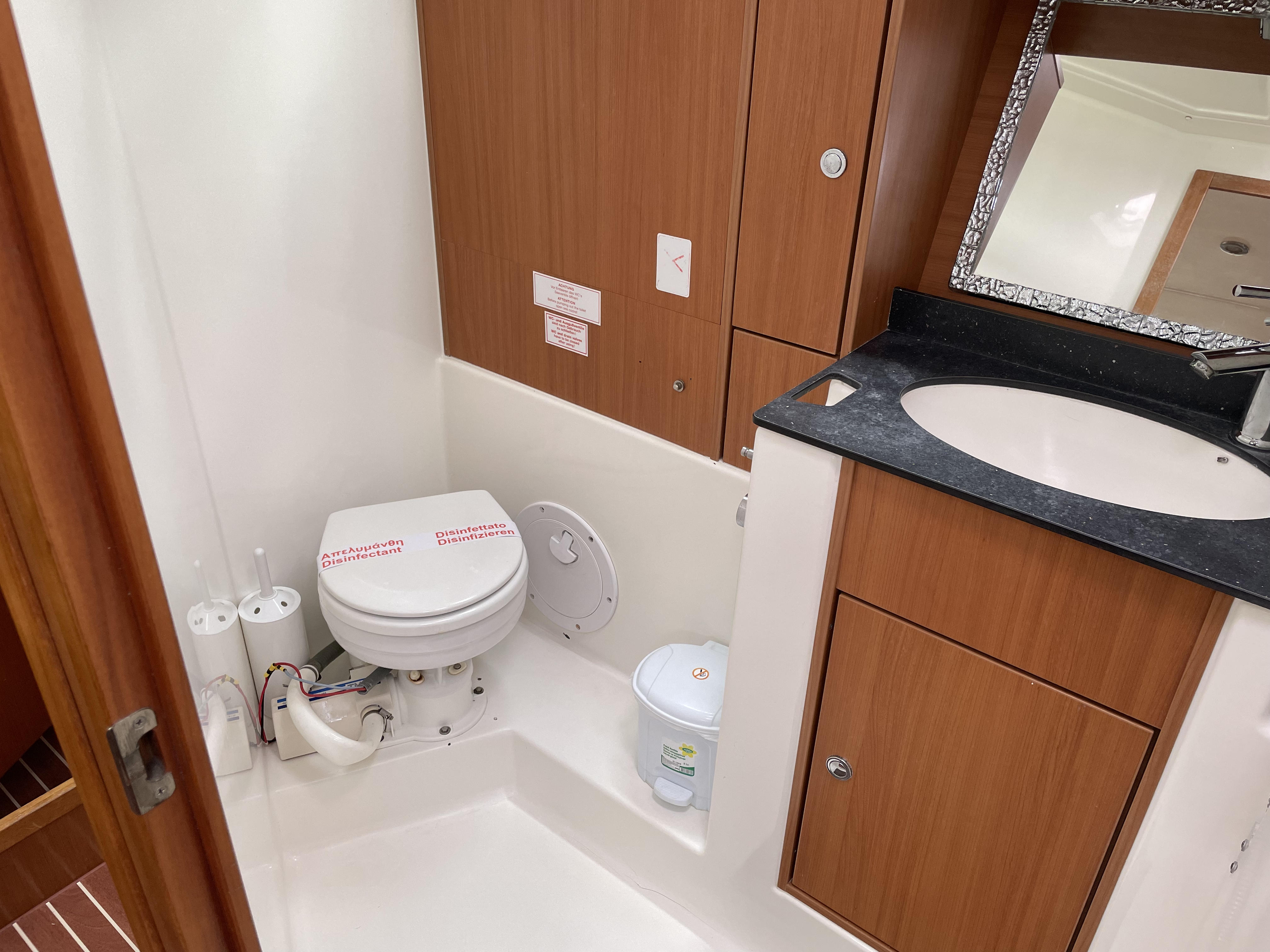 Inside Fäkalientank, Gasherd, Gefrierschrank, Inverter 12V/220V, Kühlschrank, Moskitonetze, Pantryausstattung, Radio mit CD und AUX-Eingang, Ventilator, Ventilatoren in Kabinen, Warmwasser, WC (elektr.)