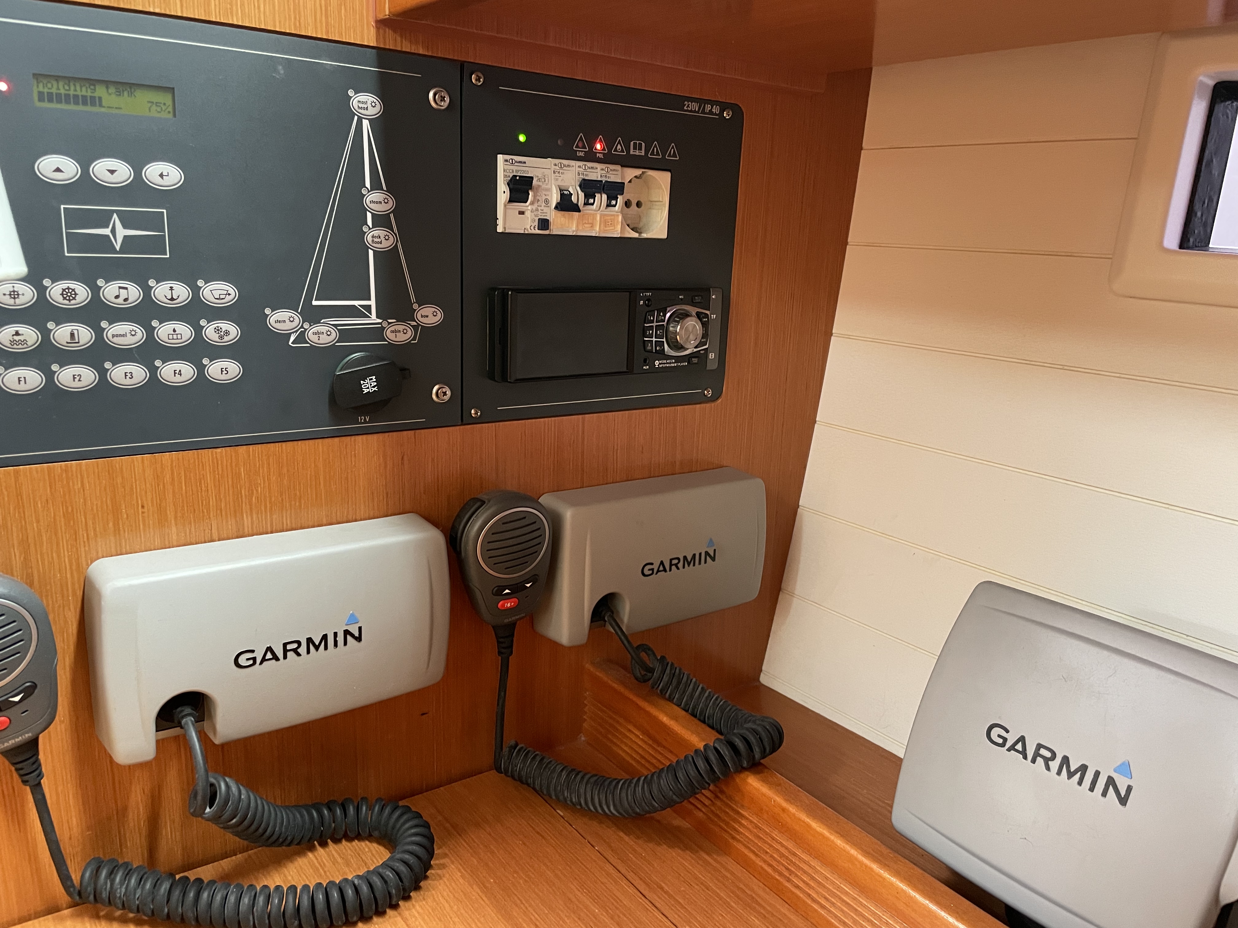 Navigation Echolot, GPS mit Kartenplotter im Cockpit, Sumlog, Windmesser