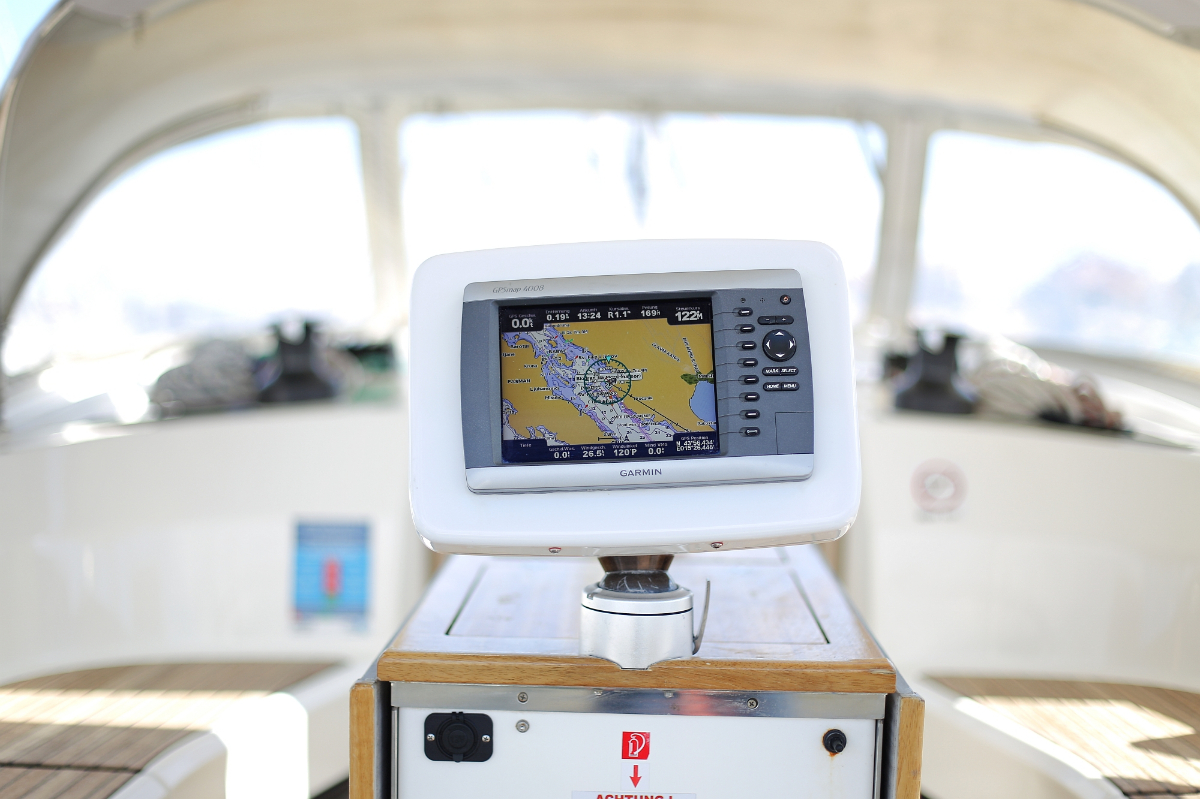 | Navigation | Barometer, Fernglas mit Peilkompass, GPS mit Kartenplotter im Cockpit, Hafenhandbücher, Handpeilkompass, Navigationsbesteck, Seekarten, Tridata (Log, Echolot, Windm.) |