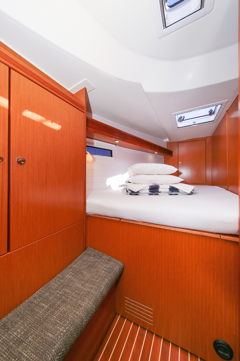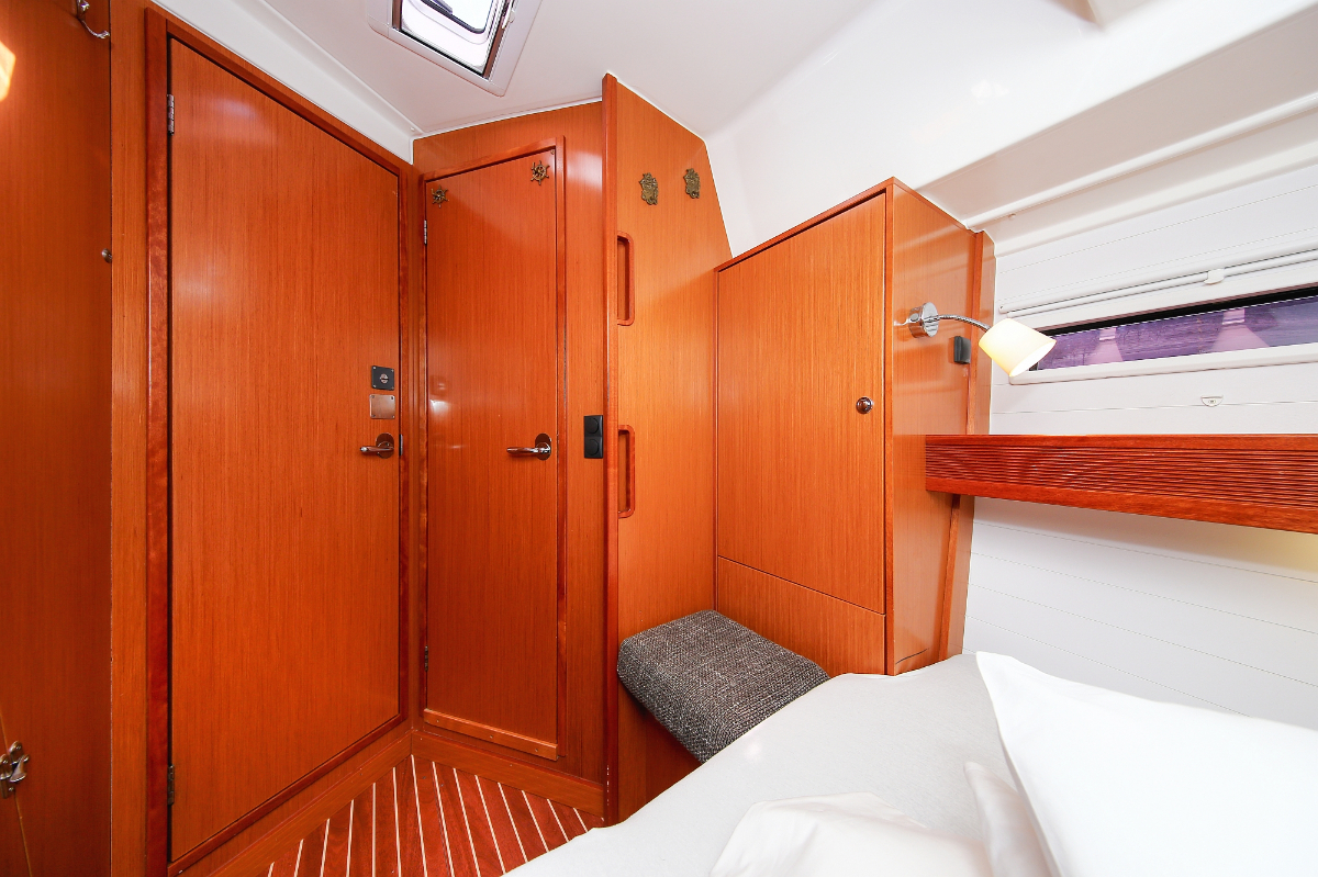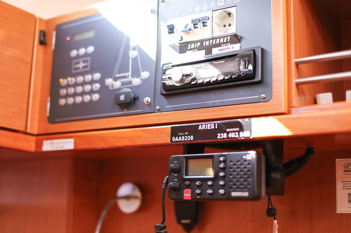 | Safety | Autopilot, Blitzboje, Bootsmannstuhl, Bordapotheke, Bordwerkzeug, Bugstrahlruder, Feststoffschwimmwesten, Feuerlöscher, Lifebelts, Nebelhorn, Notpinne, Notsignale, Radarreflektor, Reparaturset für Beiboot, Rettungsinsel, Suchscheinwerfer, Taschenlampe, UKW-Funk, Zweitanker |