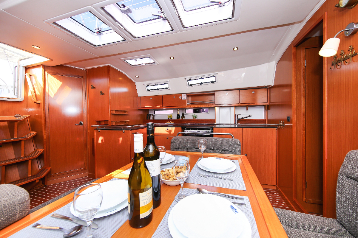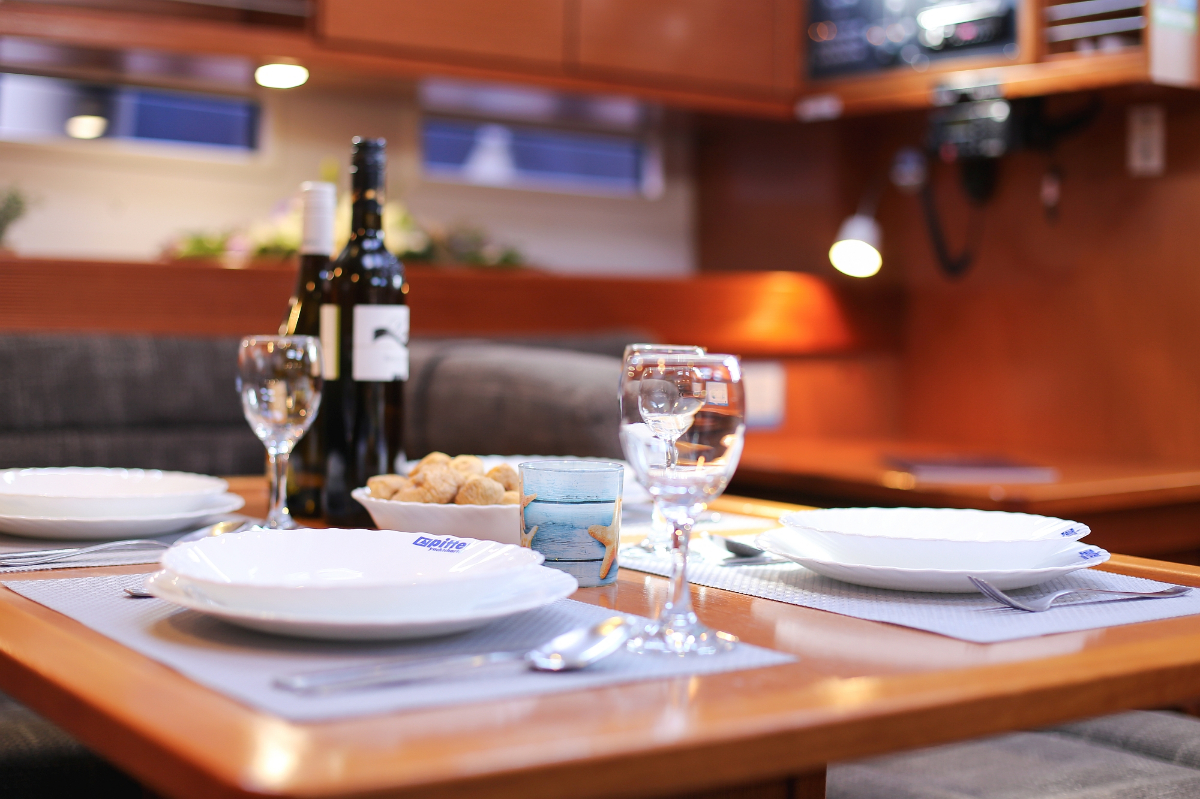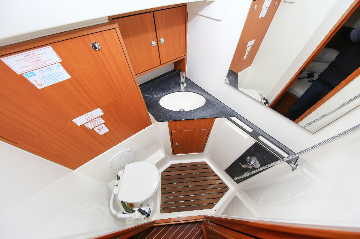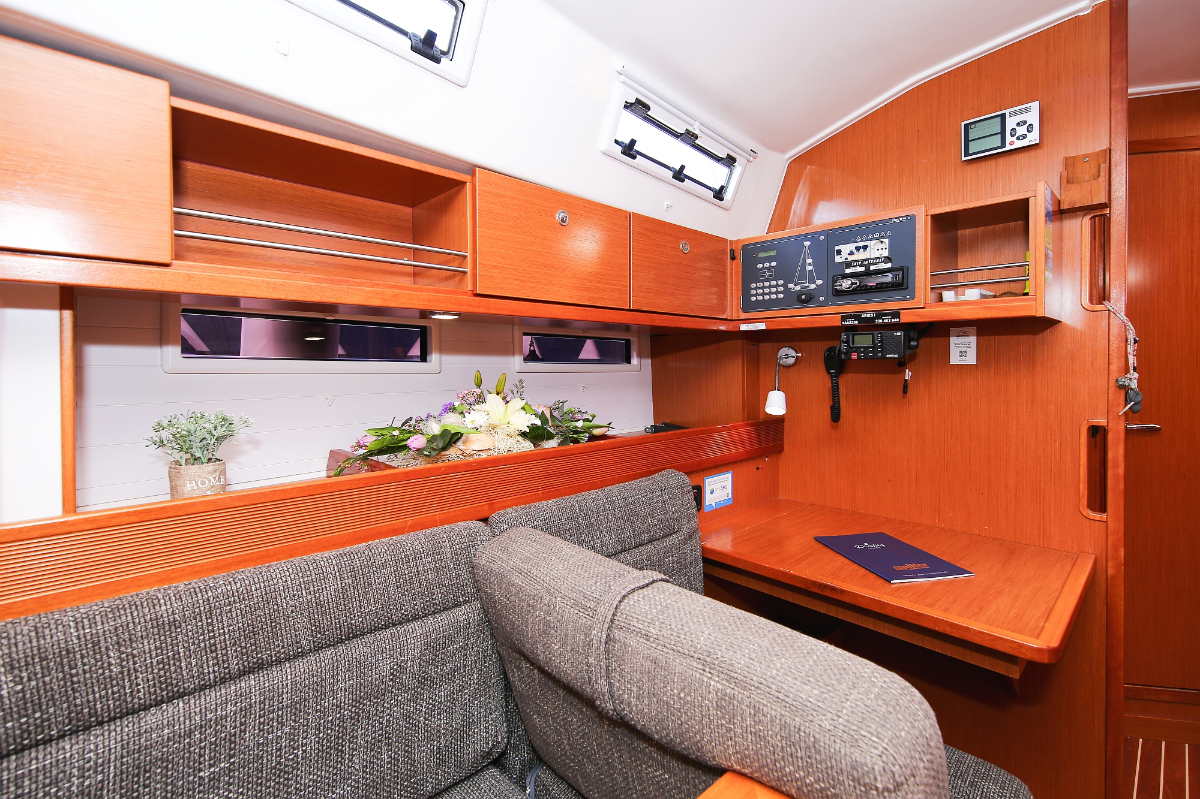 | Safety | Autopilot, Blitzboje, Bootsmannstuhl, Bordapotheke, Bordwerkzeug, Bugstrahlruder, Feststoffschwimmwesten, Feuerlöscher, Lifebelts, Nebelhorn, Notpinne, Notsignale, Radarreflektor, Reparaturset für Beiboot, Rettungsinsel, Suchscheinwerfer, Taschenlampe, UKW-Funk, Zweitanker |