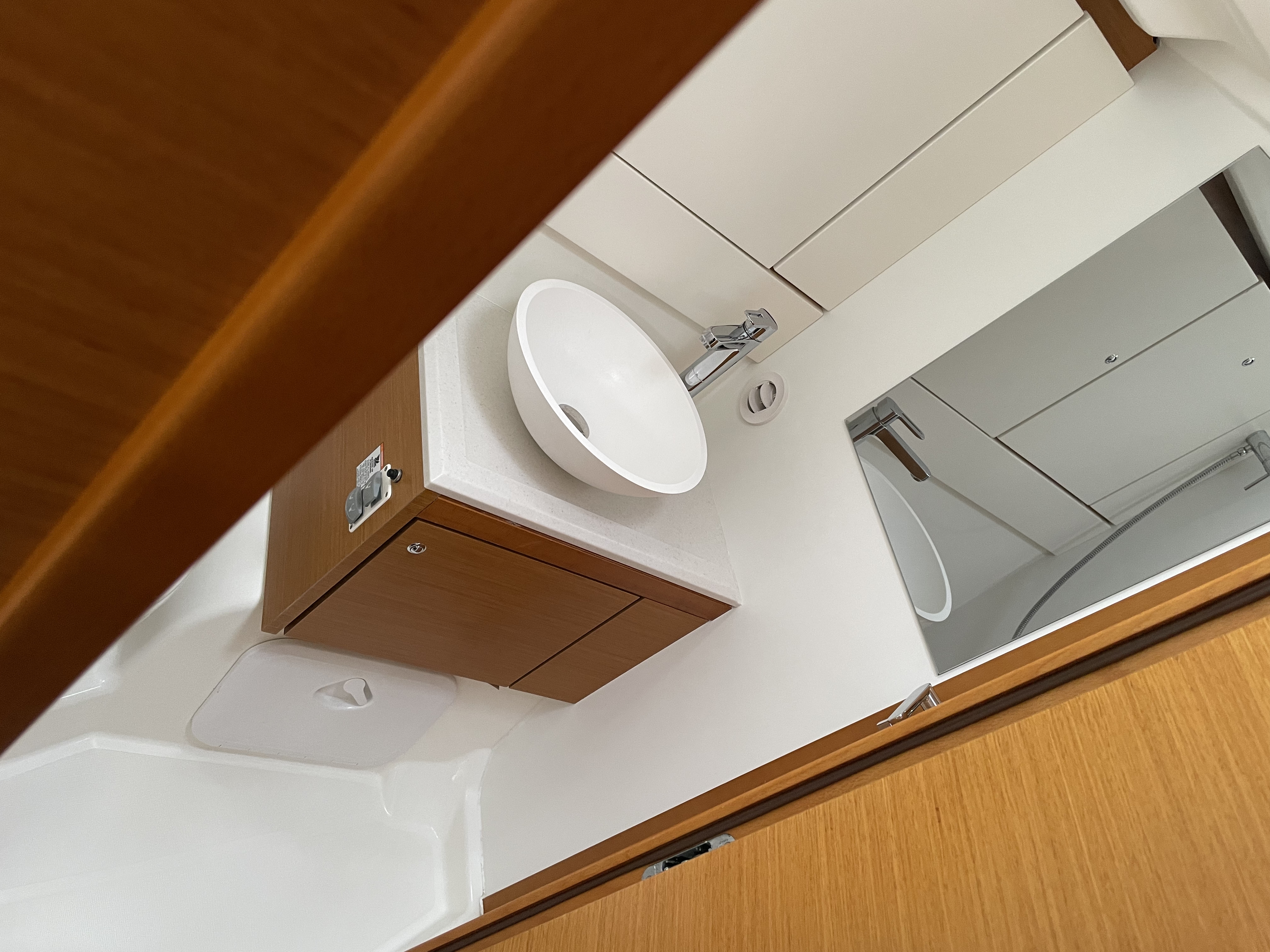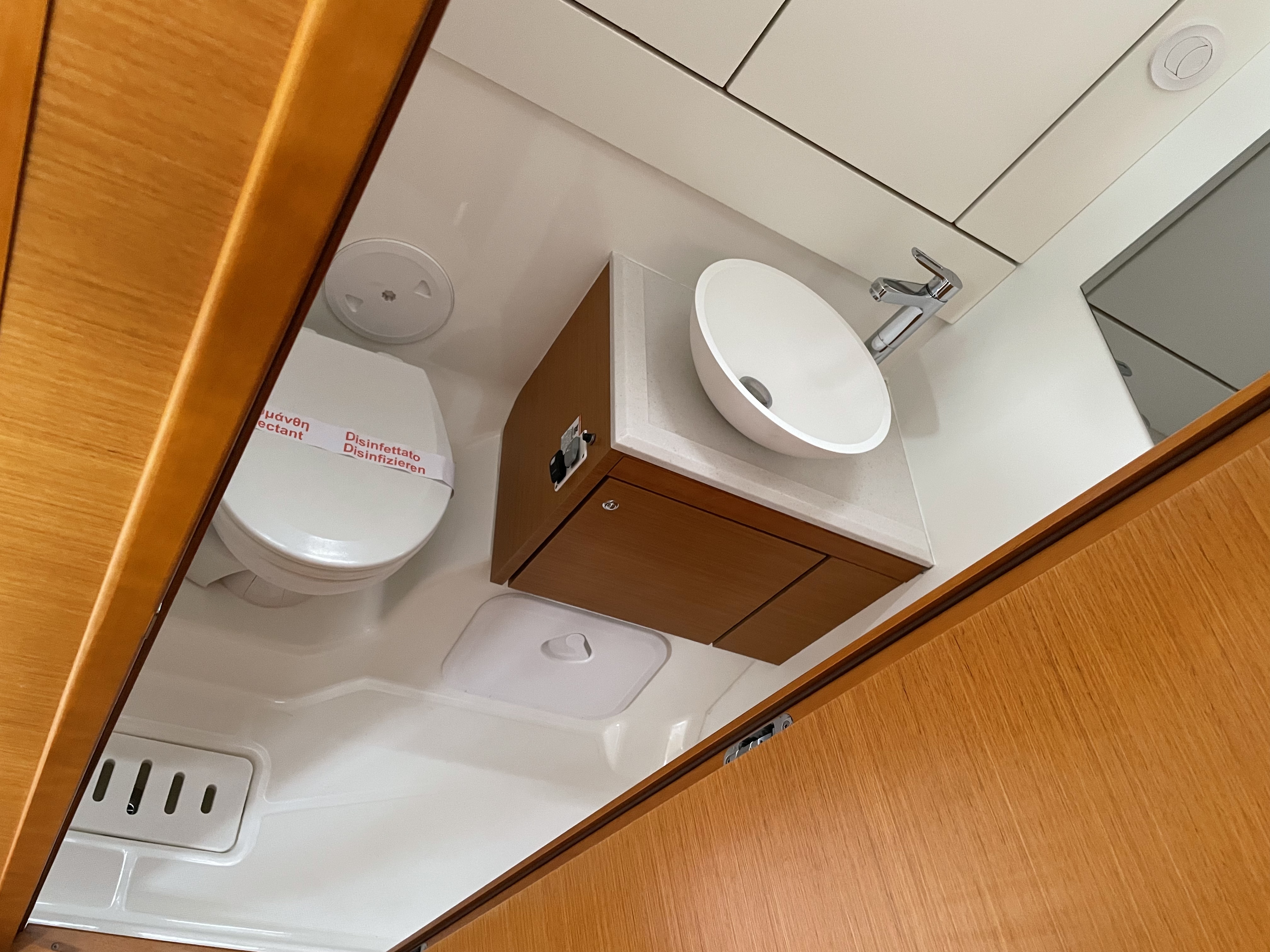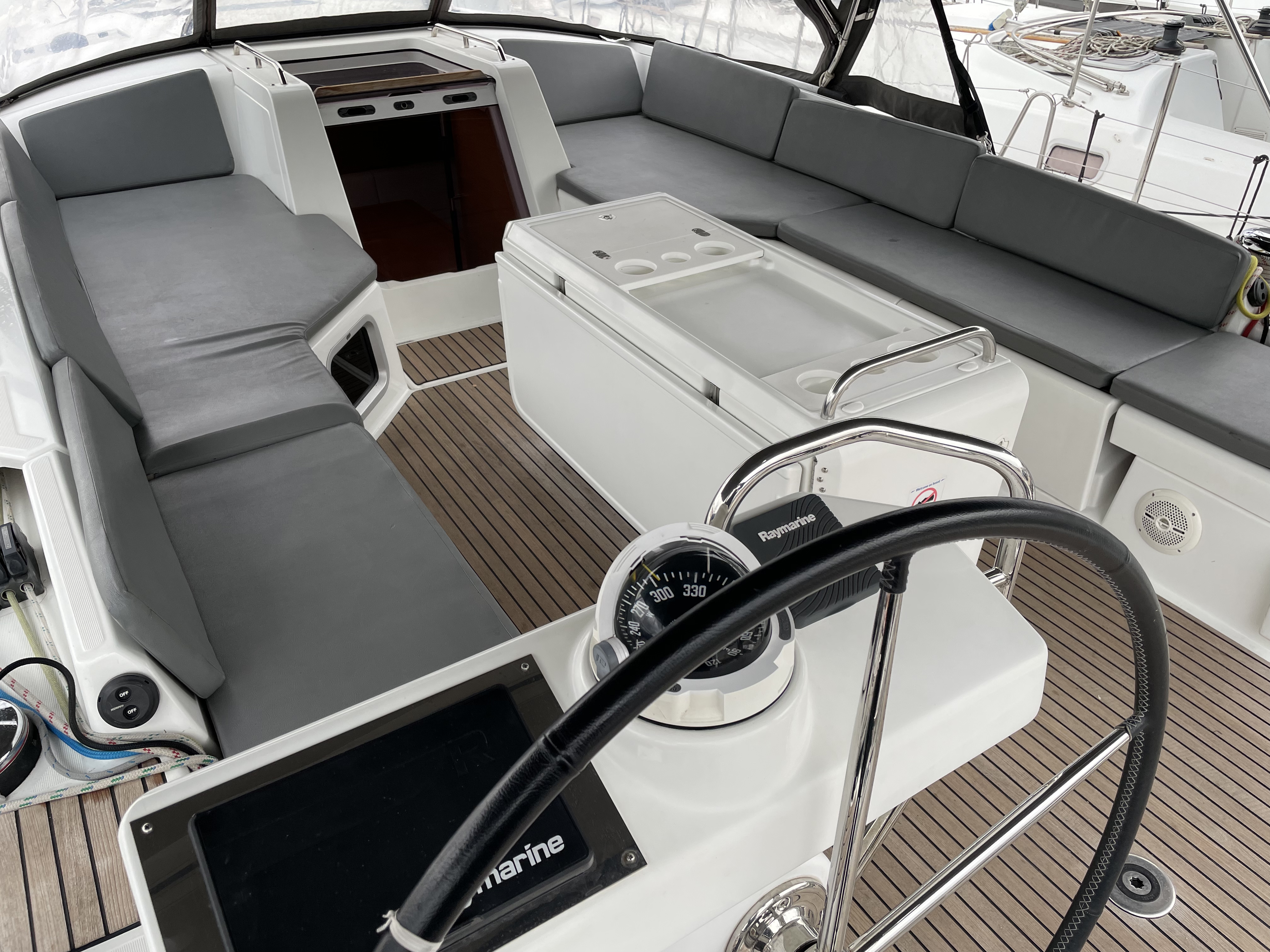 | Outside | Außendusche, Badeleiter, Biminitop, Cockpitlautsprecher, Cockpitpolster, Cockpittisch, elektr. Ankerwinsch, elektr. Winsch, Gangway, Sprayhood |