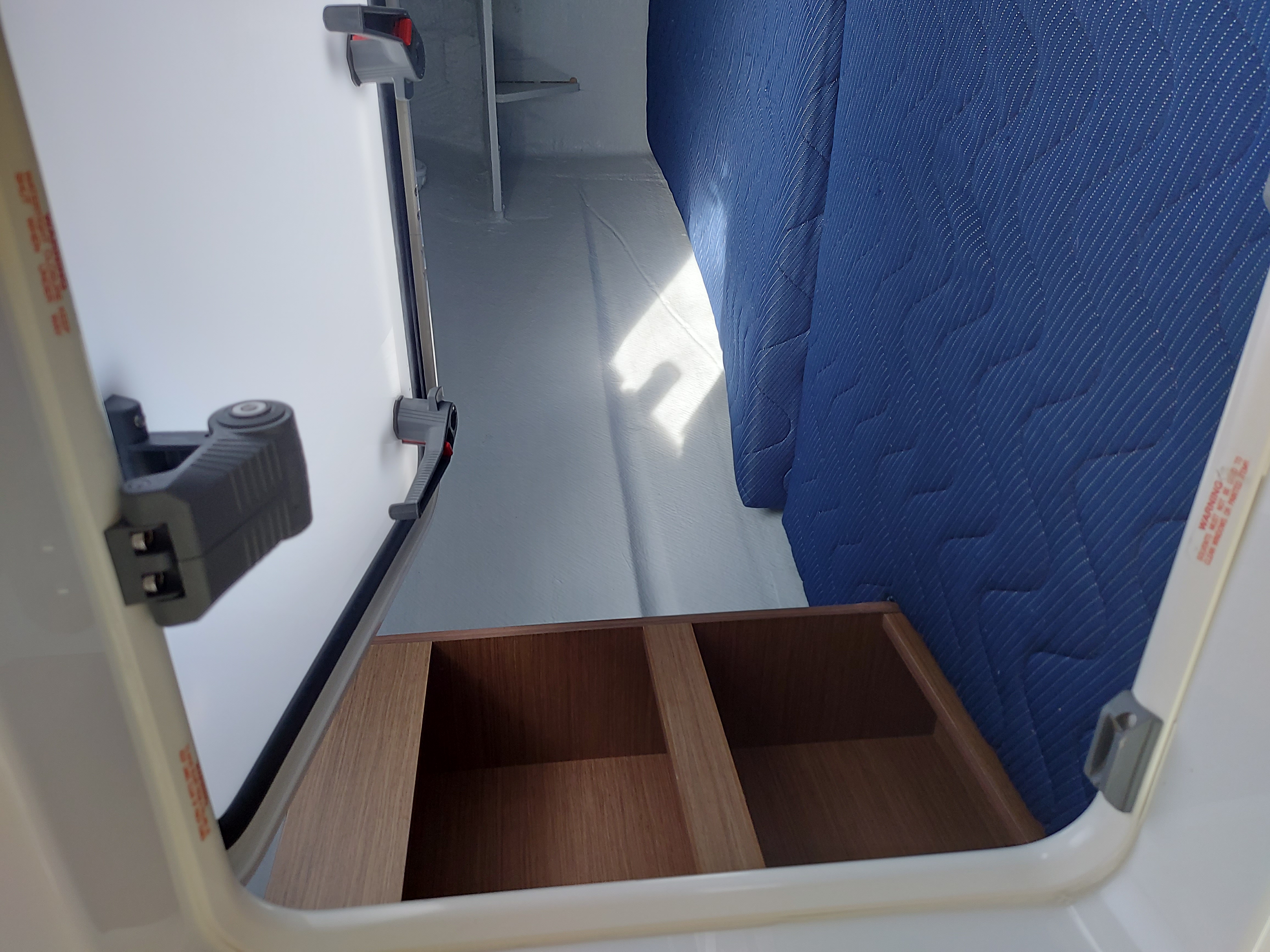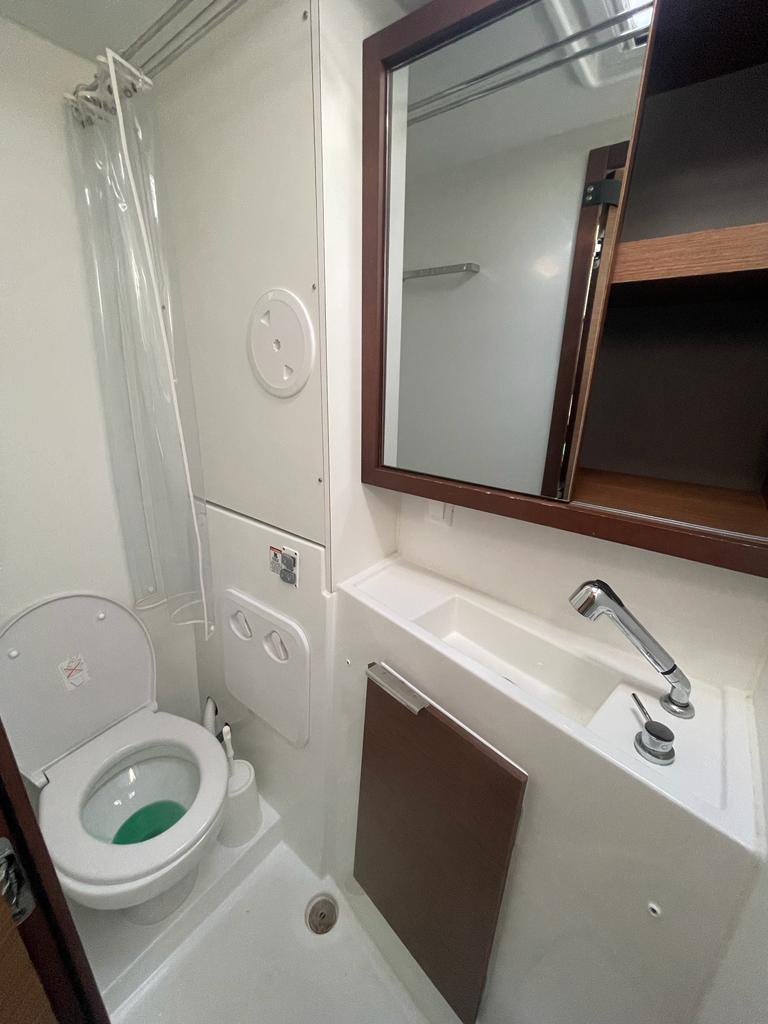 | Inside | 12V Steckdose, Fäkalientank, Gefrierschrank, Generator, Inverter 12V/220V, Kaffeemaschine, Klimaanlage (ohne Landstrombedarf), Kühlschrank, Lautsprecher im Salon, Radio mit USB und Bluetooth, Salontisch absenkbar, USB Steckdosen in Salon und Kabinen, Ventilatoren in Kabinen, Warmwasser, Watermaker, WC (elektr.) |