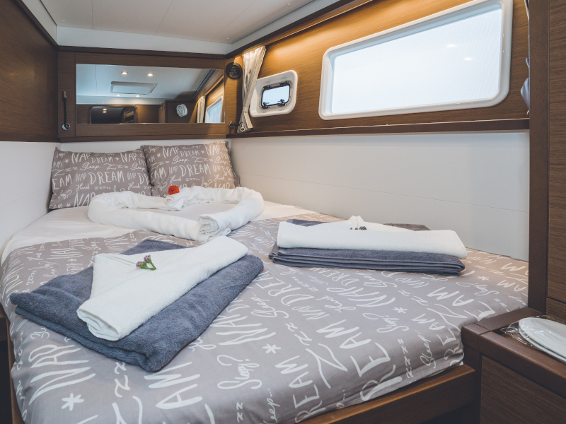 | Inside | Generator, Inverter 12V/220V, Klimaanlage (ohne Landstrombedarf), Kühlschrank mit Gefrierfach, Ladegerät, Pantryausstattung, Radio mit CD, TV, USB Steckdosen in den Kabinen, Ventilatoren in Salon und Kabinen, WC (elektr.) |