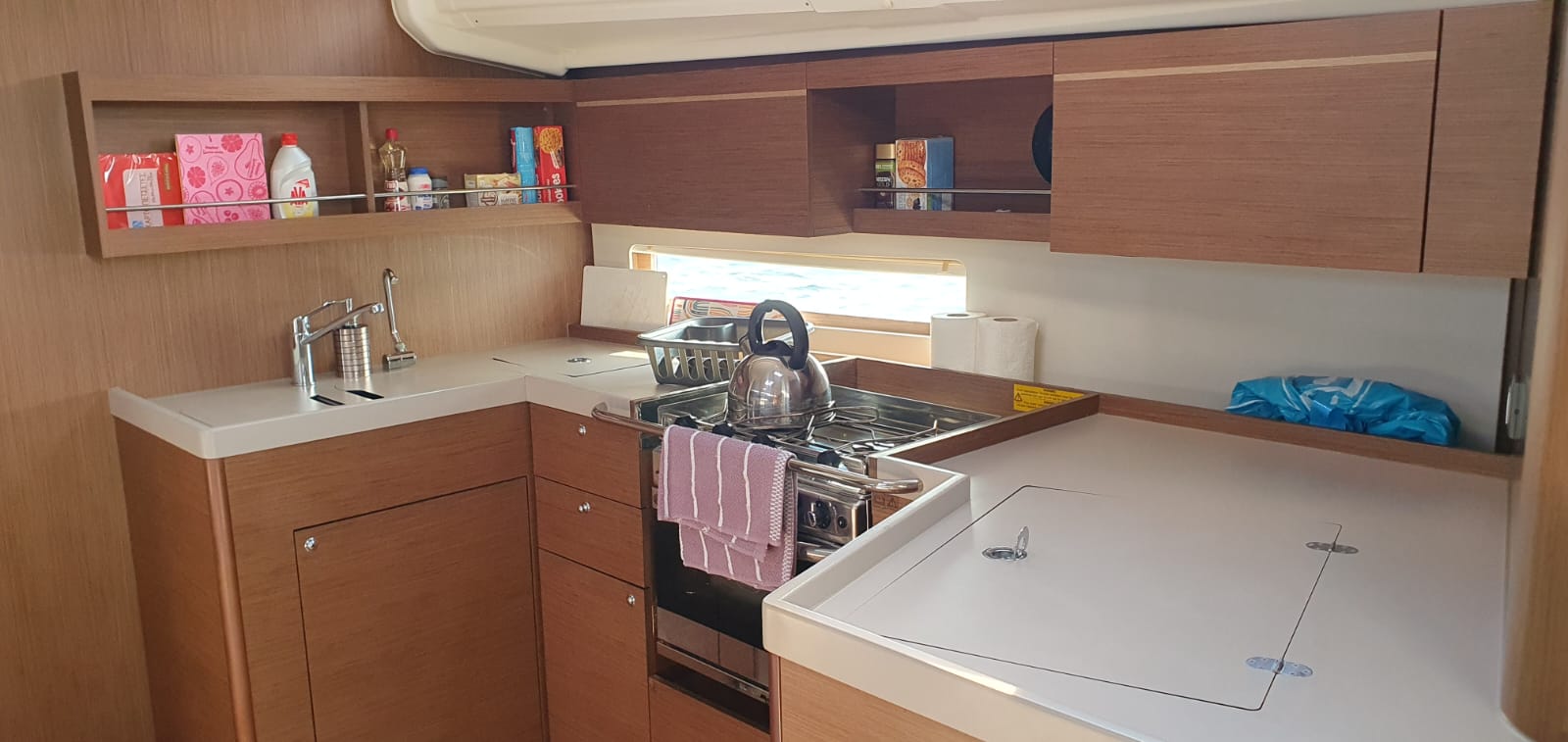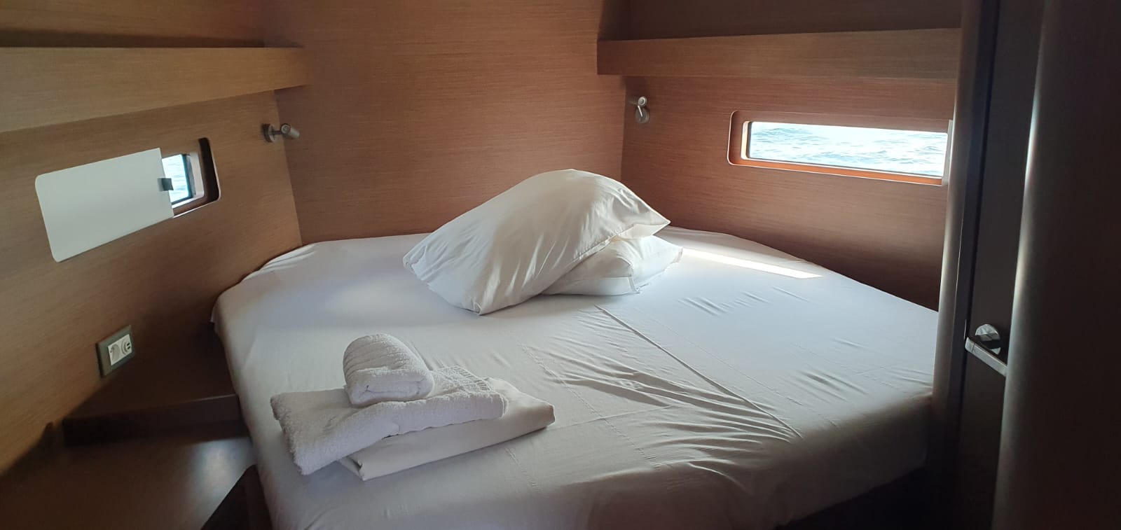 | Inside | Fäkalientank, Gasherd, Gefrierschrank, Inverter 12V/220V, Kühlschrank, Moskitonetze, Pantryausstattung, Radio mit USB, Bluetooth und AUX-In, Ventilatoren in Kabinen, Warmwasser, WC (elektr.) |
