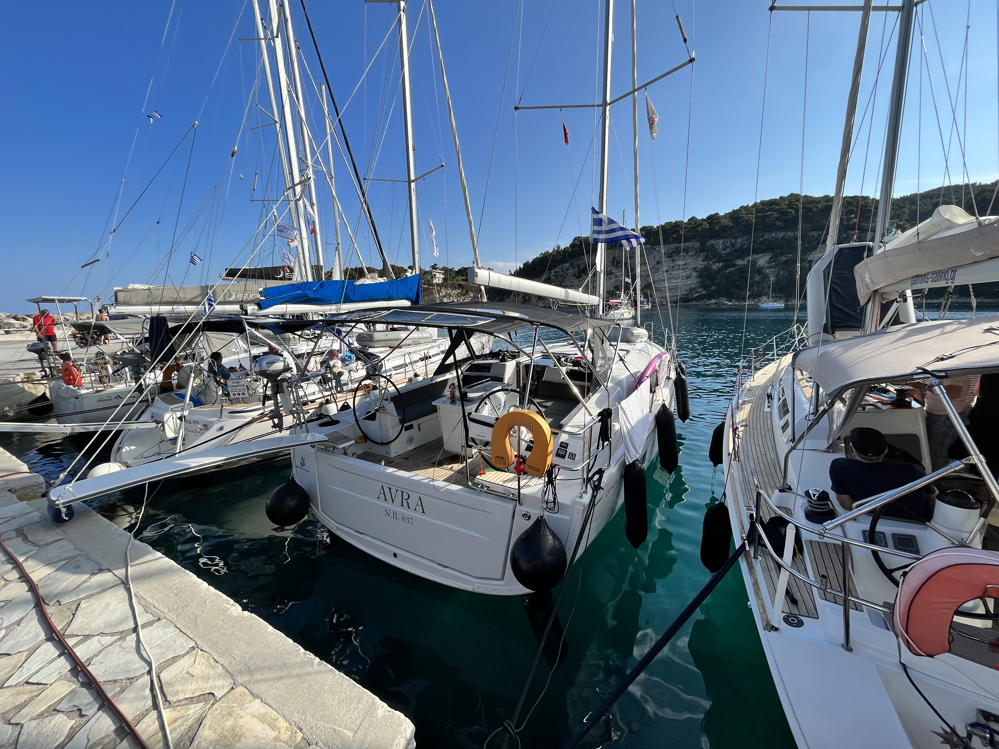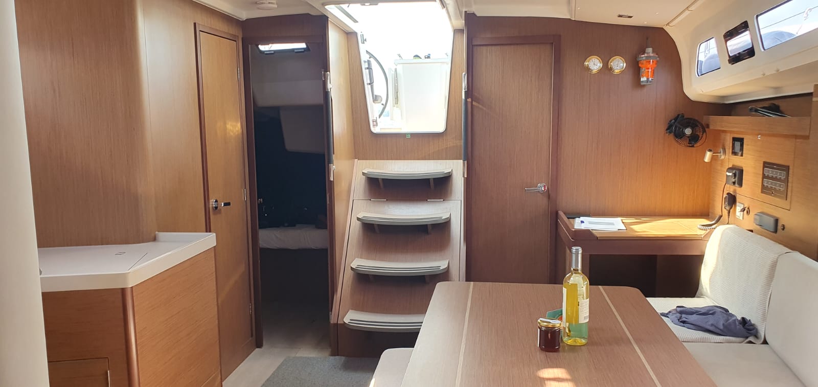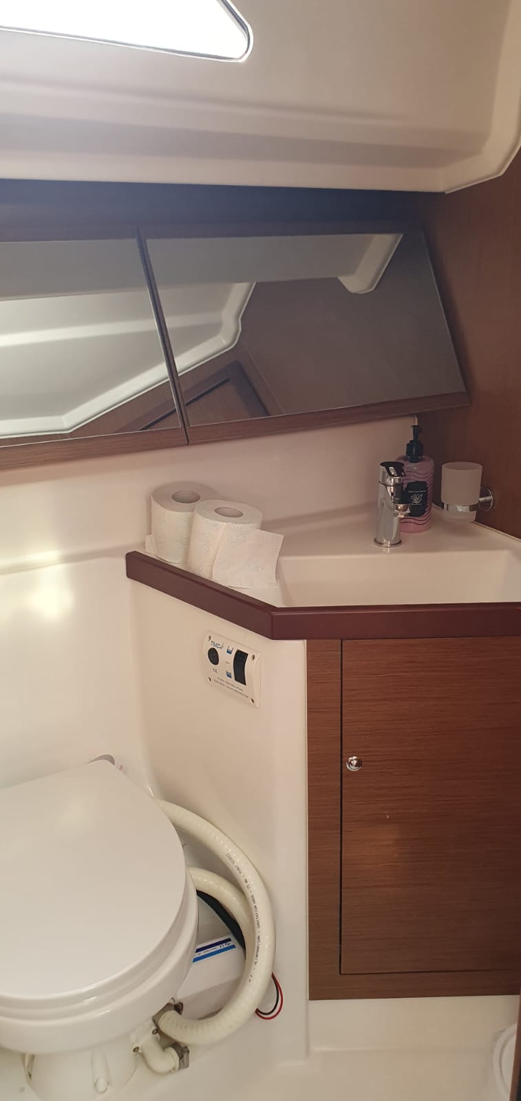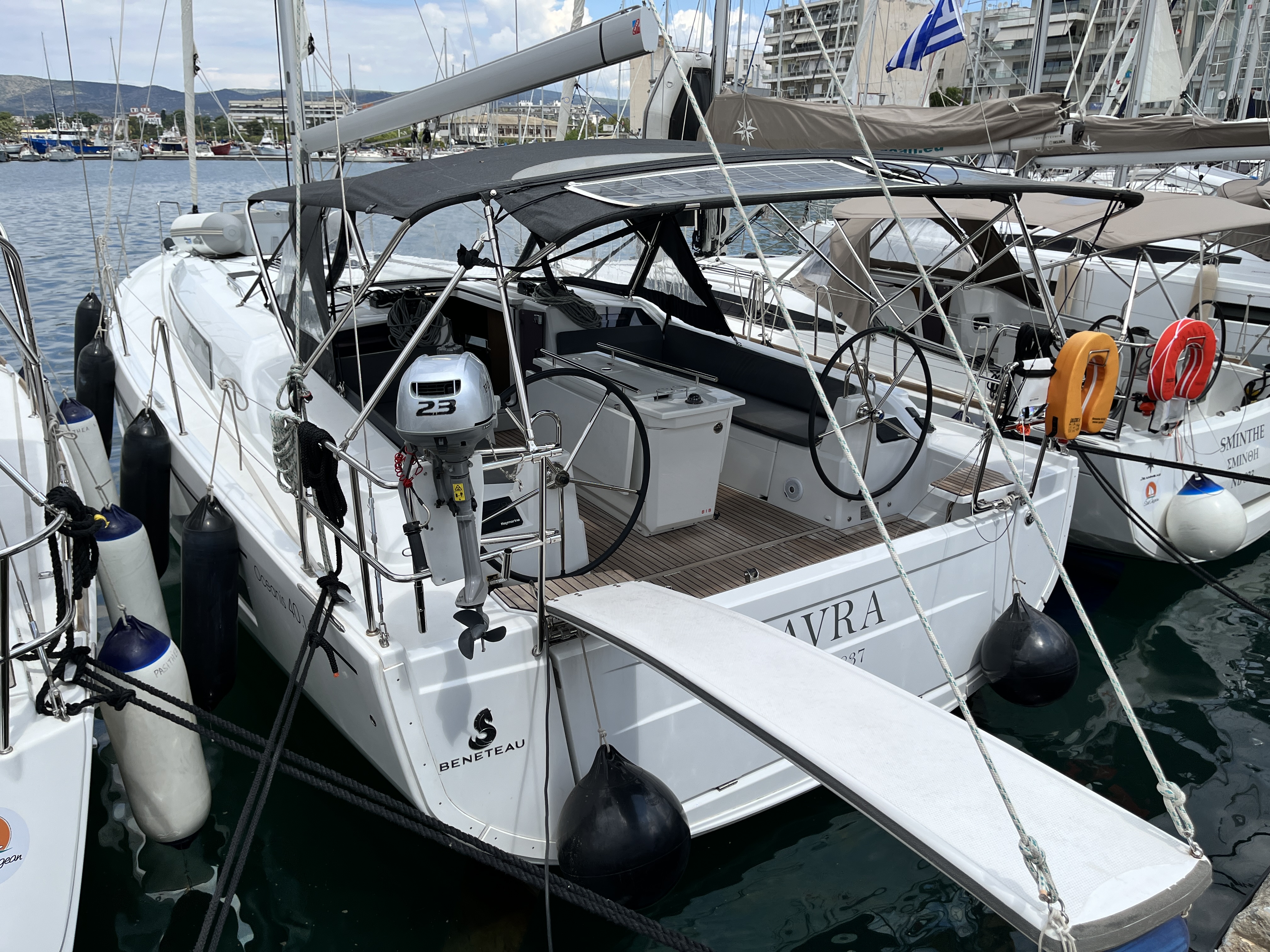 | Outside | Außendusche, Badeleiter, Biminitop, Cockpitlautsprecher, Cockpitpolster, Cockpittisch, elektr. Ankerwinsch, Gangway, Solaranlage, Sprayhood, Teak im Cockpit |