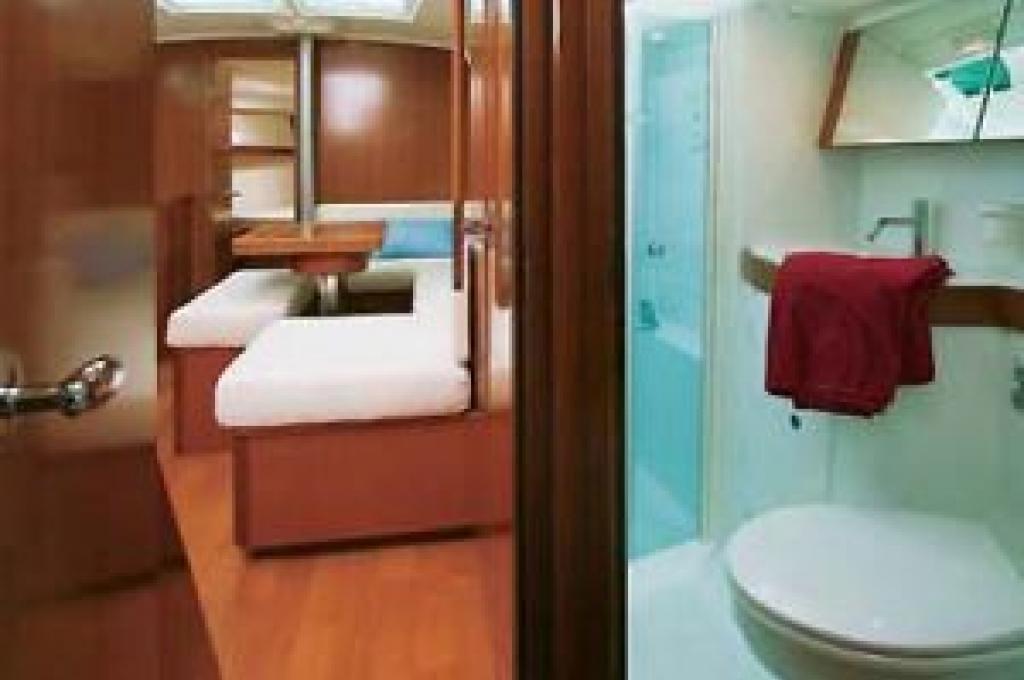 | Outside | Außendusche, Badeleiter, Biminitop, Cockpitlautsprecher, Cockpitpolster, Cockpittisch, elektr. Ankerwinsch, elektr. Winsch, Gangway, Solaranlage, Sprayhood, Teak im Cockpit |