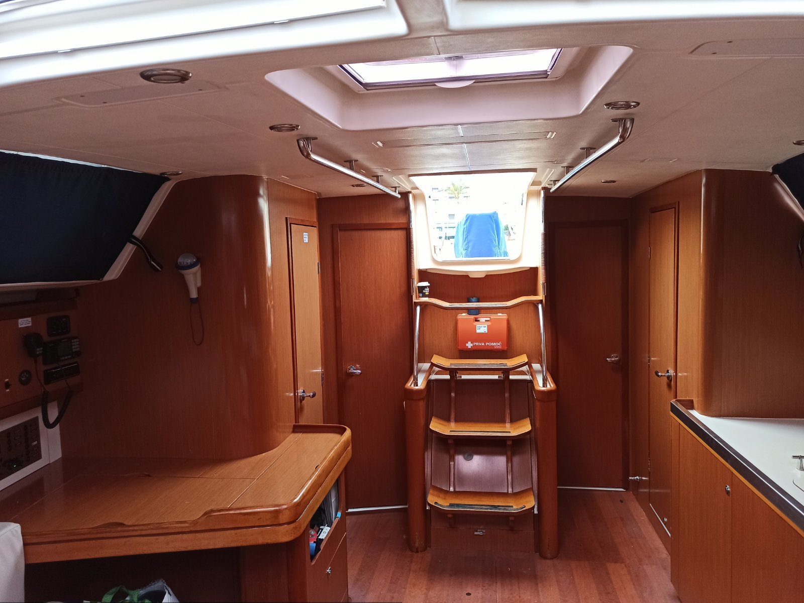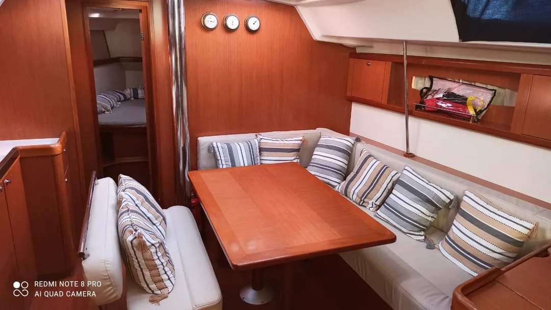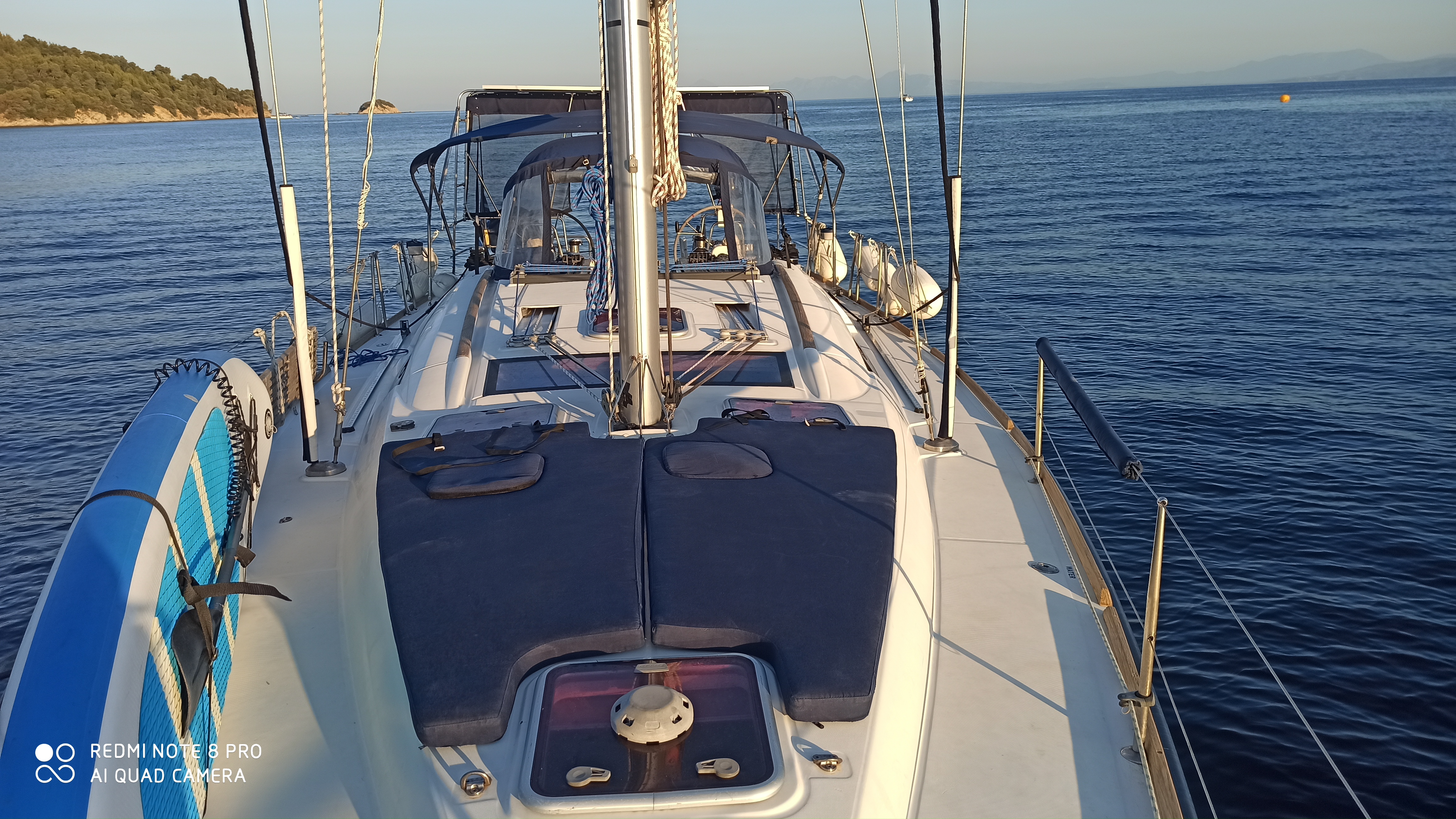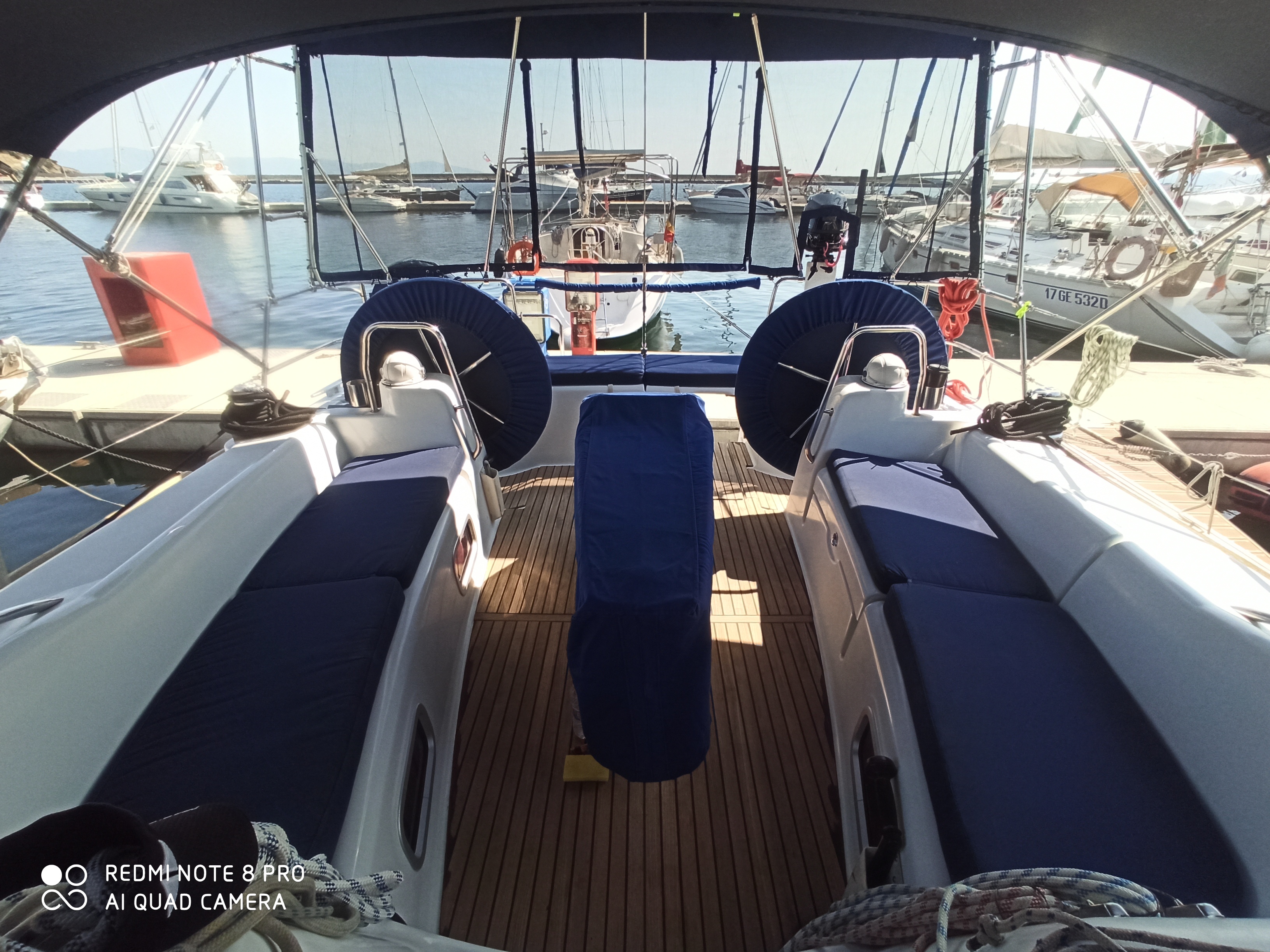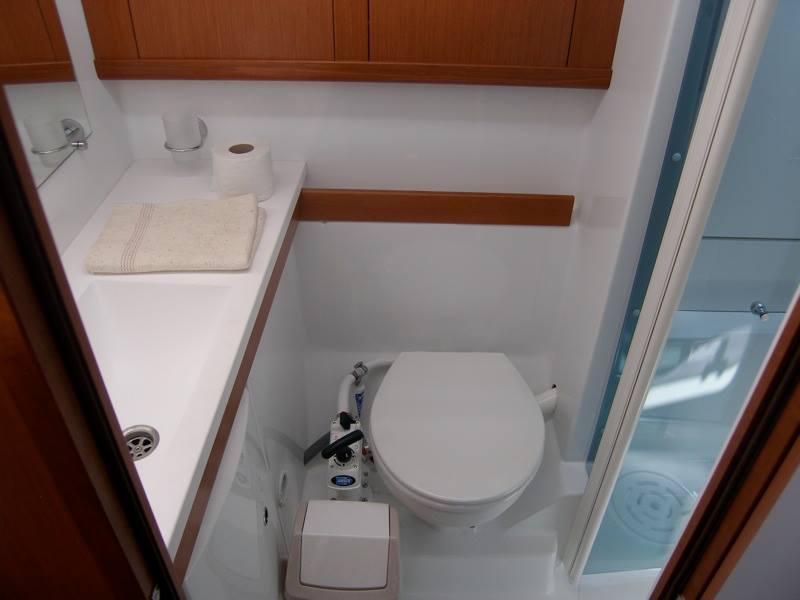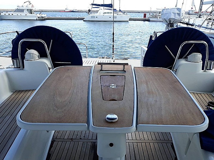 | Outside | 12 V-Anschluss, Badeleiter, Biminitop, Cockpitlautsprecher, Cockpitpolster, Cockpittisch mit Eisbox, elektr. Ankerwinsch, Schnorchelausrüstung, Solaranlage, Sonnendeck, Sprayhood, Teakdeck |