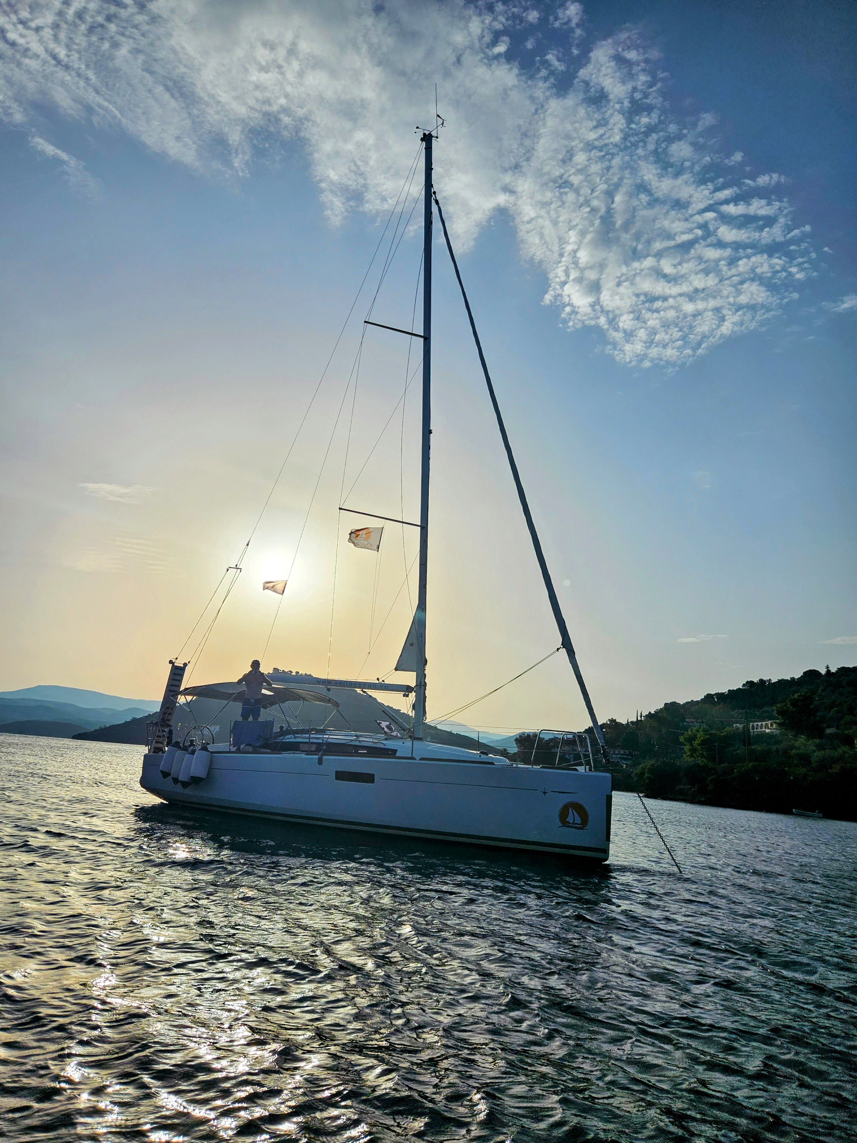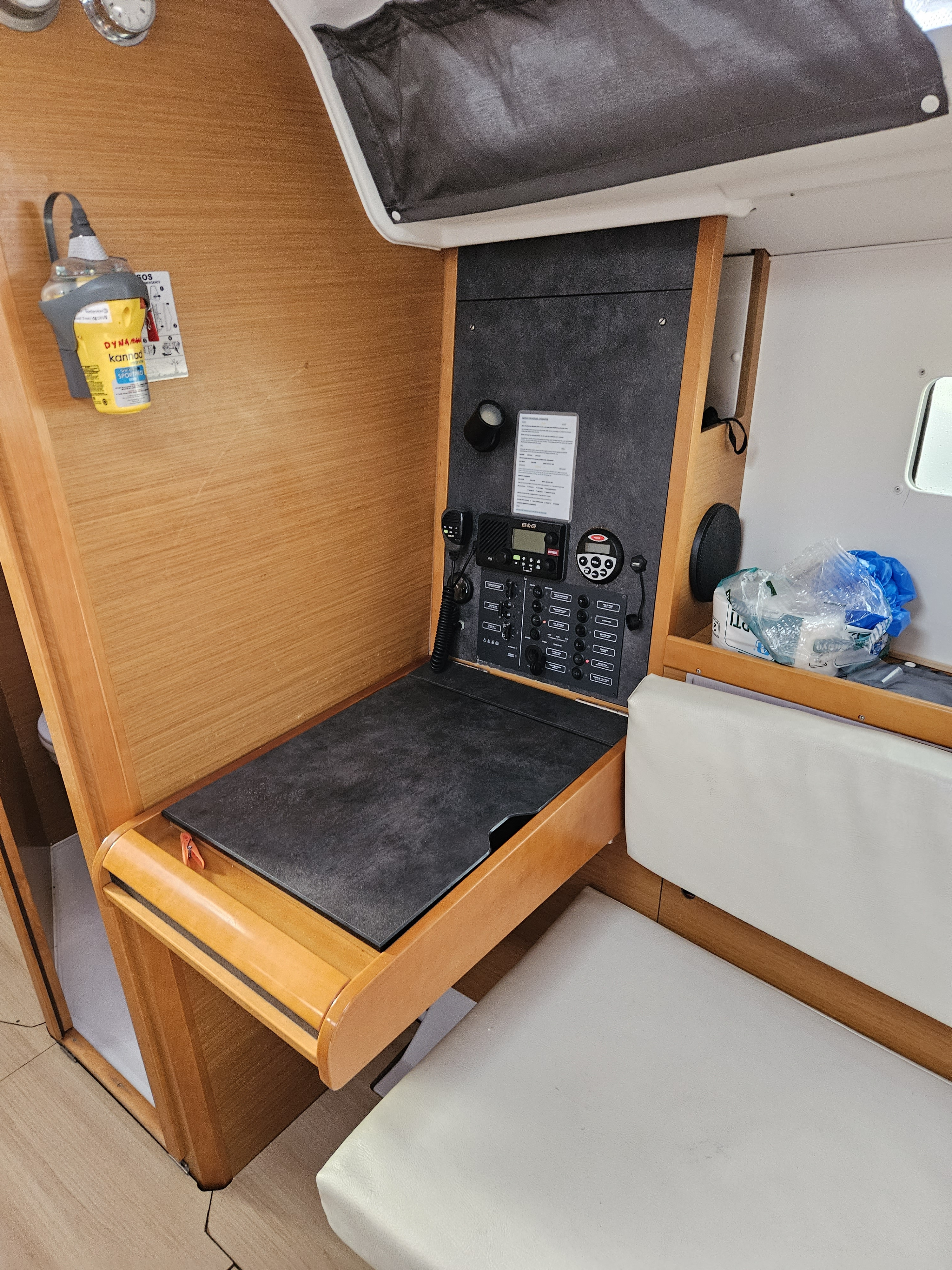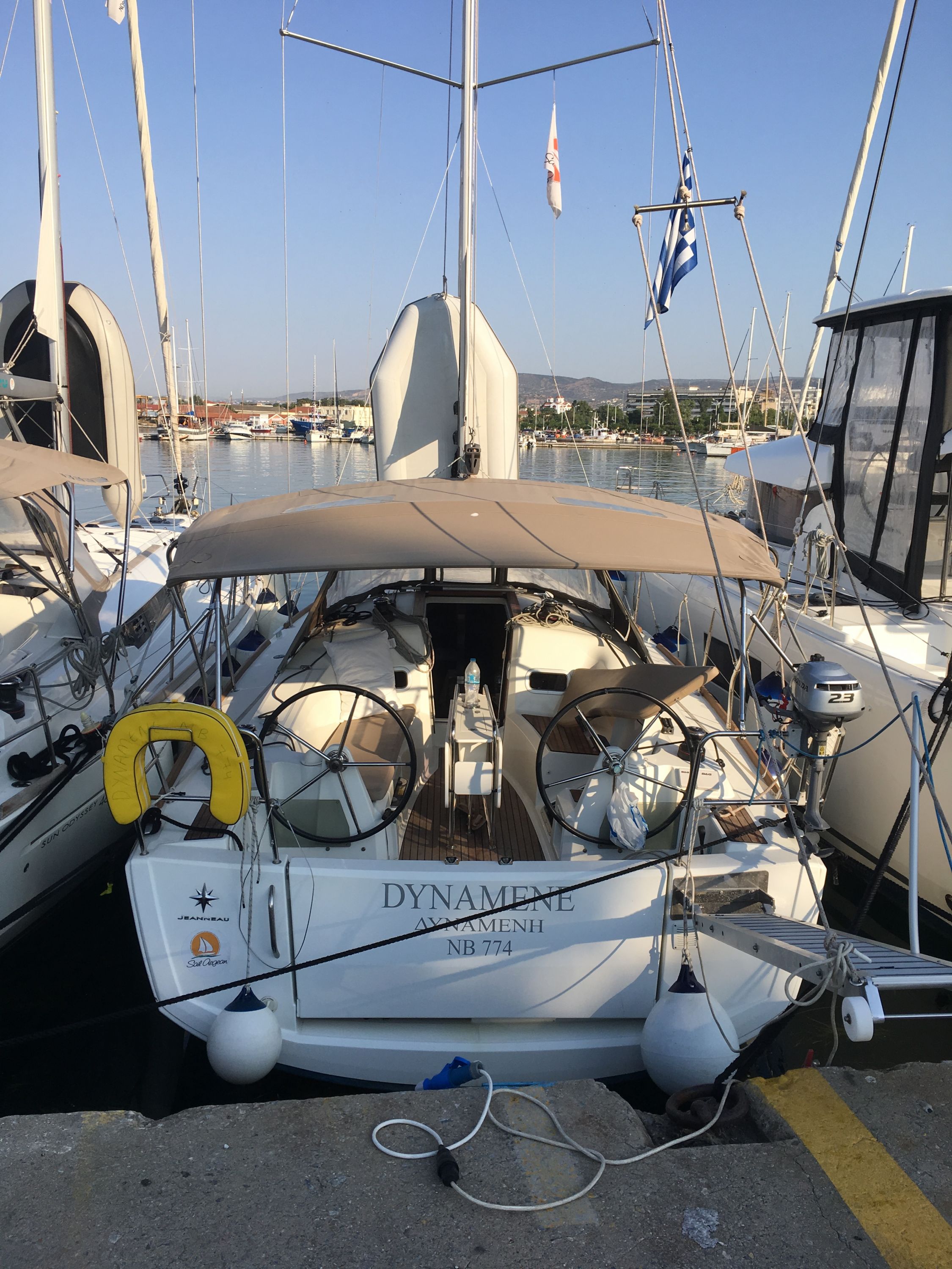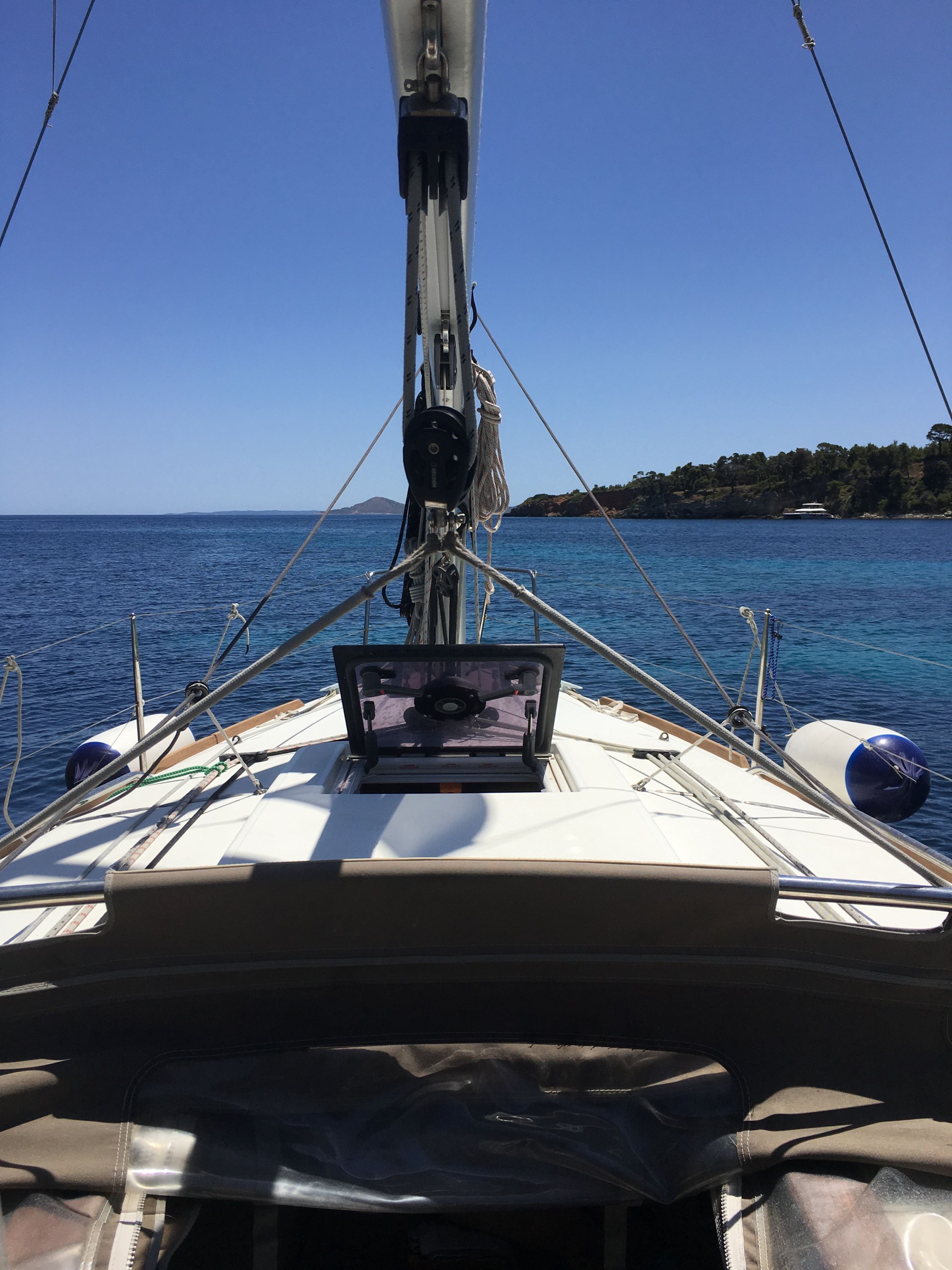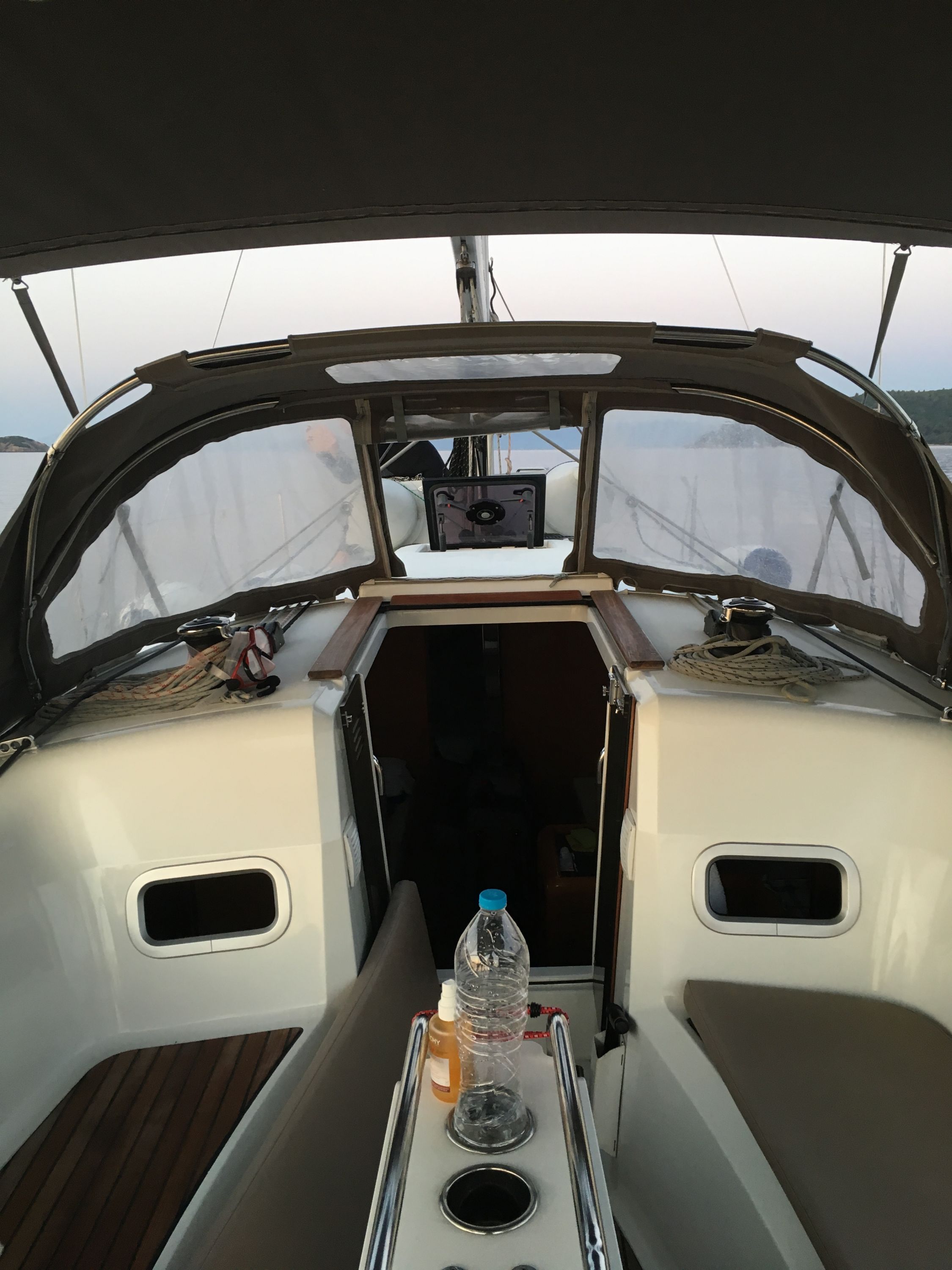 Outside Außendusche, Badeleiter, Biminitop, Cockpitlautsprecher, Cockpitpolster, Cockpittisch, elektr. Ankerwinsch, Gangway, Solaranlage, Sprayhood, Teak im Cockpit