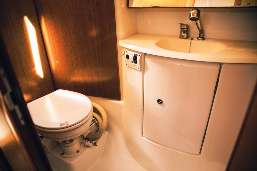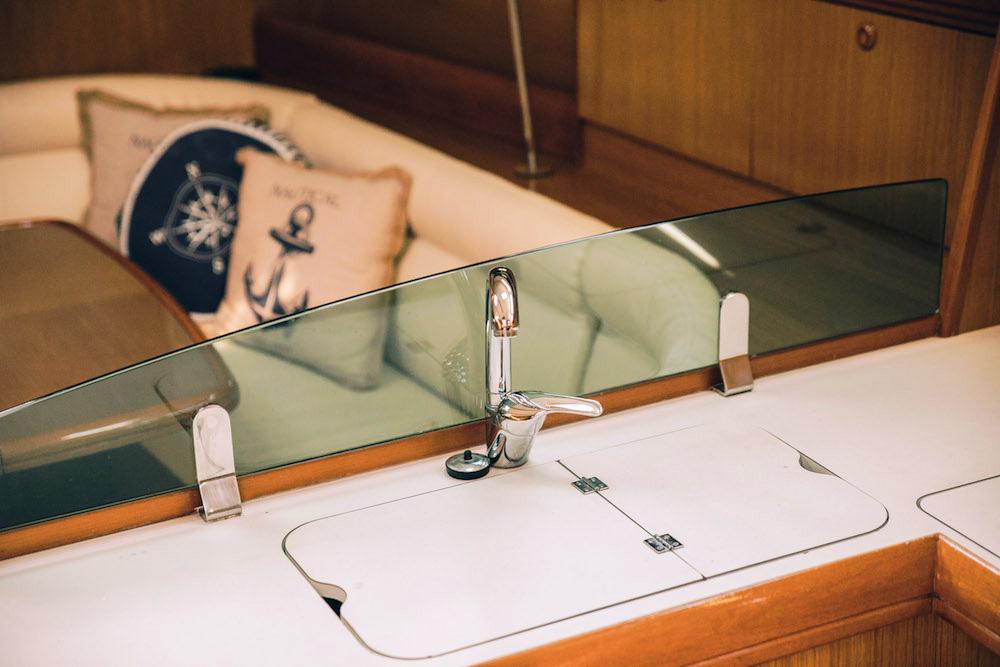 | Outside | Biminitop, Cockpitdusche, Cockpitlautsprecher, Cockpitpolster, Cockpittisch, elektr. Ankerwinsch, Gangway, Solaranlage, Sprayhood |