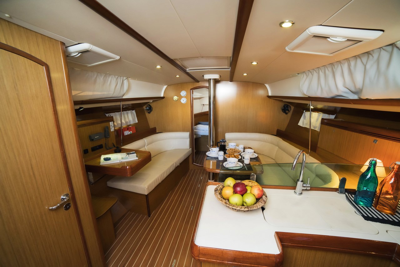 | Outside | Biminitop, Cockpitdusche, Cockpittisch, hydraul. Gangway, Solaranlage, Sprayhood, Teakdeck |