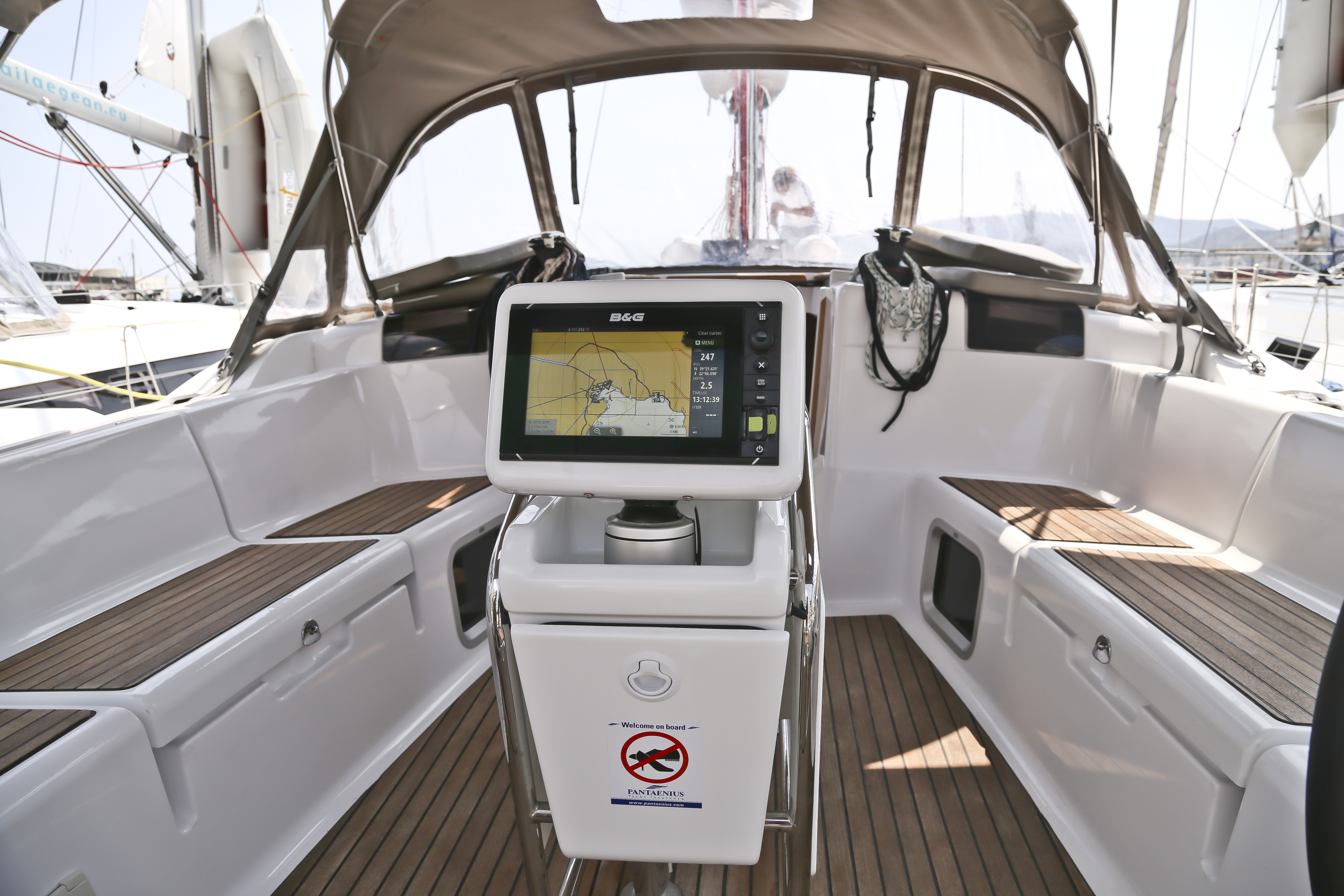 | Outside | Außendusche, Badeleiter, Biminitop, Cockpitlautsprecher, Cockpitpolster, Cockpittisch, elektr. Ankerwinsch, Gangway, Sprayhood, Teak im Cockpit |