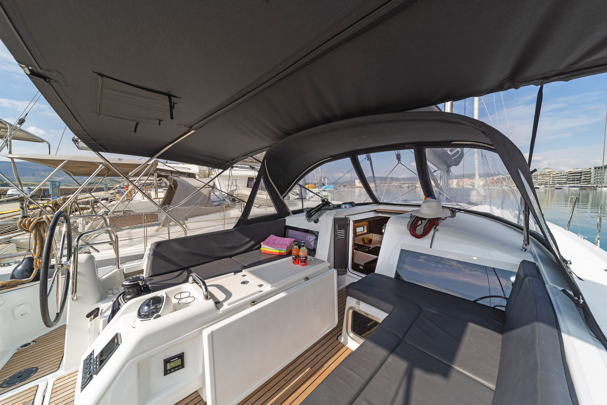 | Outside | Biminitop, Cockpitpolster, Gangway, Solaranlage, Sprayhood |