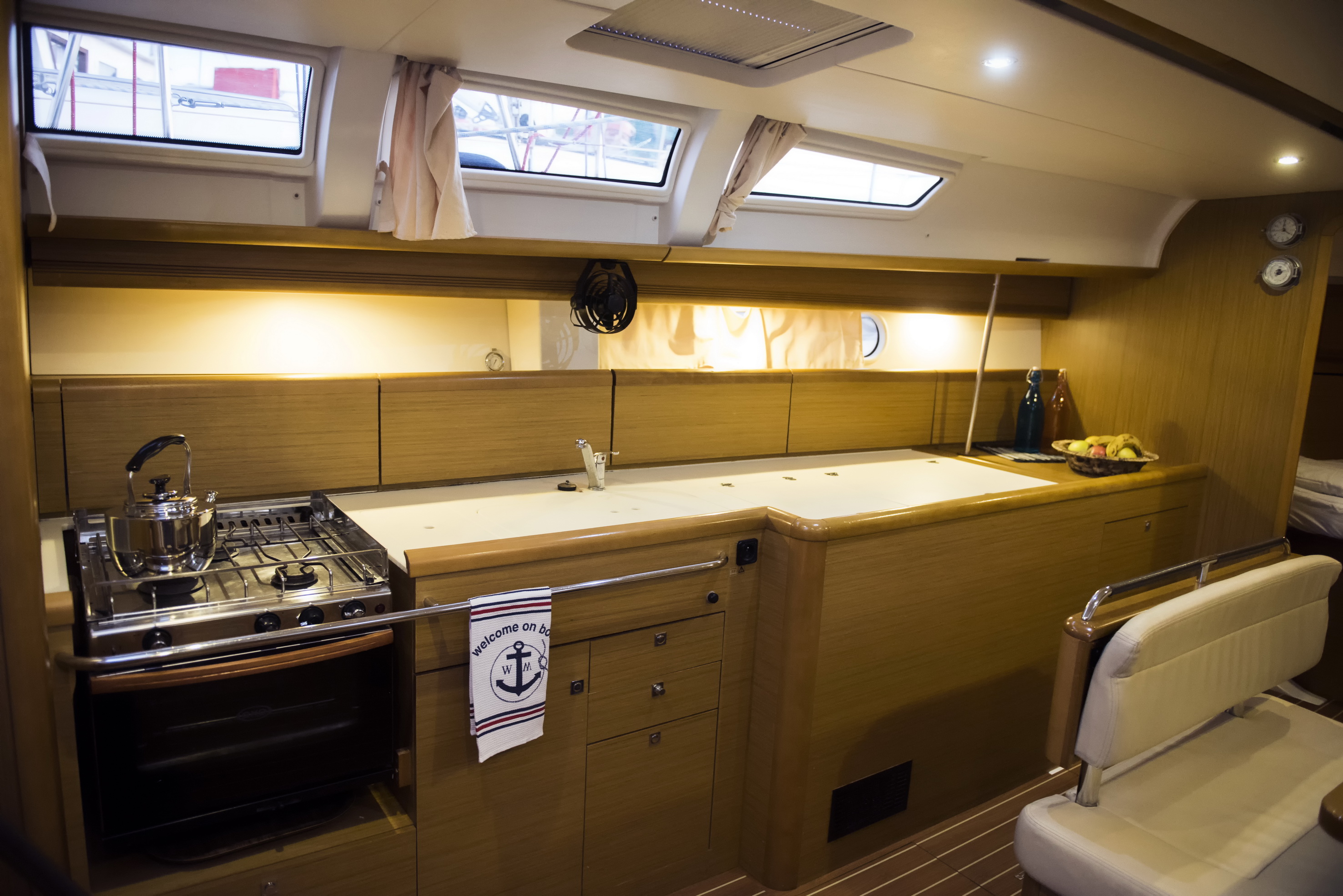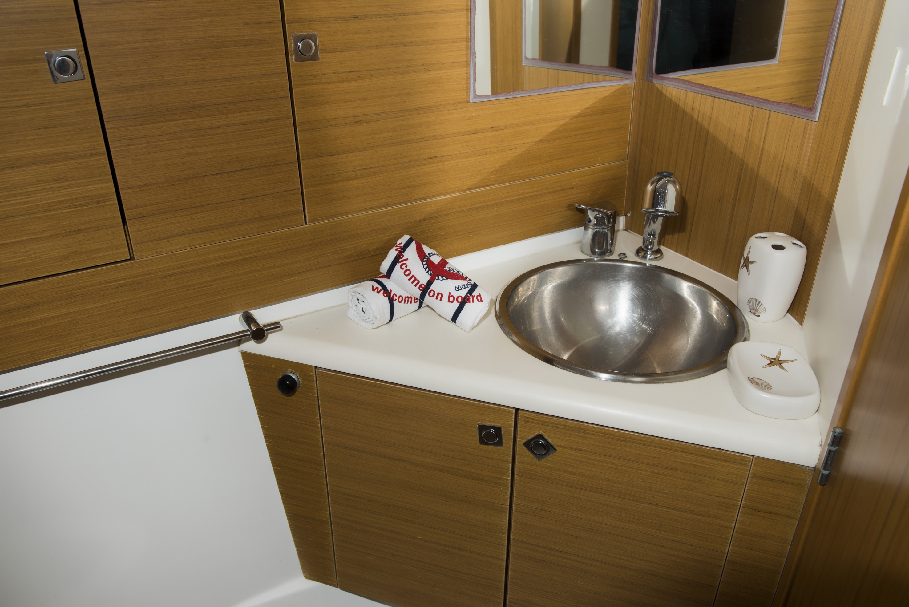 | Inside | Fäkalientank, Gefrierschrank, Inverter 12V/220V, Kühlschrank, Ladegerät, Lautsprecher im Salon, Radio mit CD und MP3, Salontisch absenkbar, USB Steckdosen in Salon und Kabinen, Ventilator, Warmwasser, WC (elektr.) |