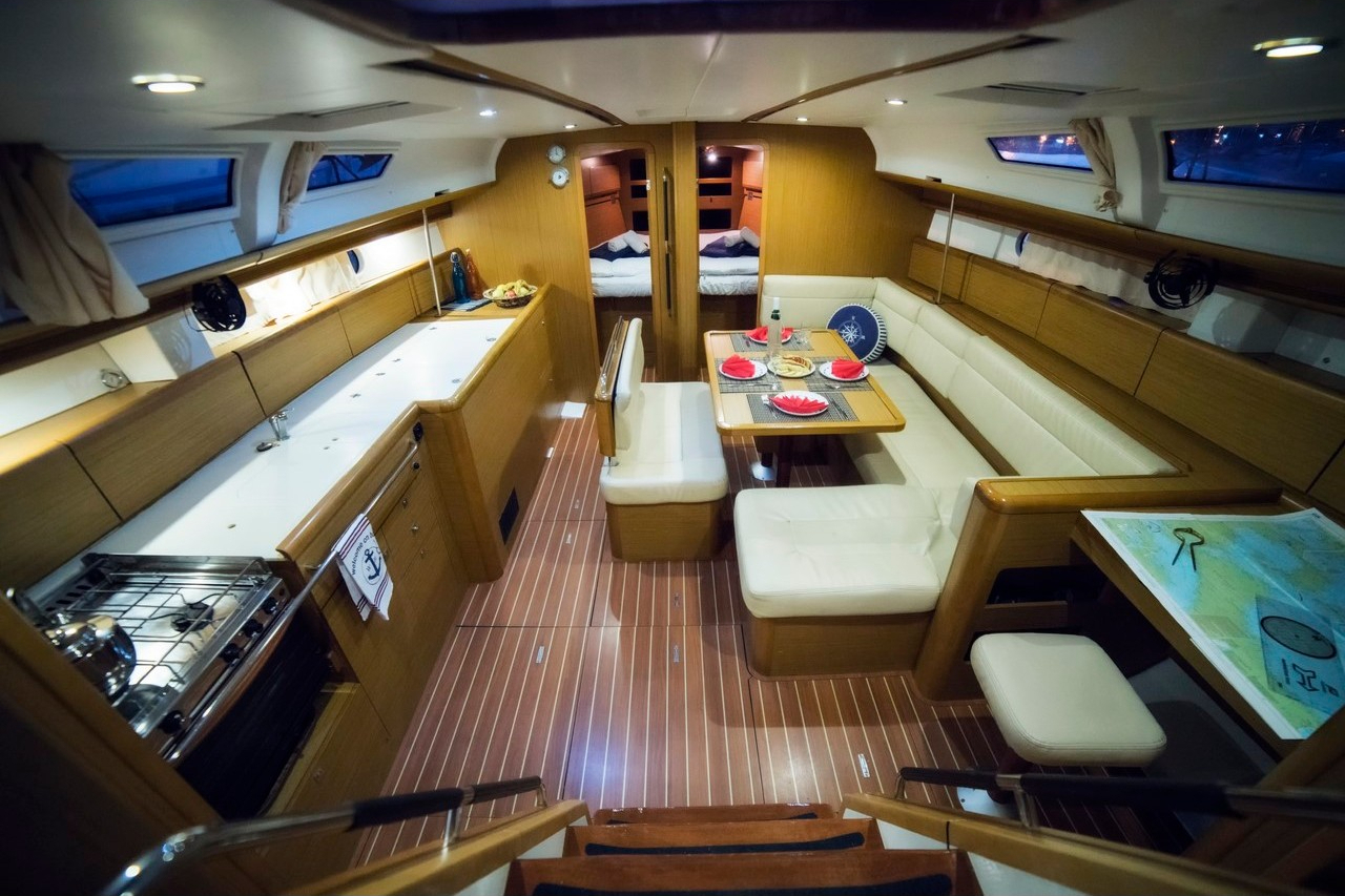 | Outside | Biminitop, Cockpitdusche, Cockpittisch, elektr. Ankerwinsch, Solaranlage, Sprayhood, Teakdeck |