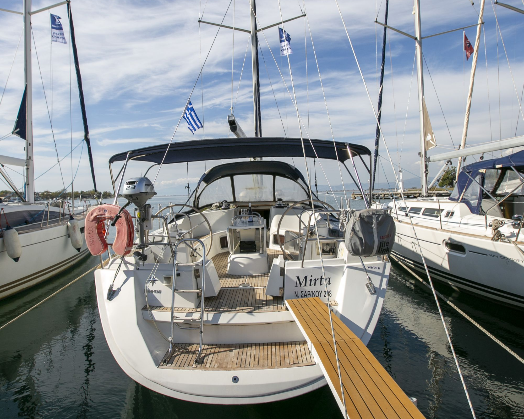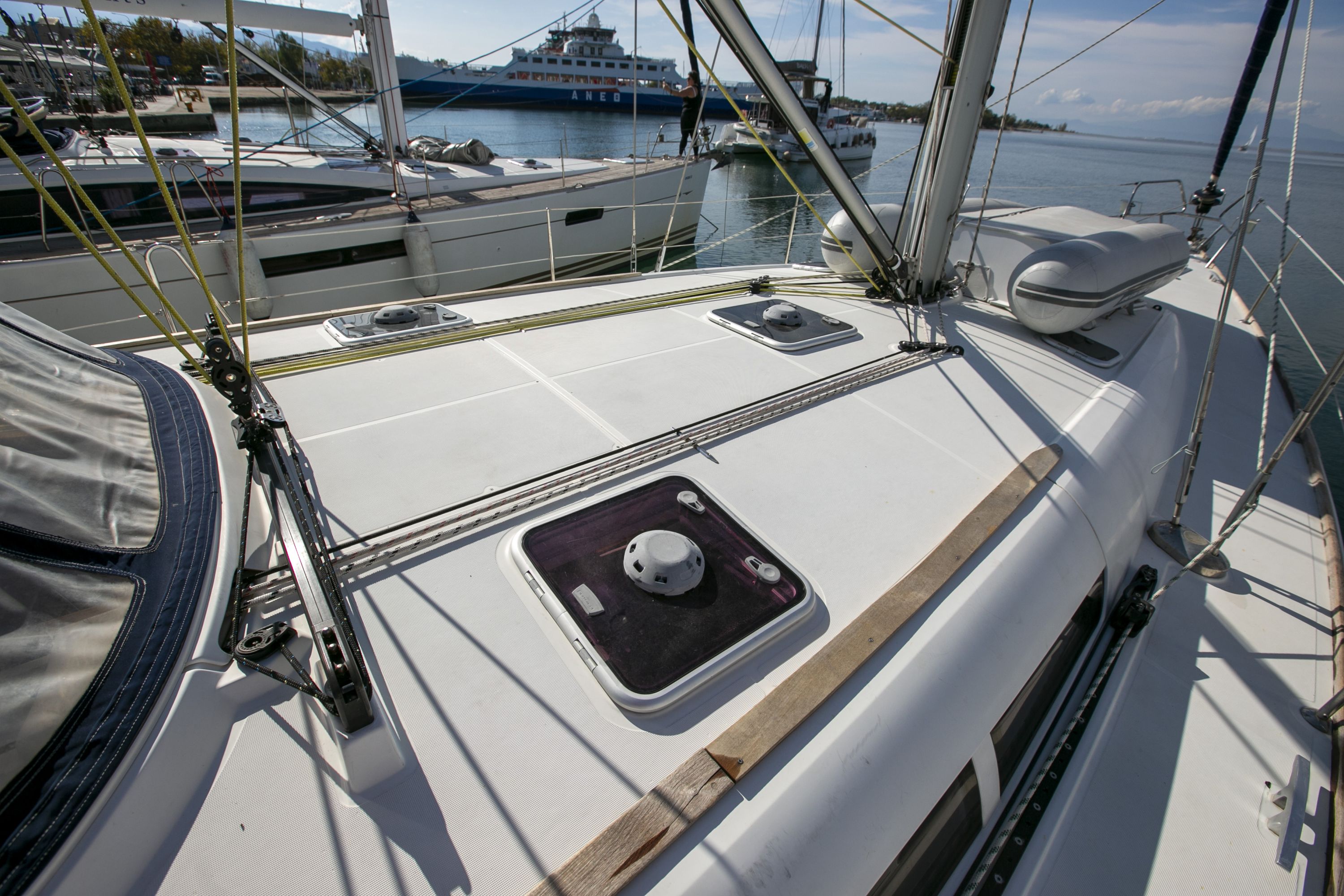| Safety | Autopilot, Bootsmannstuhl, Bordapotheke, Bordwerkzeug, Bugstrahlruder, Epirb, Feststoffschwimmwesten, Feuerlöscher, Leuchtboje, Lifebelts, Nebelhorn, Notpinne, Notsignale, Rettungsinsel, Rettungskragen, UKW-Funk, Zweitanker |