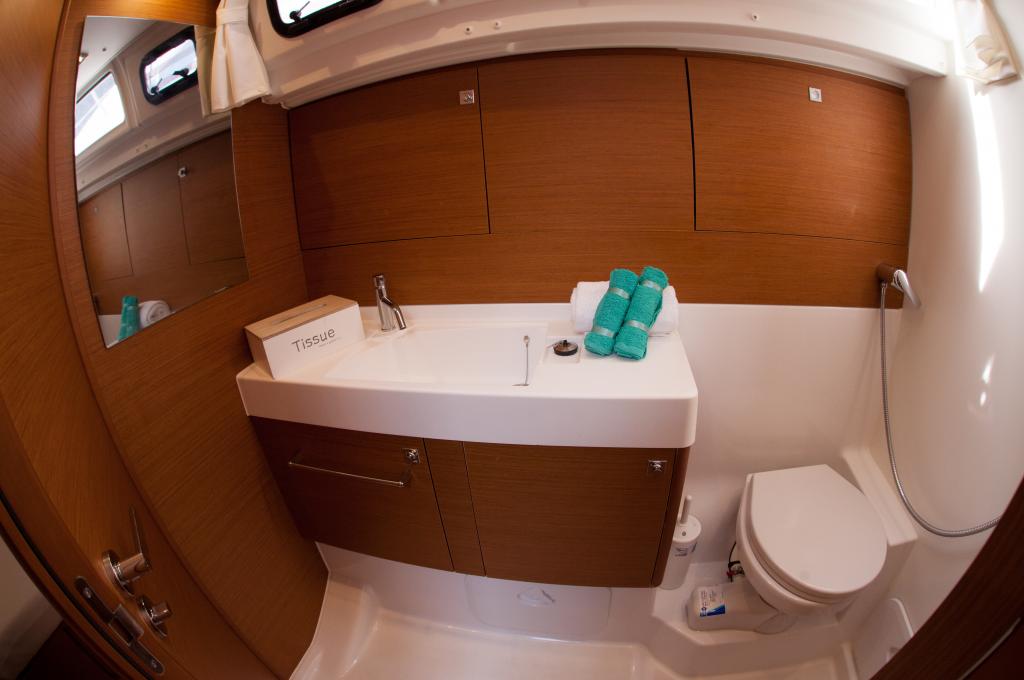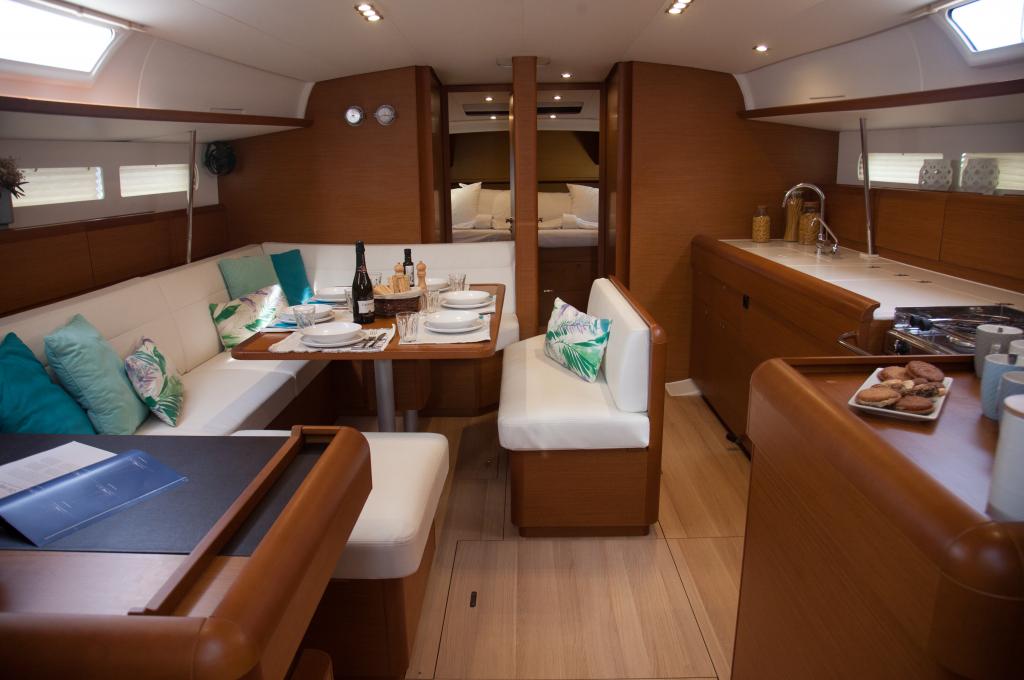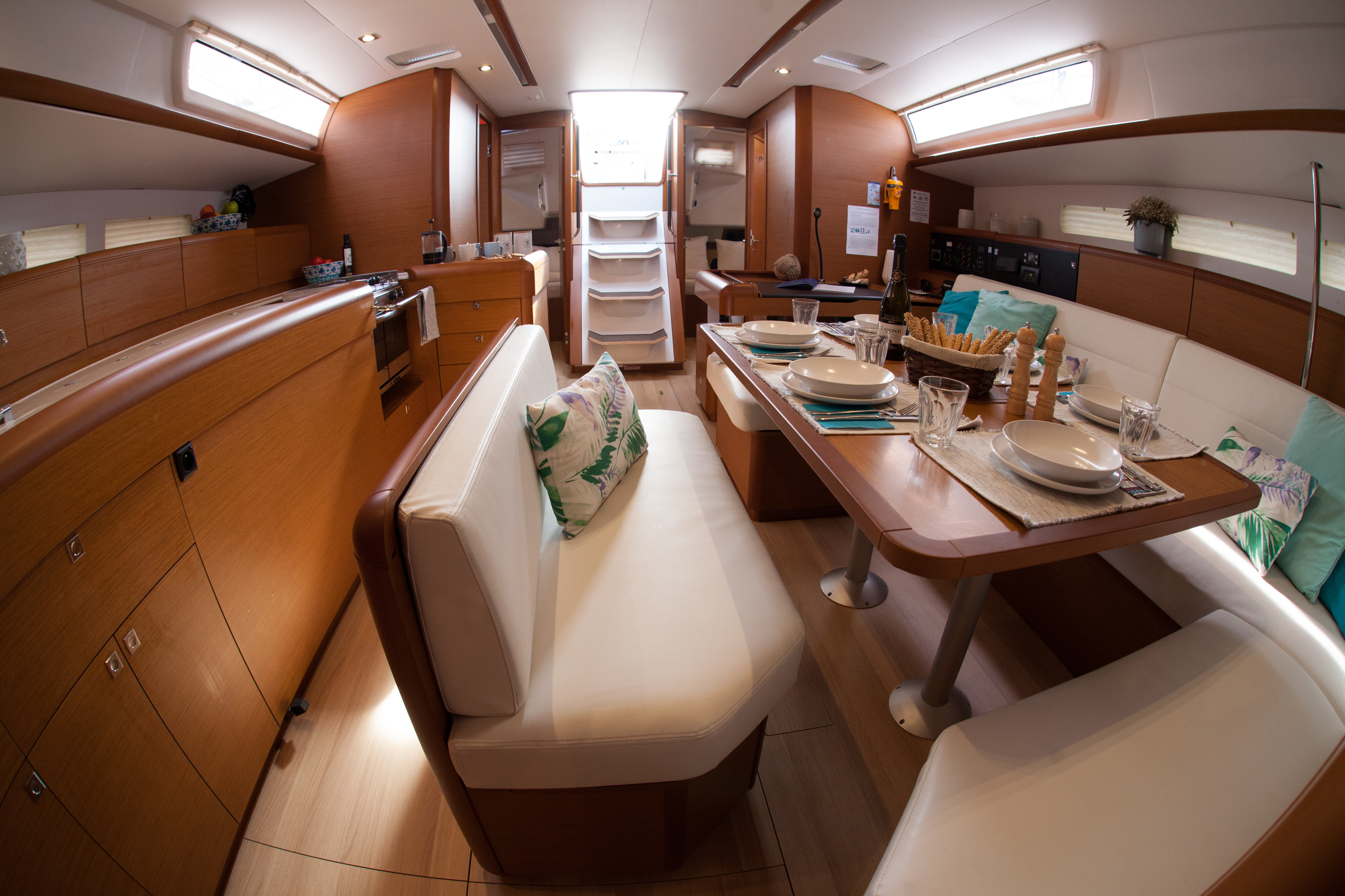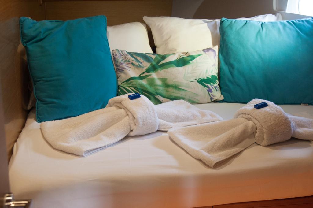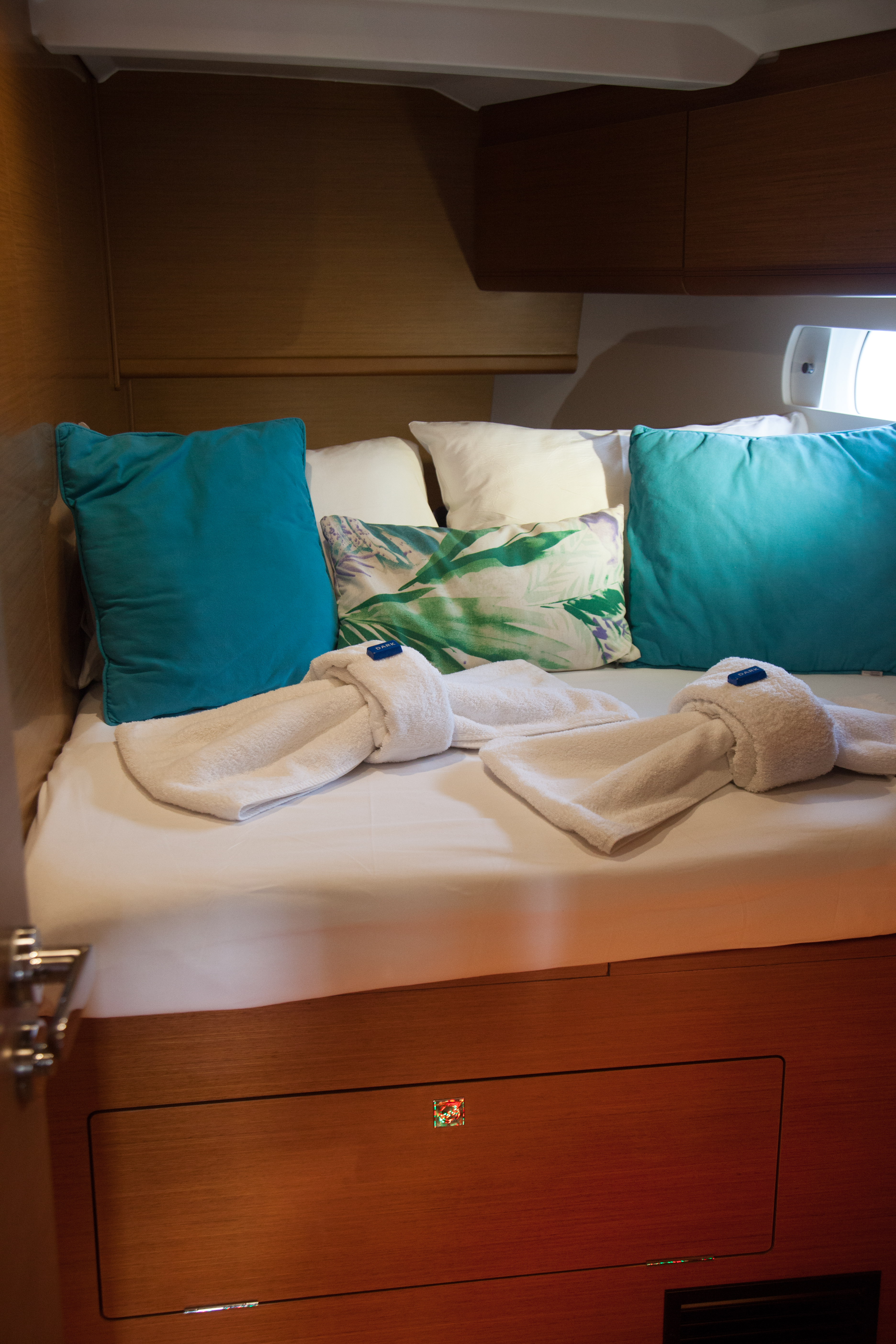 | Inside | Backofen, Fäkalientank, Gasherd, Generator, Klimaanlage (ohne Landstrombedarf), Kühlschrank, Ladegerät, Landstromkabel, Radio mit MP3 , Salontisch absenkbar, Ventilatoren in Salon und Kabinen, Warmwasser, Watermaker, WC (elektr.) |