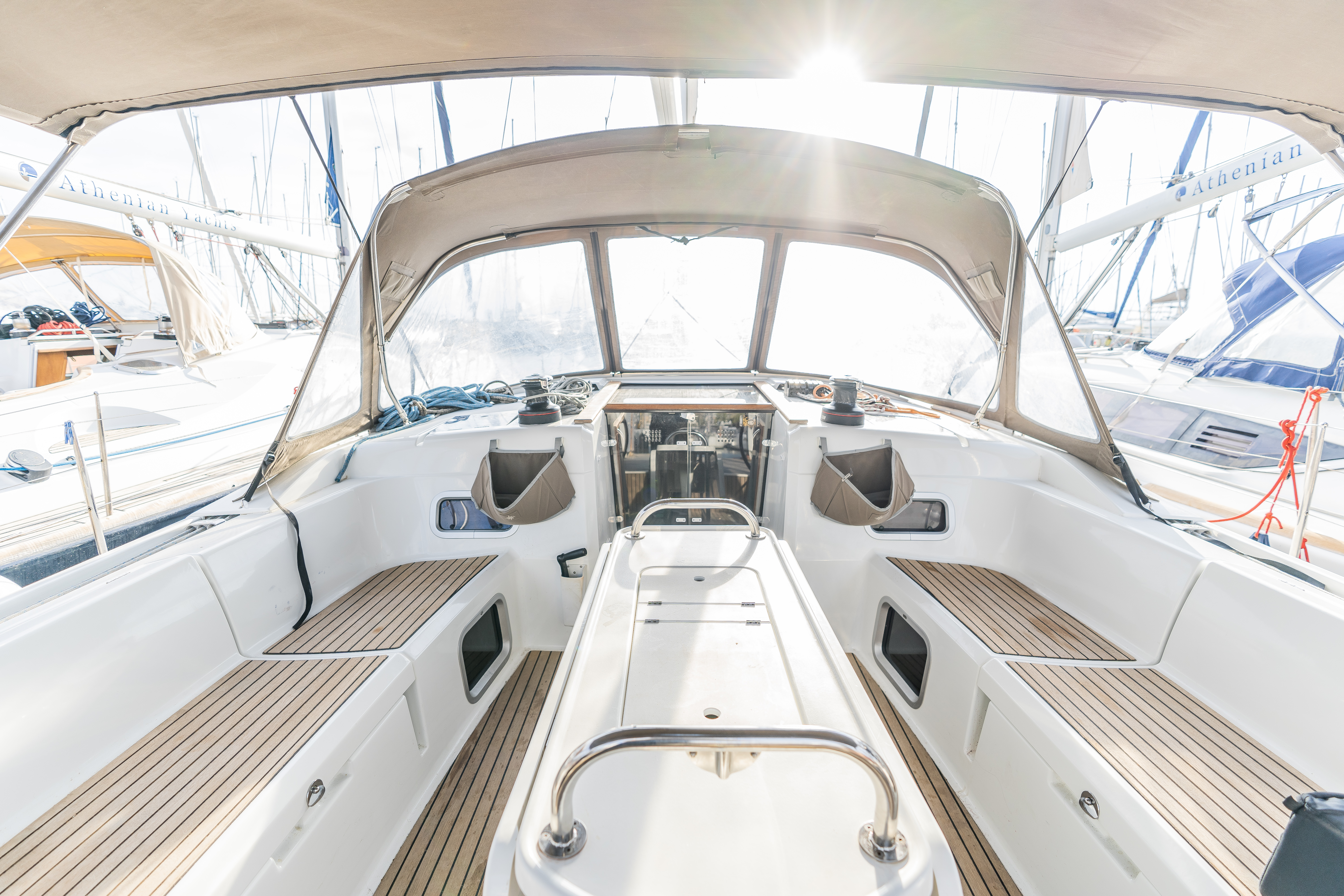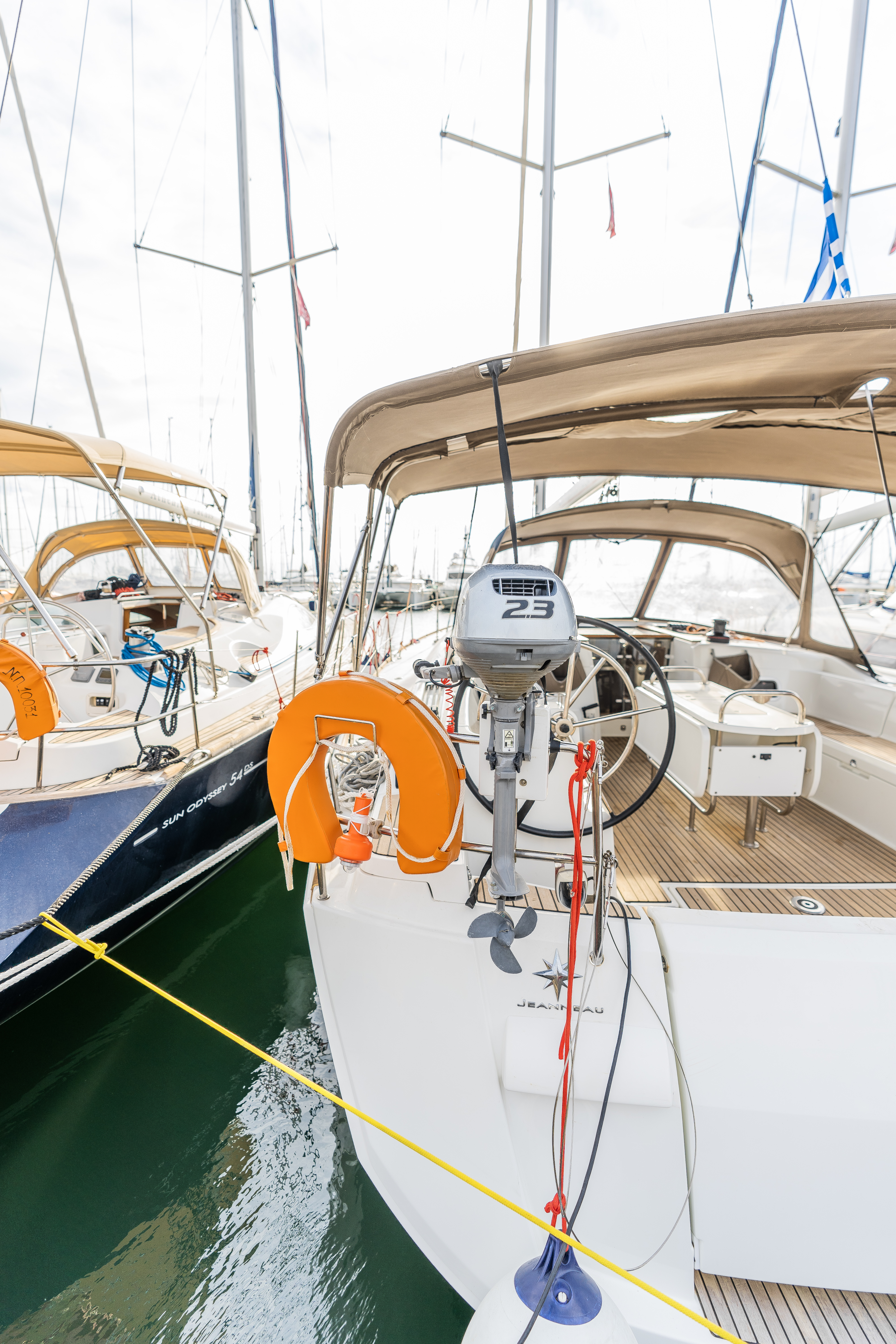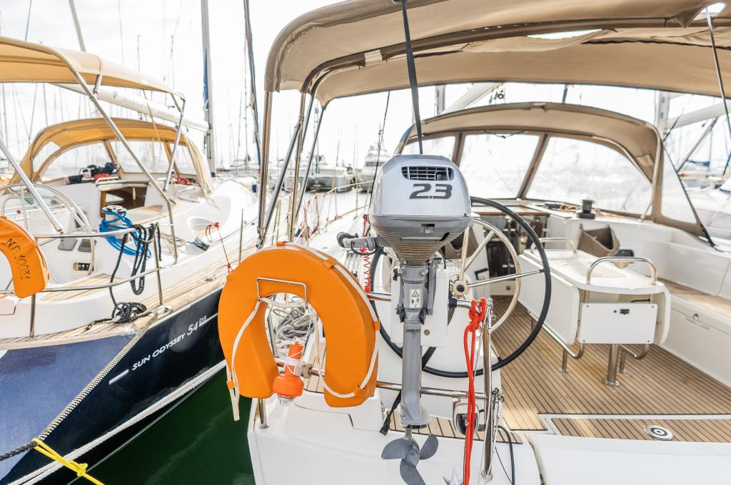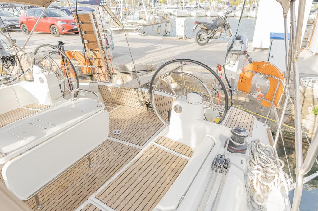 | Outside | 220 V-Landanschluss, Badeleiter, Biminitop, Cockpitdusche, Cockpitlautsprecher, Cockpitpolster, Cockpittisch, elektr. Ankerwinsch, Gangway, Schnorchelausrüstung, Solaranlage, Sprayhood |