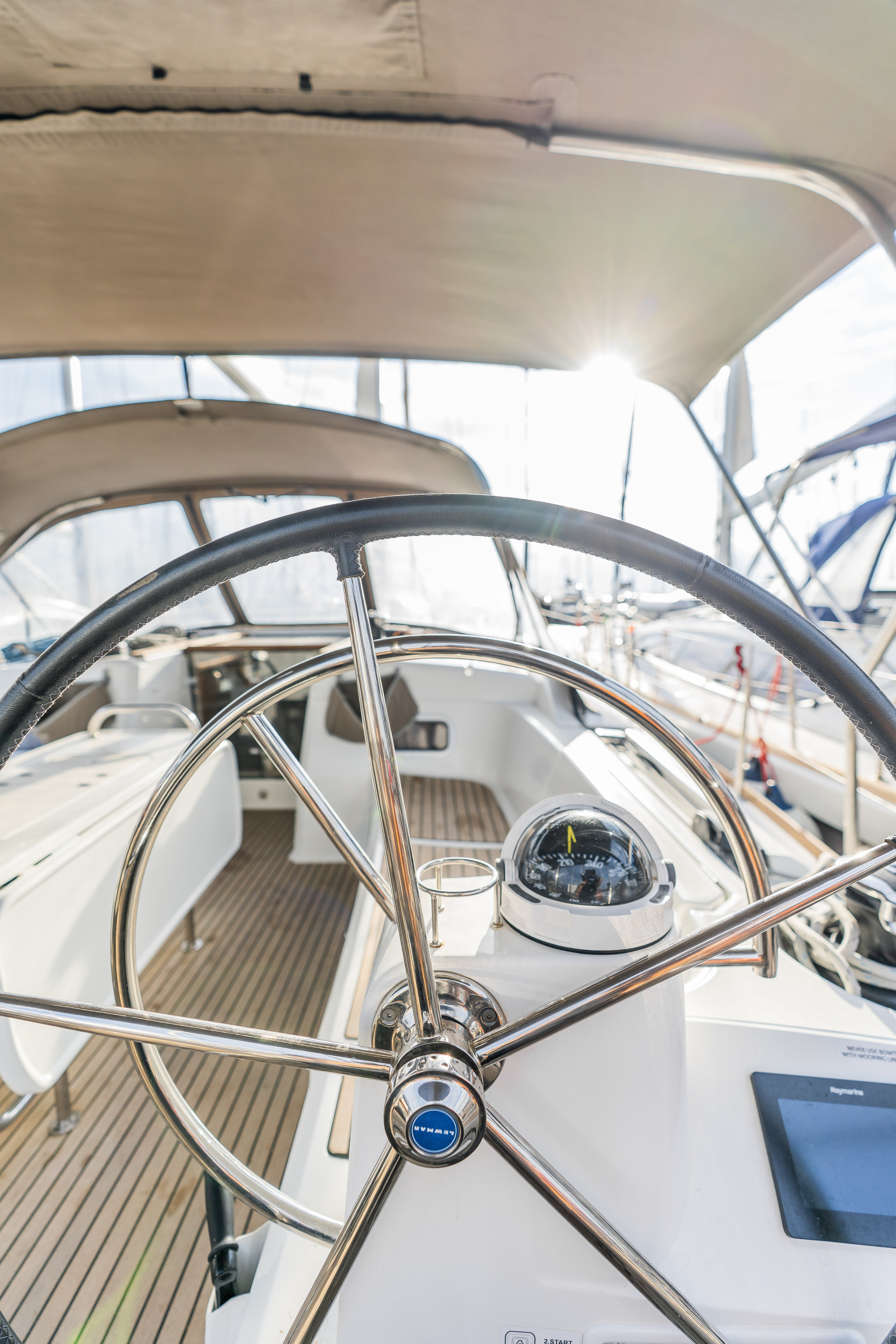 | Navigation | Echolot, GPS mit Kartenplotter im Cockpit, Hafenhandbücher, Seekarten, Sumlog, Windmesser |