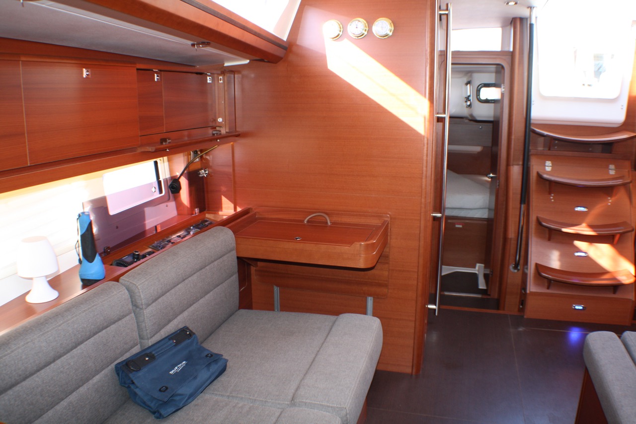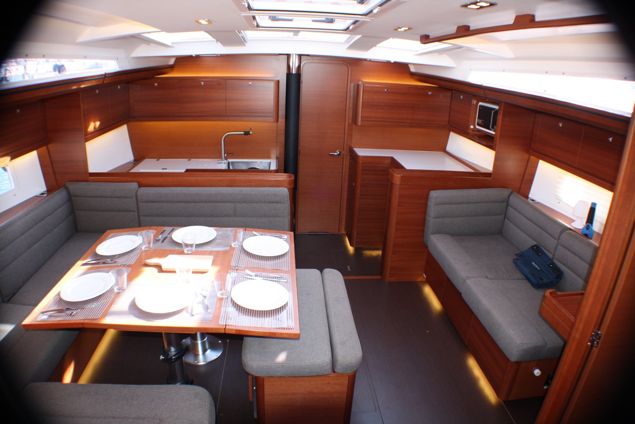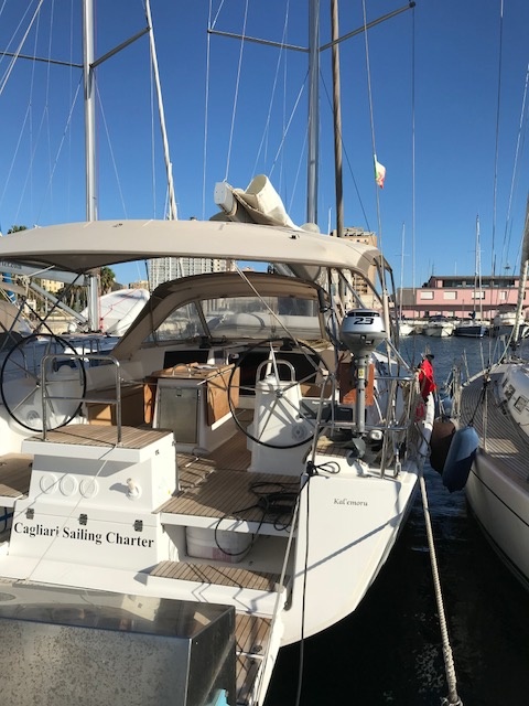 | Outside | Anker mit Kette, Außendusche, Badeplattform, Biminitop, Cockpitdusche, Cockpitlautsprecher, Cockpitpolster, Cockpittisch, elektr. Ankerwinsch, Gangway, Grill, Selbstholende Winschen, Sprayhood, Teak im Cockpit, Windex |