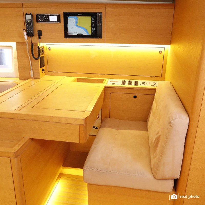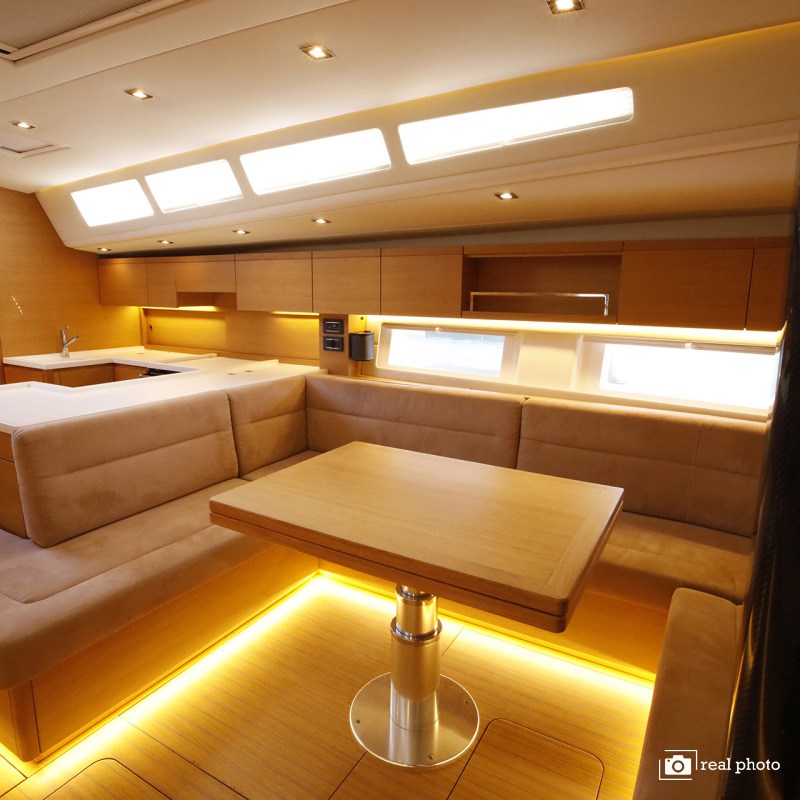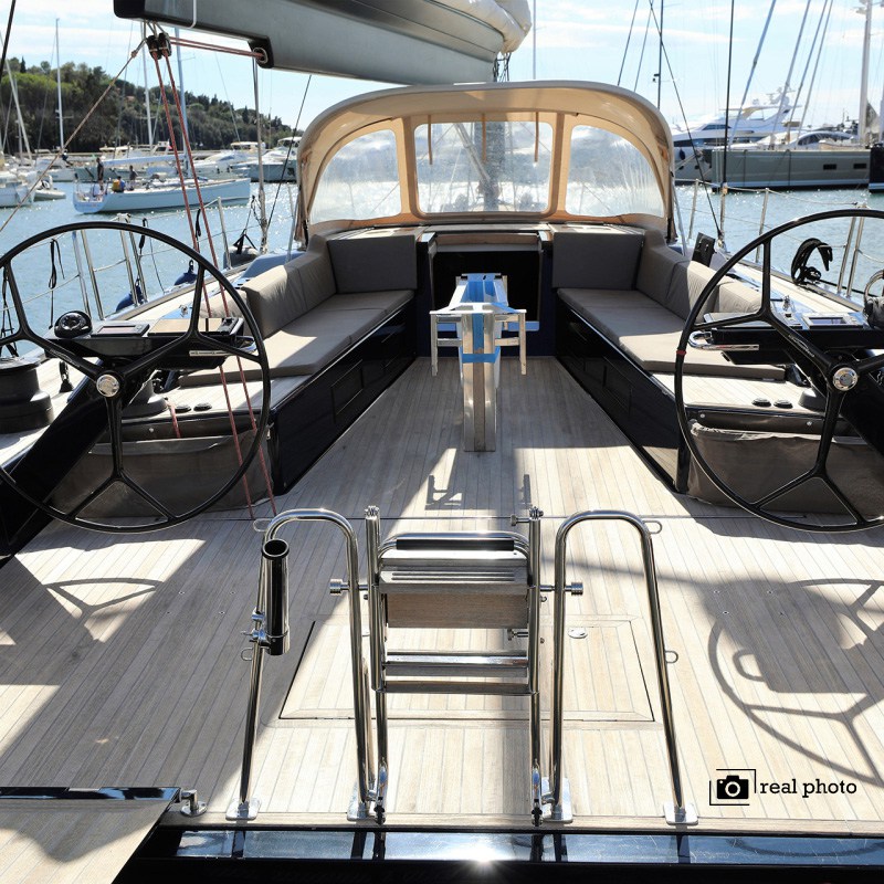 | Outside | Badeplattform elektr., Biminitop, Cockpitpolster, elektr. Genuawinsch, elektr. Winsch, Gangway, Sprayhood, Teak im Cockpit, Teakdeck |