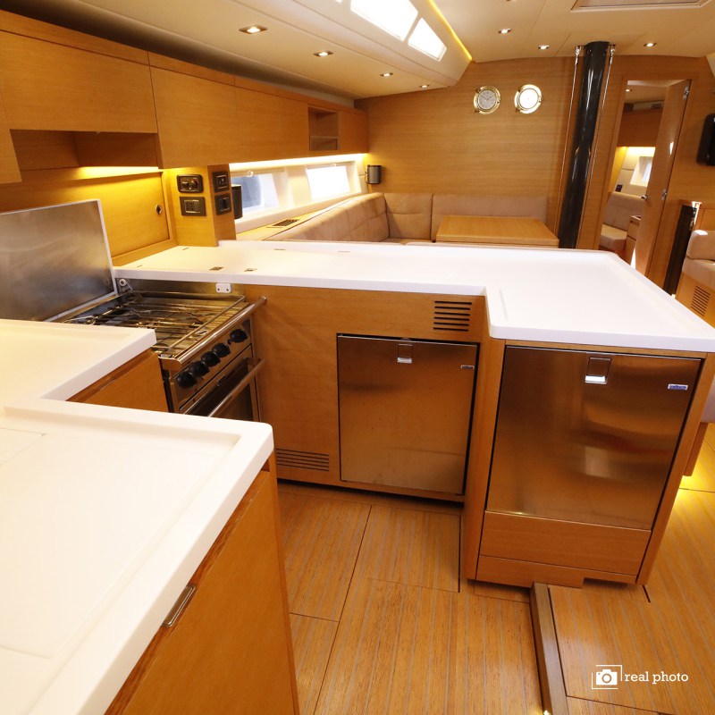 | Inside | Backofen, Eiswürfelmaschine, FUSION Sound System, Gasherd, Gefrierschrank, Generator, Klimaanlage (ohne Landstrombedarf), Kühlschrank, Trockner, Warmwasser, Waschmaschine, Watermaker, WC (elektr.), Weinkühlschrank |