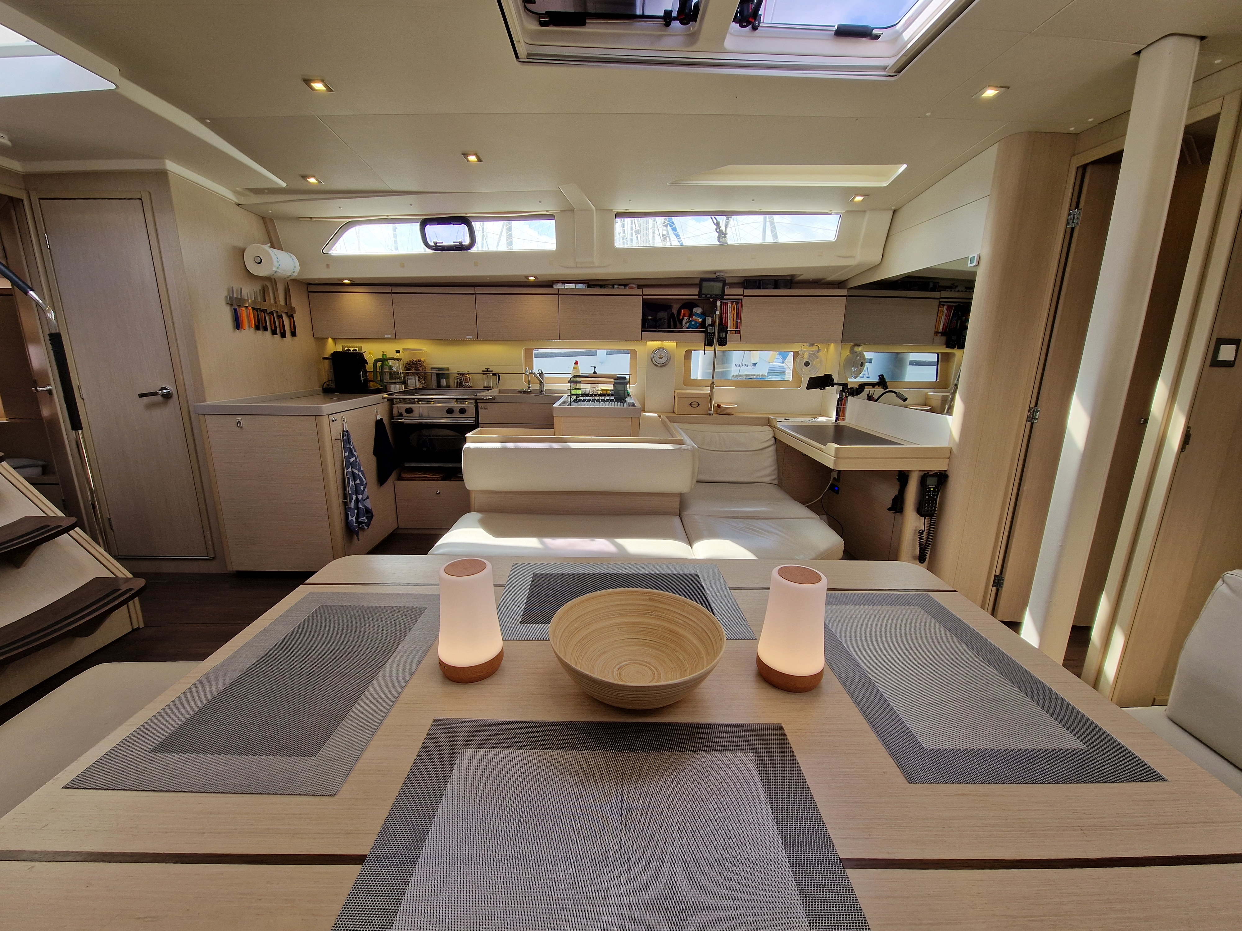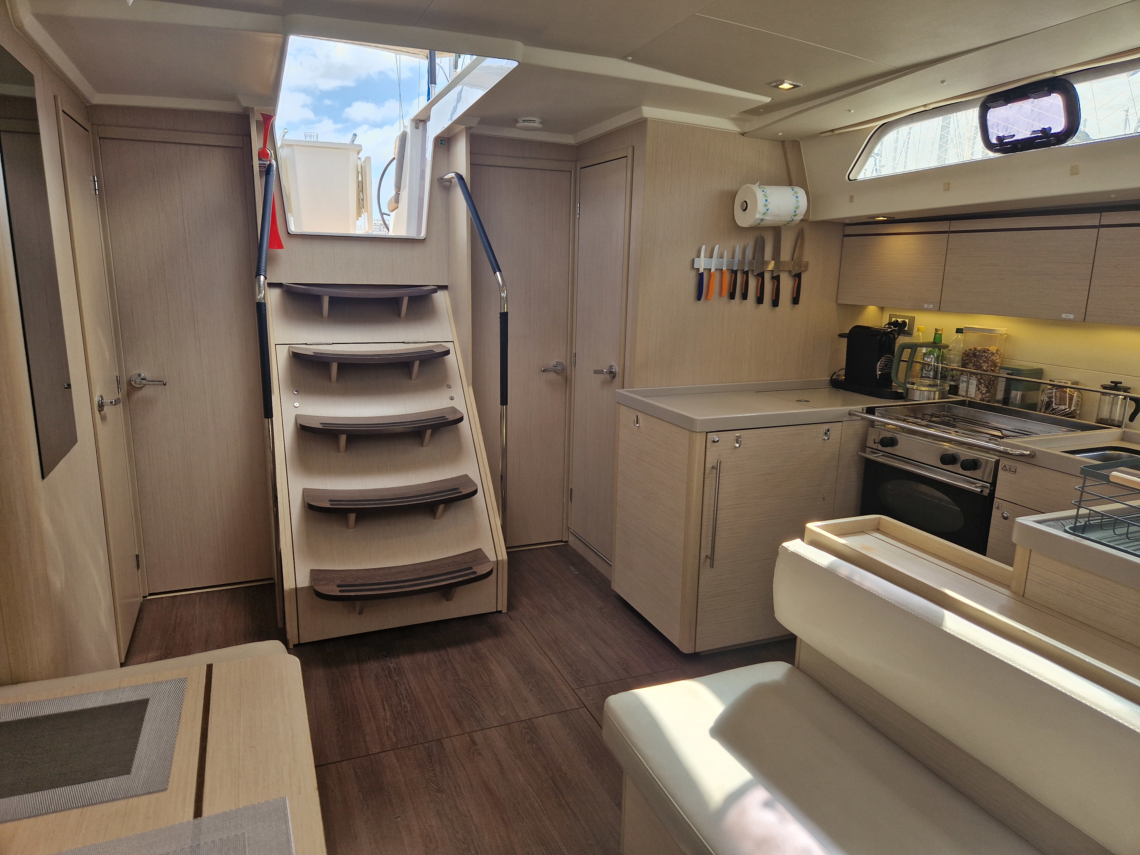 | Inside | Gasherd mit Backofen, Generator, Geschirrspüler, Kaffeemaschine, Klimaanlage (ohne Landstrombedarf), Mikrowelle, Pantryausstattung, TV, Watermaker |