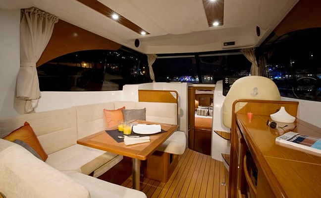 | Outside | Anker mit Kette, Cockpitpolster, Fender, Teakdeck |