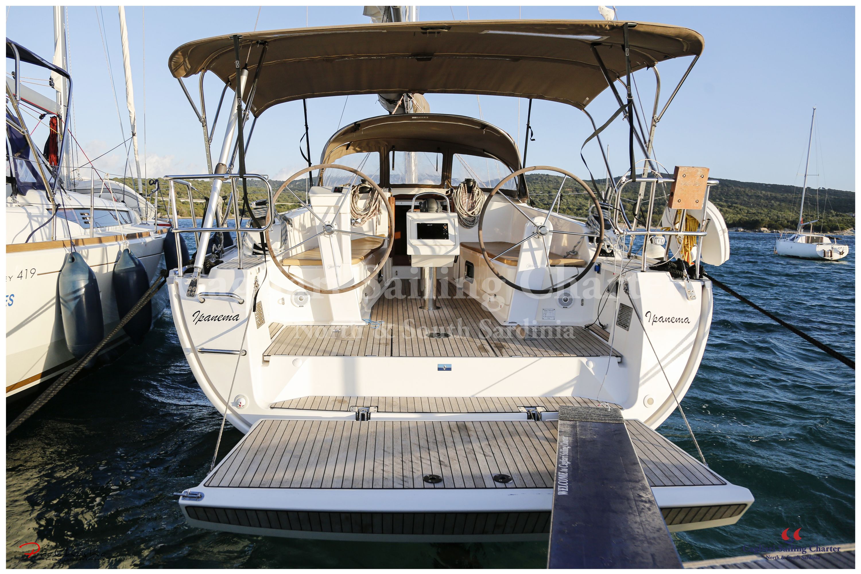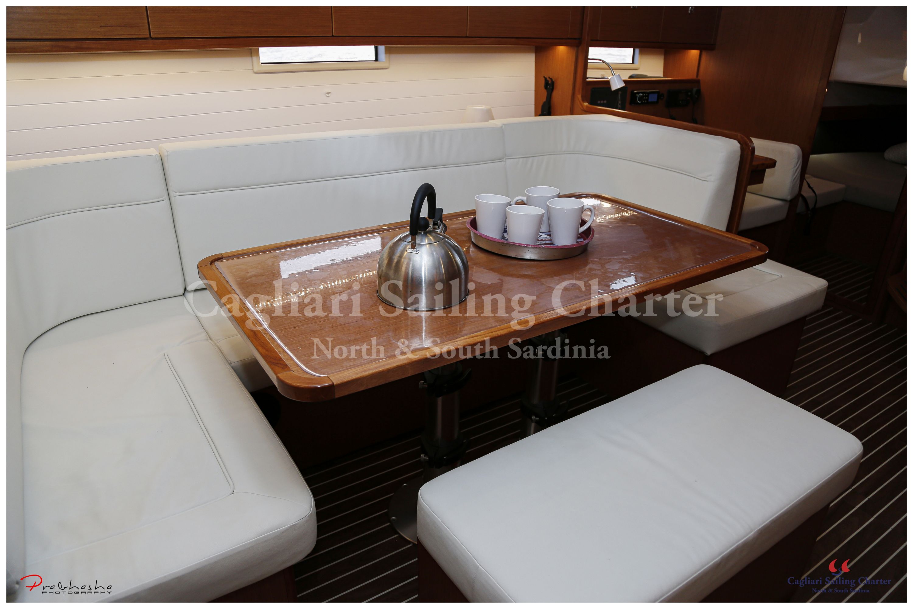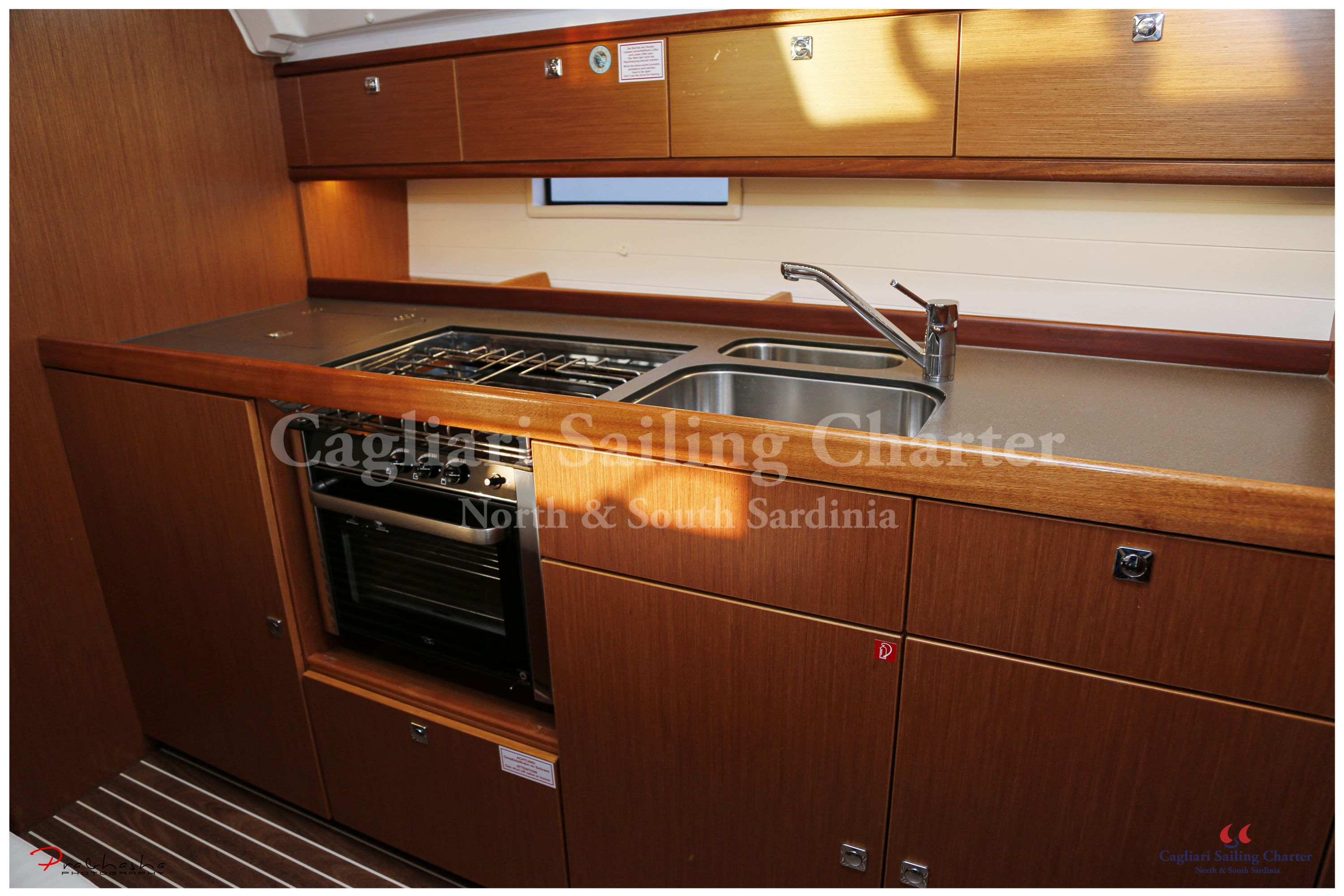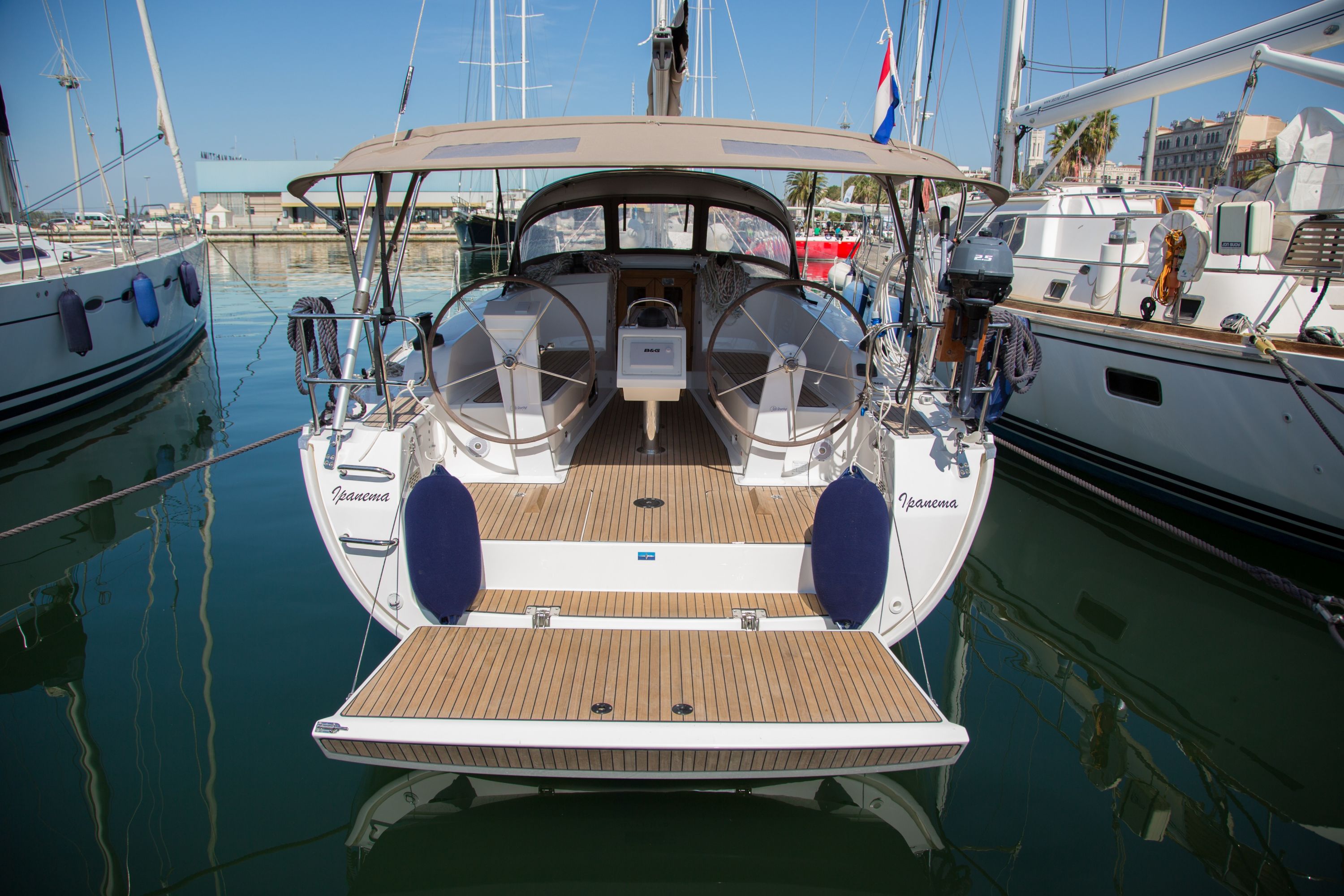 | Outside | Anker mit Kette, Außendusche, Badeplattform, Biminitop, Cockpitdusche, Cockpitlautsprecher, Cockpitpolster, Cockpittisch, elektr. Ankerwinsch, Gangway, Selbstholende Winschen, Sprayhood, Teak im Cockpit, Windex |