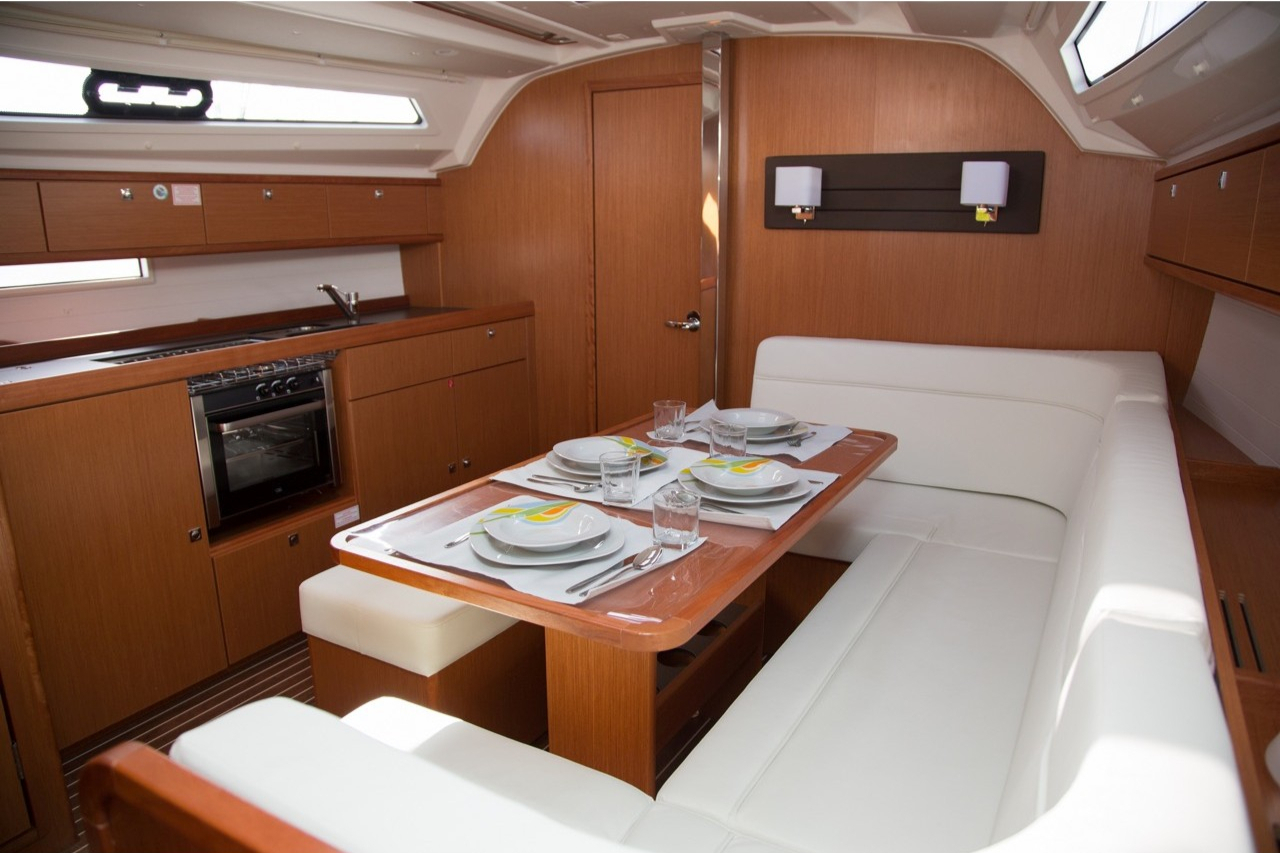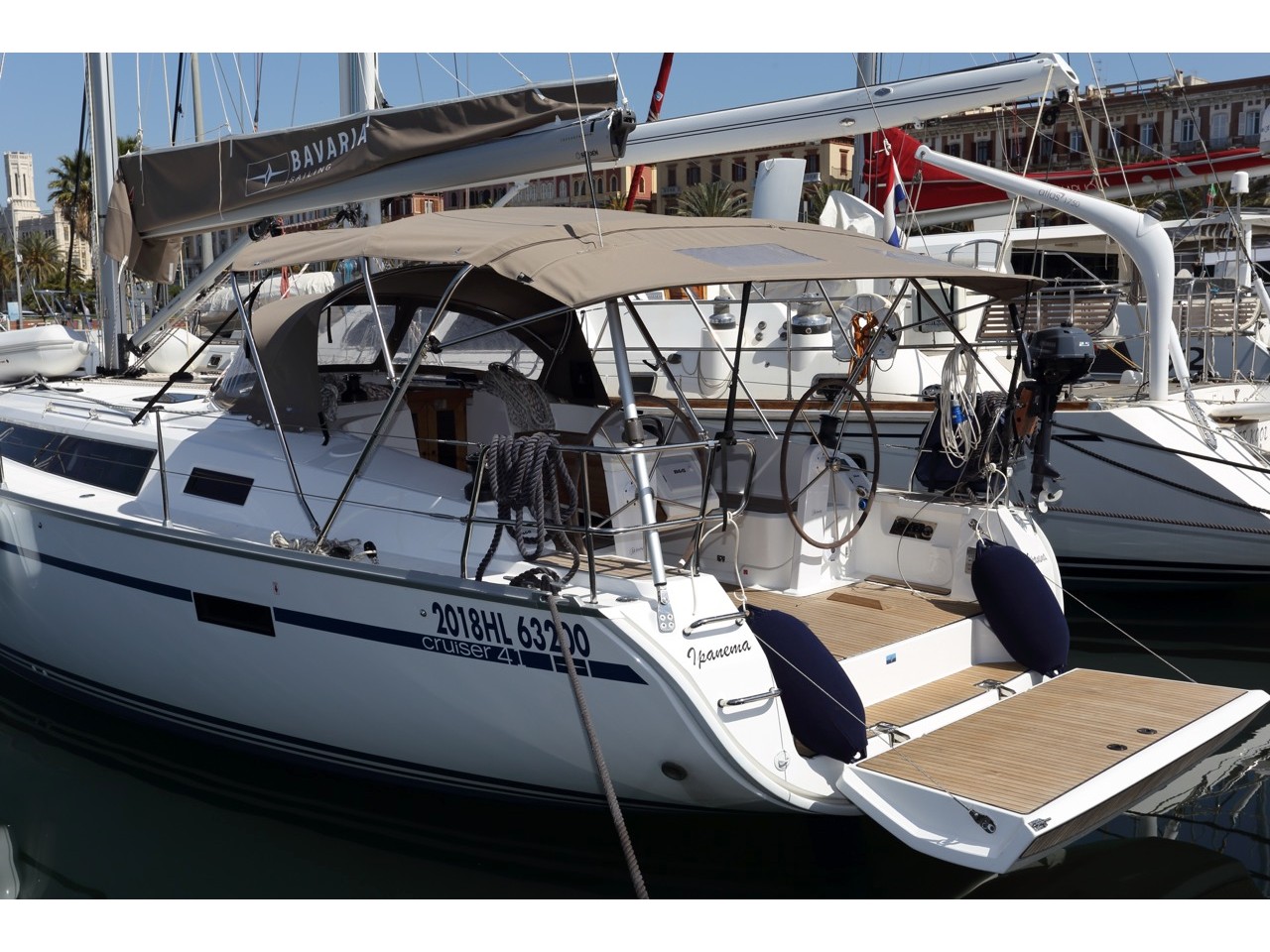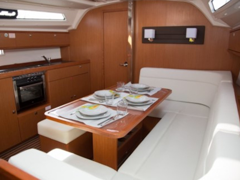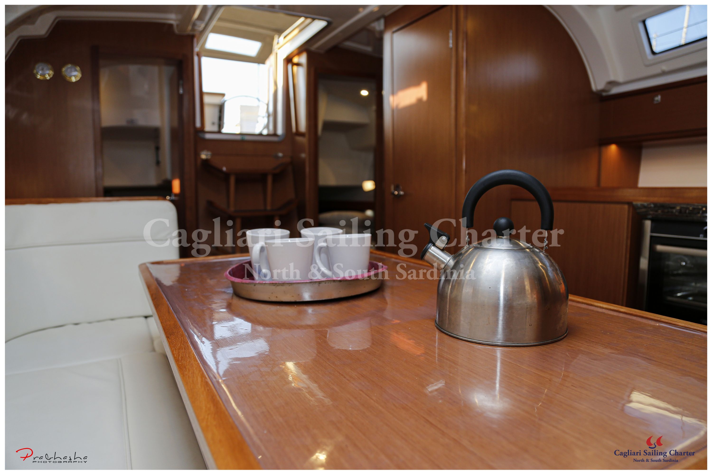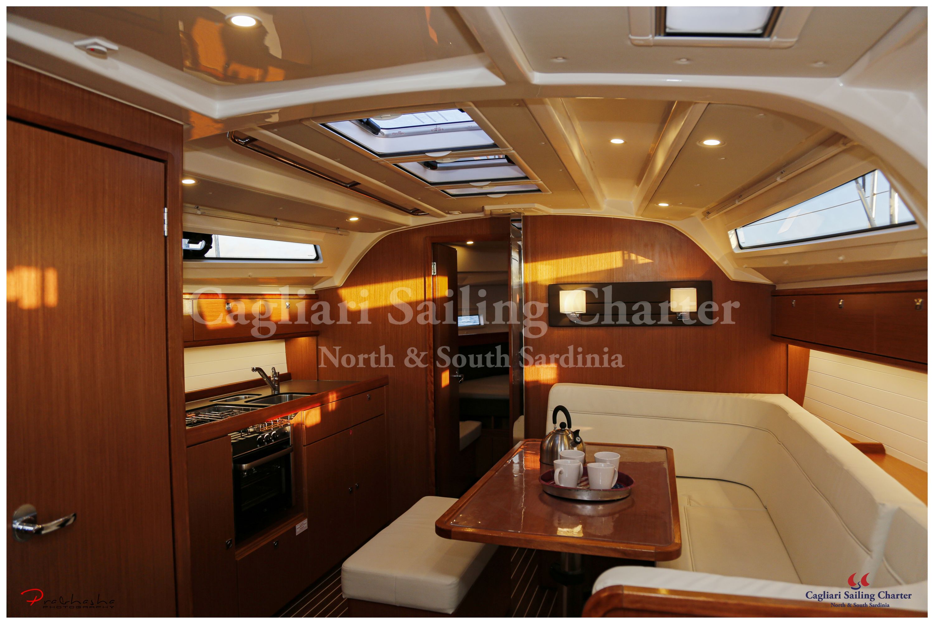 | Outside | Anker mit Kette, Außendusche, Badeplattform, Biminitop, Cockpitdusche, Cockpitlautsprecher, Cockpitpolster, Cockpittisch, elektr. Ankerwinsch, Gangway, Selbstholende Winschen, Sprayhood, Teak im Cockpit, Windex |