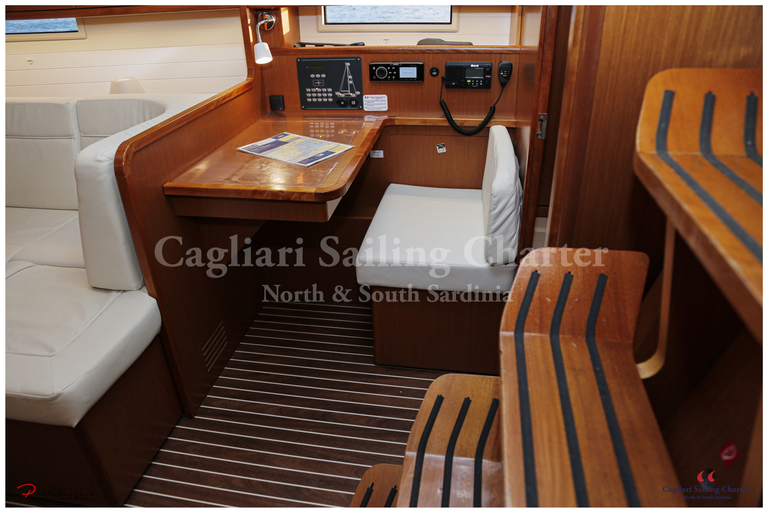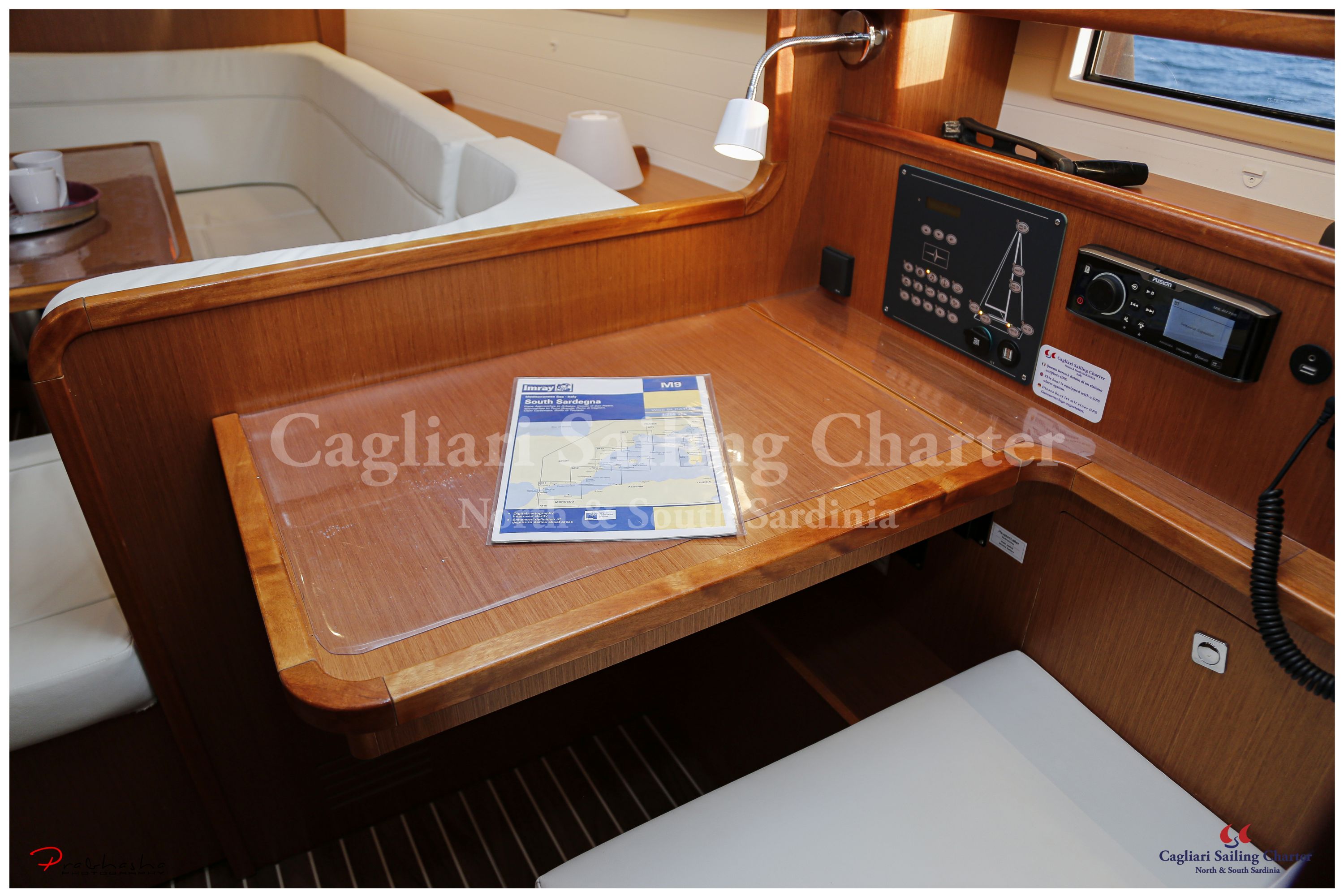 | Navigation | Echolot, GPS mit Kartenplotter im Cockpit, Hafenhandbücher, Kompass, Seekarten, Sumlog, Windmesser |