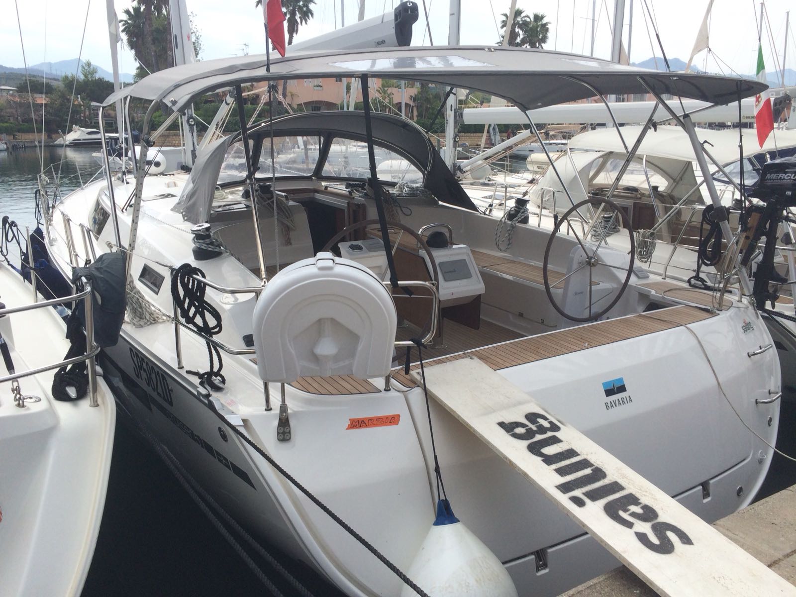 | Outside | 220 V-Landanschluss, Badeleiter, Biminitop, Bootshaken, Cockpitdusche, Deckbürste, elektr. Ankerwinsch, Festmacherleinen, Gangway, Kunststoff-Eimer (Pütz), Sprayhood, Teak im Cockpit, Wasserschlauch |