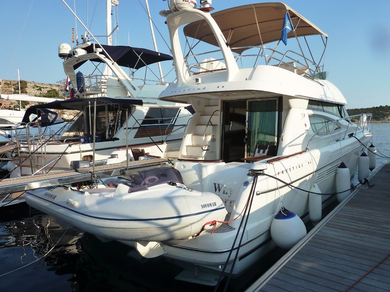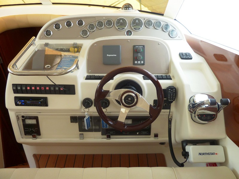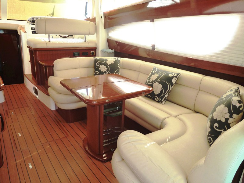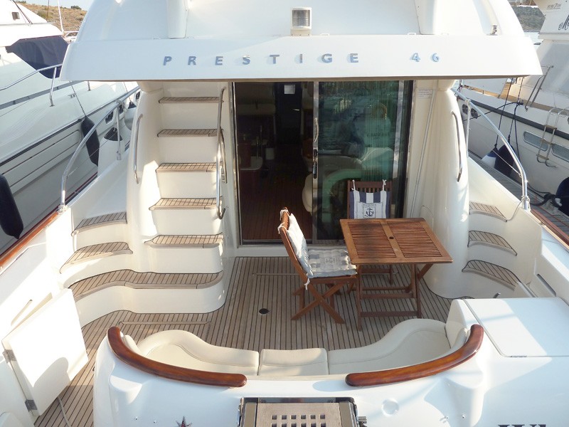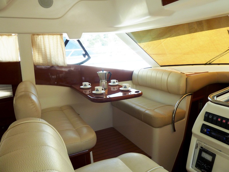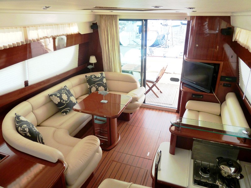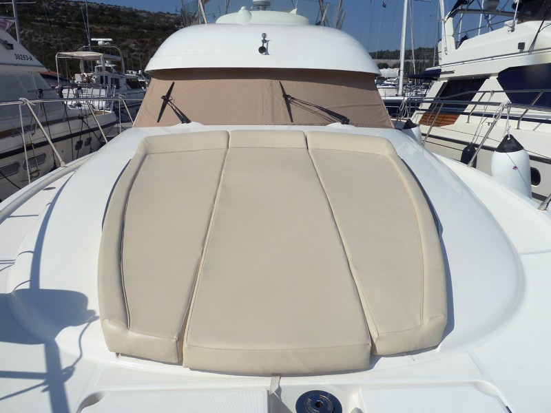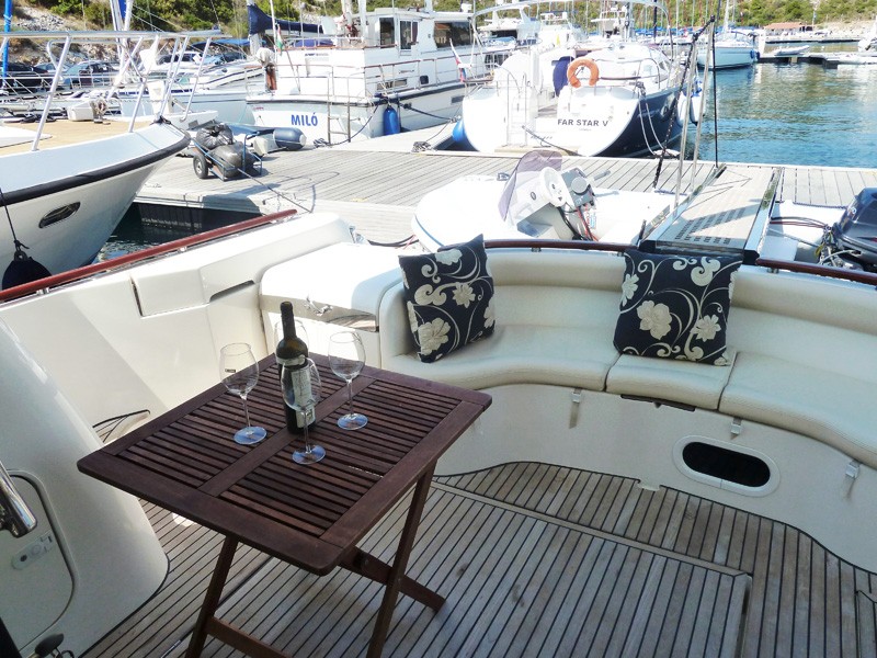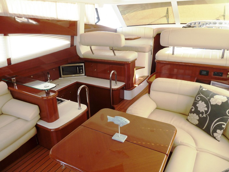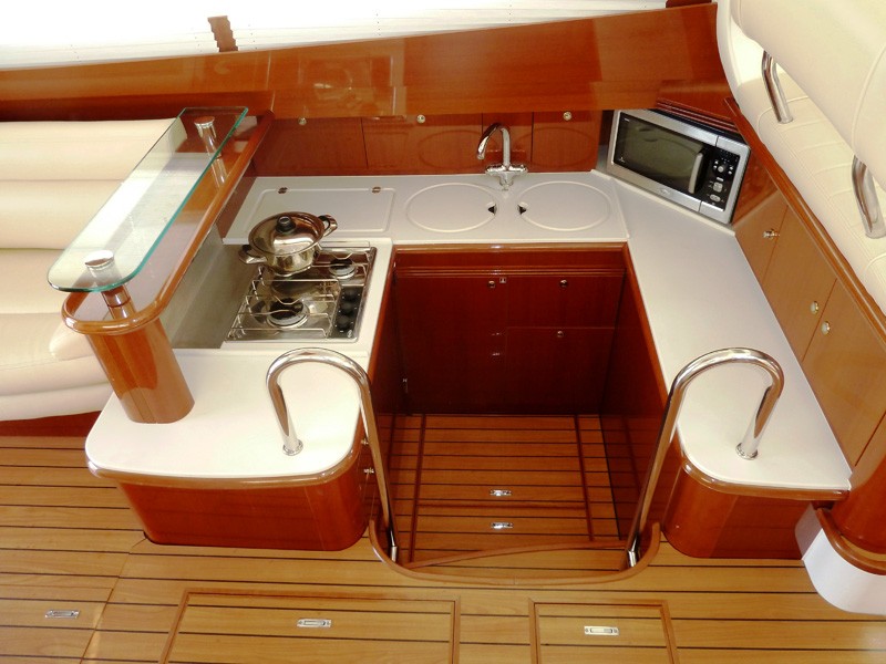 | Outside | Abnehmbarer Cockpittisch, Anker mit Kette, Cockpitkühlschrank, Cockpitpolster, Fender, Gangway, Teakdeck |