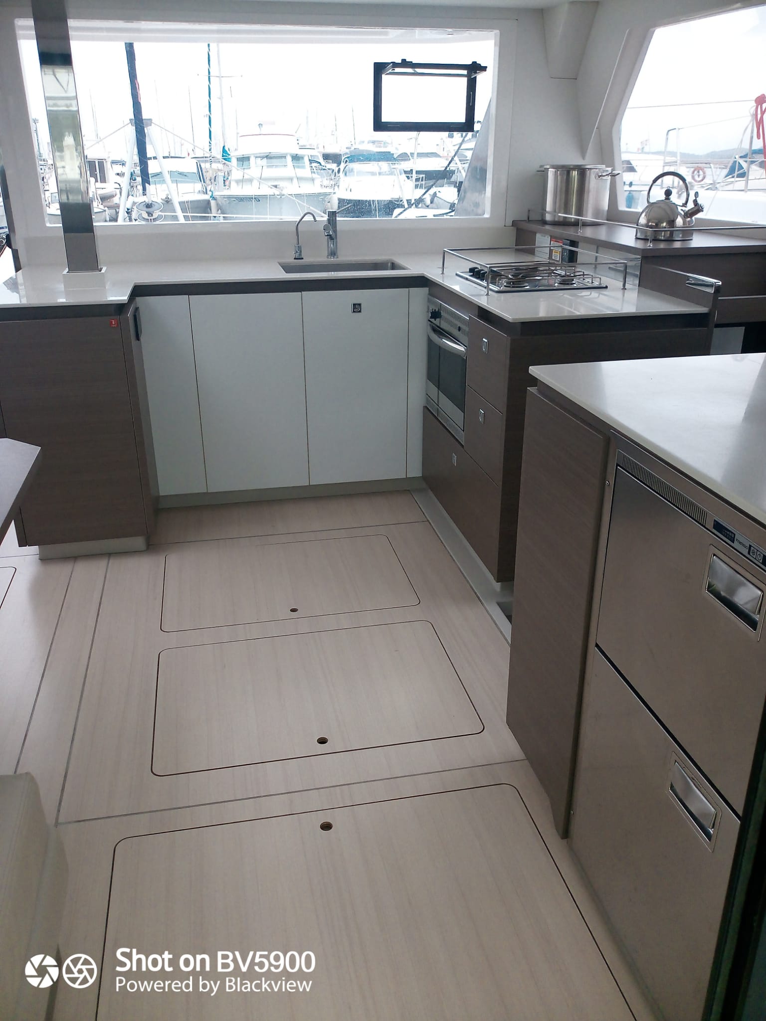 | Inside | Borduhr, CD-Player, Gasherd mit Backofen, Generator, Inverter 12V/220V, Kaffeemaschine, Klimaanlage (ohne Landstrombedarf), Kühlschrank, Mikrowelle, Pantryausstattung, Trichter, Warmwasser, Watermaker, WC (elektr.) |