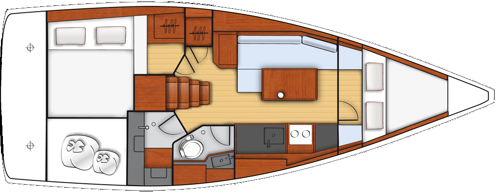| Kabinen: | 2 | Kojen: | 4+1 |