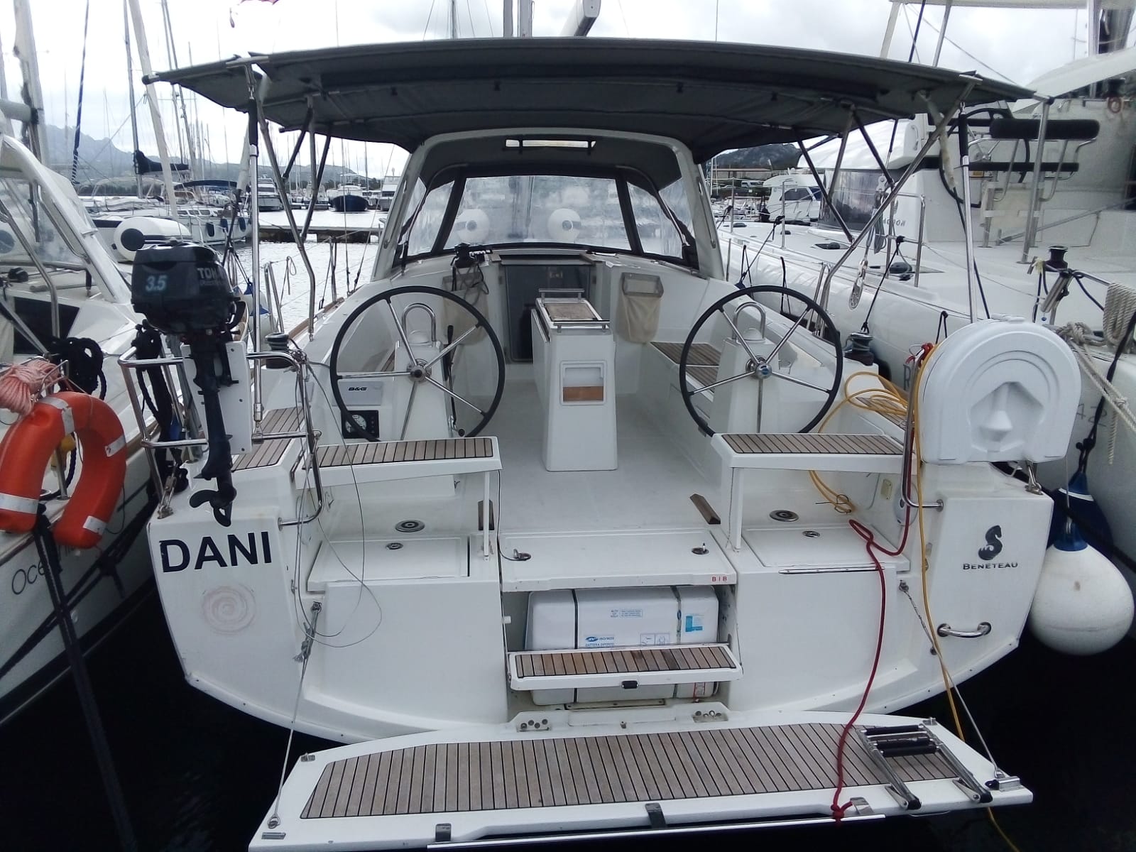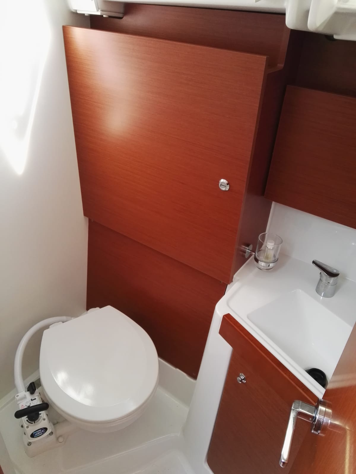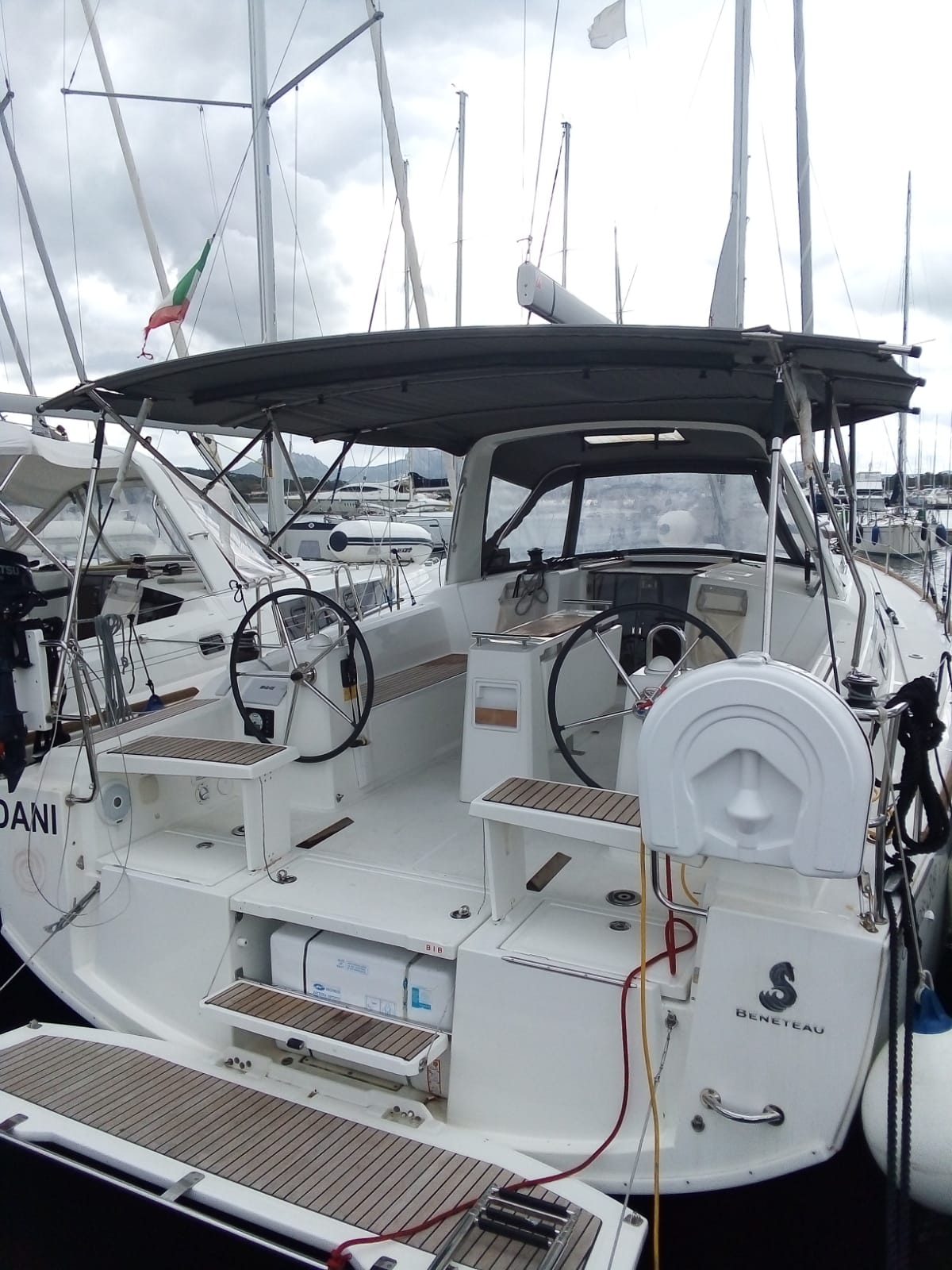 | Outside | Badeleiter, Biminitop, Bootshaken, Cockpitlautsprecher, Cockpittisch, Deckbürste, Festmacherleinen, Kunststoff-Eimer (Pütz), Sprayhood, Teak im Cockpit, Wasserschlauch |