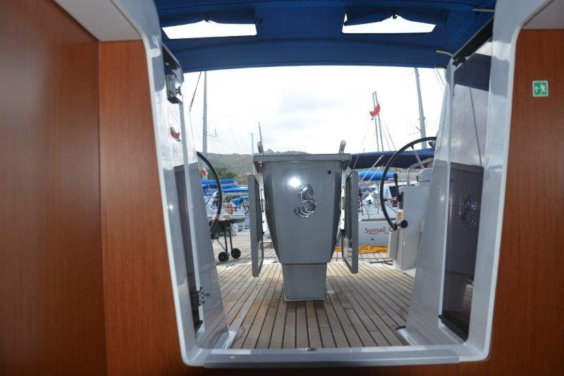 | Outside | Anker mit Kette, Badeleiter, Biminitop, Bootshaken, Cockpitdusche, Cockpitlautsprecher, Cockpitpolster, Deckbürste, elektr. Ankerwinsch, Fender, Festmacherleinen, Gangway, Kunststoff-Eimer (Pütz), Sprayhood, Wasserschlauch, Winschen |