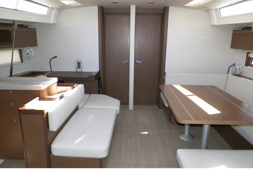 | Inside | Inverter 12V/220V, Kühlschrank, Pantryausstattung, Radio mit MP3 , Salontisch absenkbar, Ventilatoren in Kabinen, Warmwasser, Watermaker, WC (elektr.) |