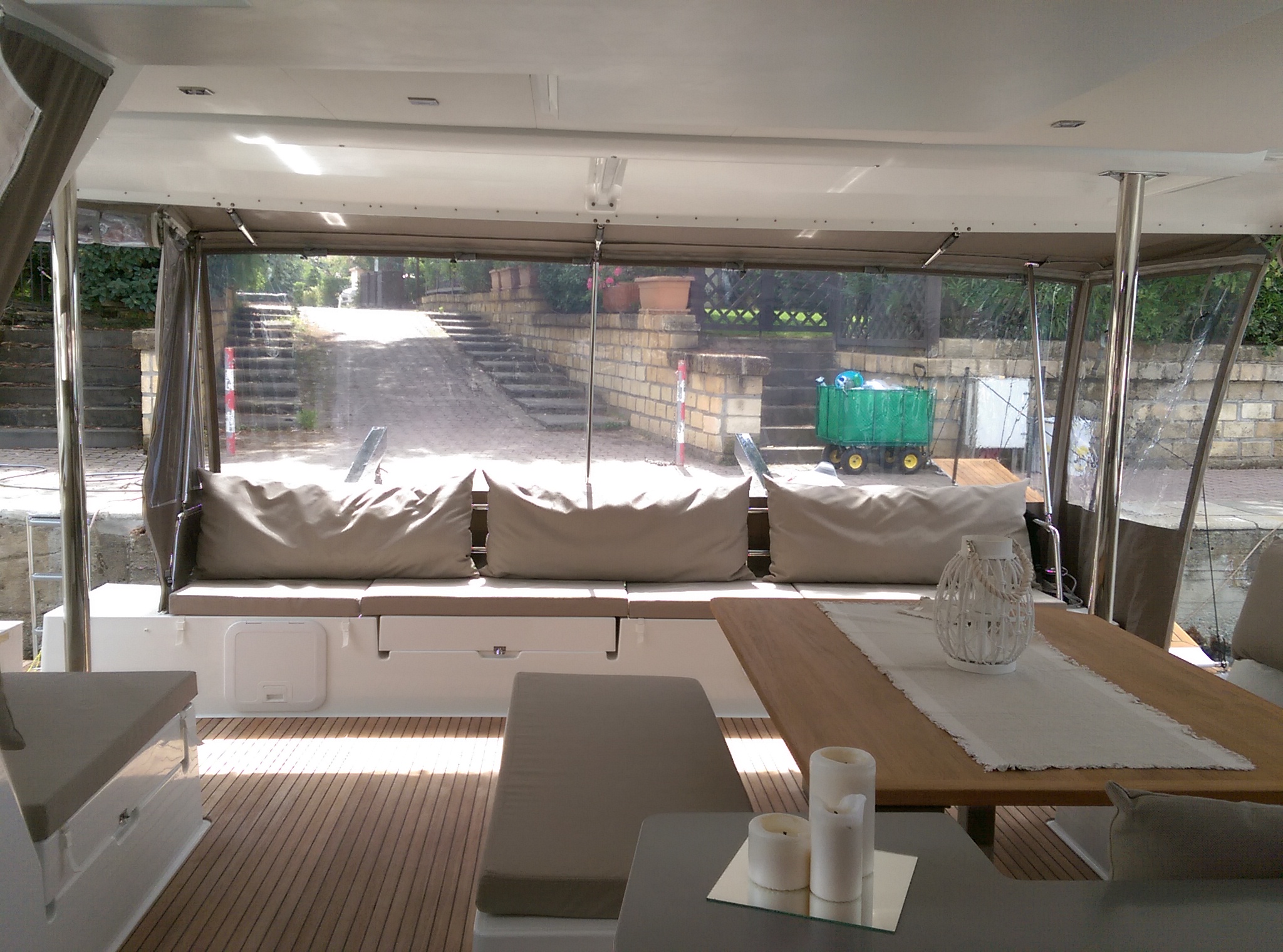 | Outside | Cockpitdusche, Cockpittisch, elektr. Ankerwinsch, Festmacherleinen, Teak im Cockpit, Winschen |