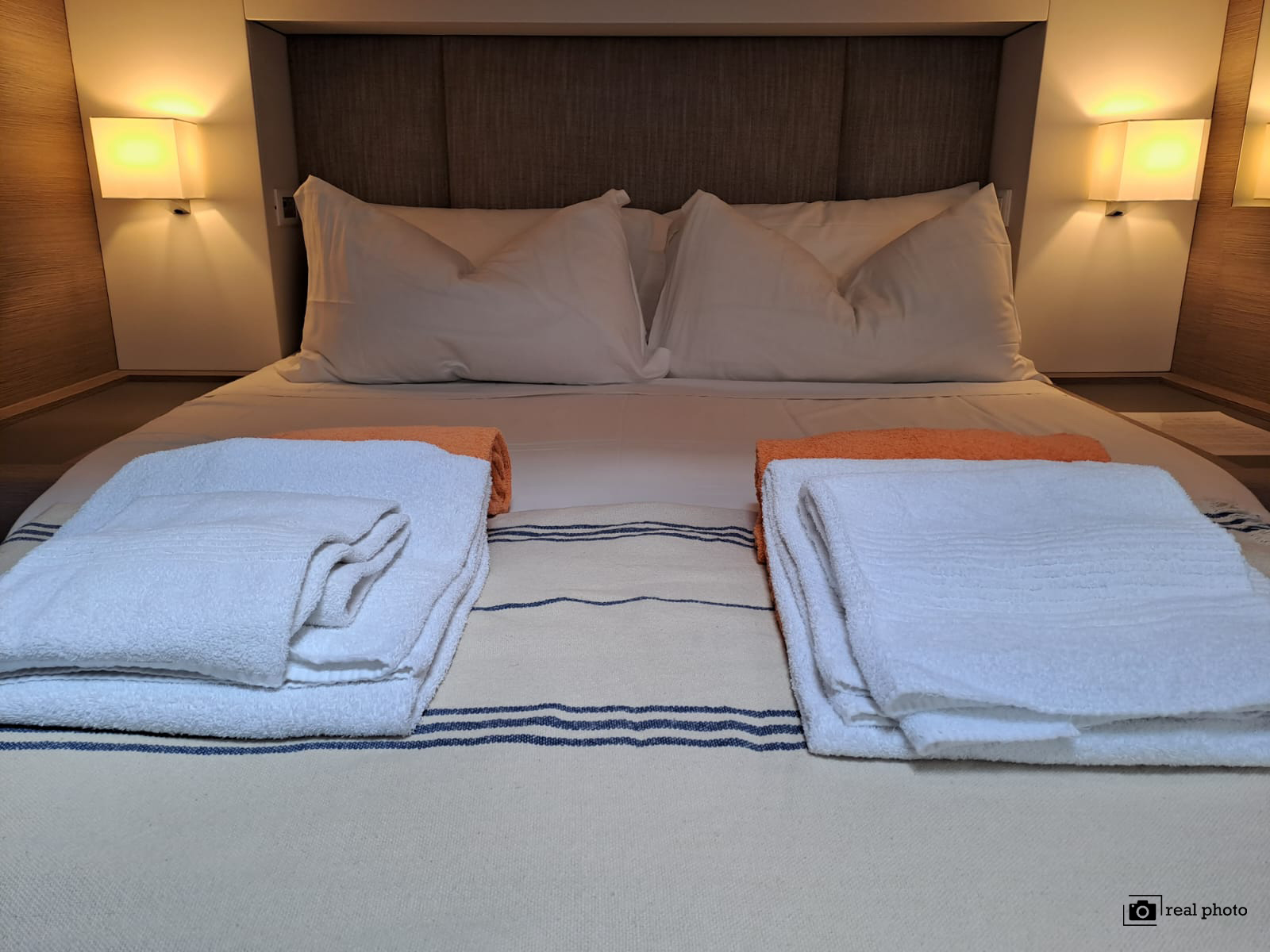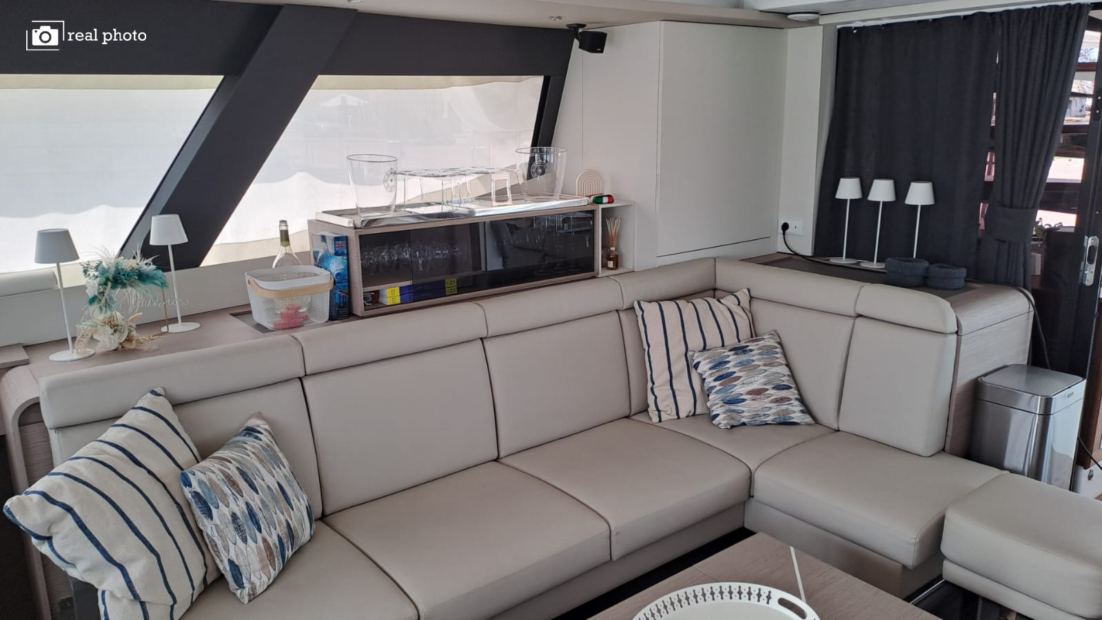 | Inside | Eiswürfelmaschine, Generator, Klimaanlage (ohne Landstrombedarf), Radio mit MP3 , TV, Warmwasser, Waschmaschine, Watermaker, WC (elektr.) |