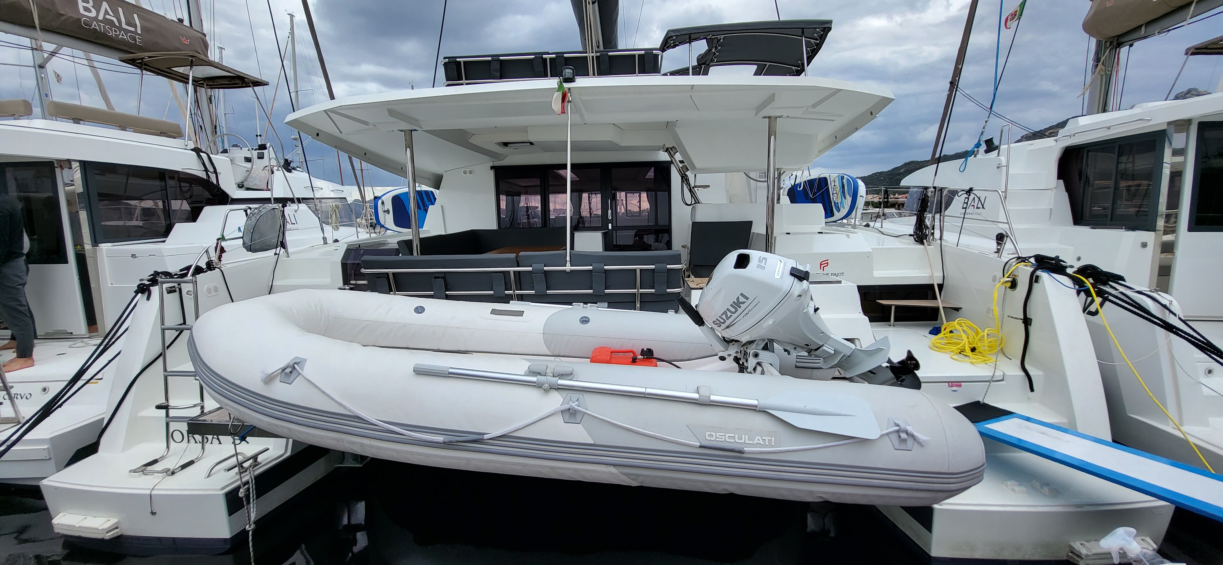 | Outside | Badeplattform (hydr.), Cockpitdusche, Cockpitpolster, Cockpittisch, Grill |