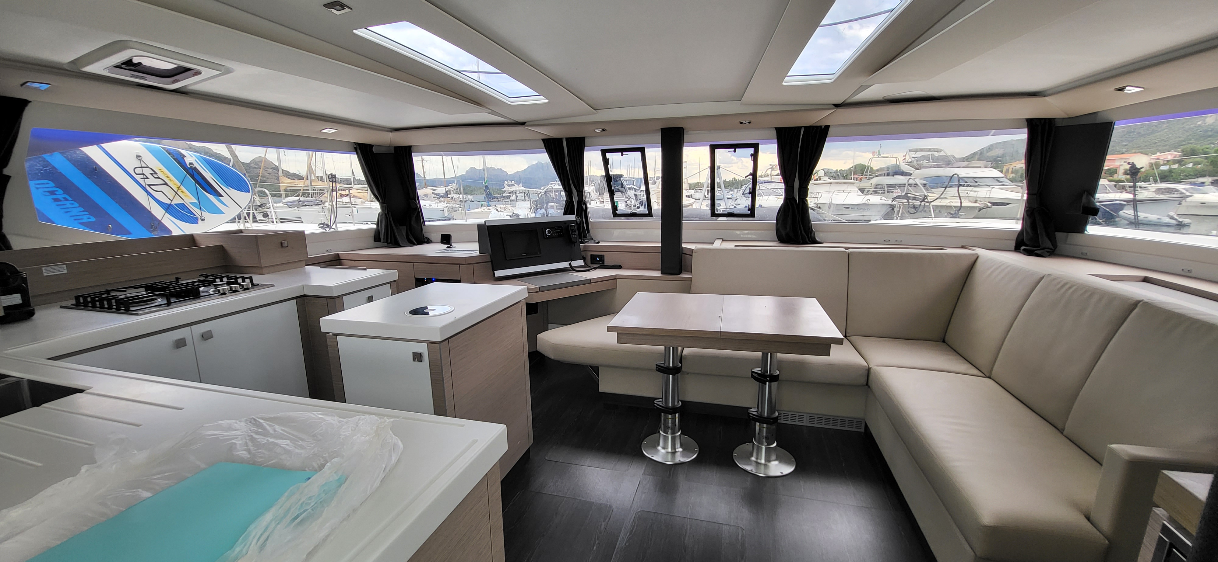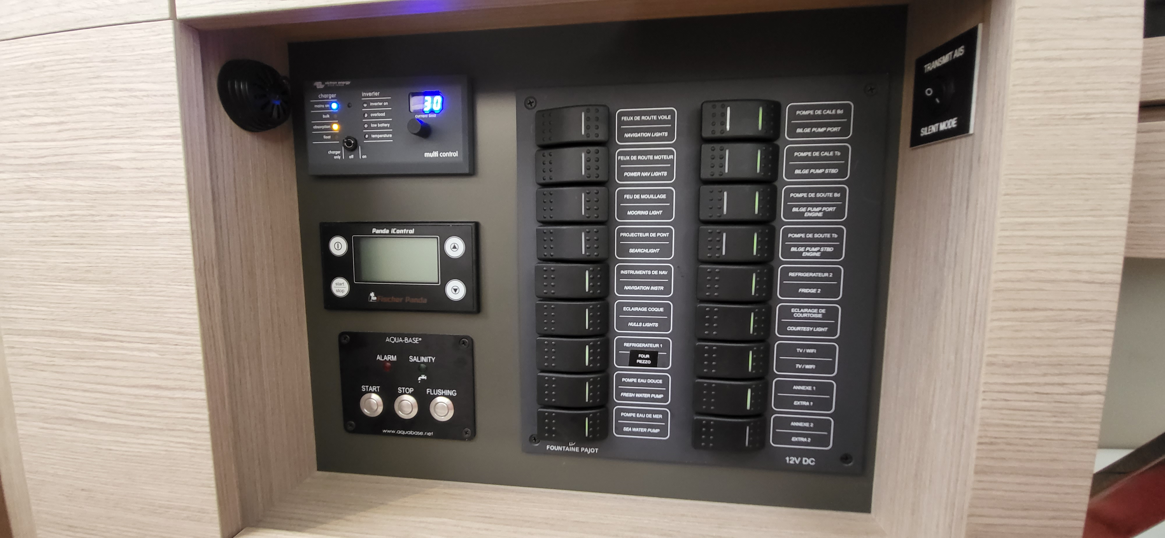 | Inside | Generator, Hi-Fi System, Klimaanlage (ohne Landstrombedarf), Kühlschrank, Radio mit MP3 , TV, Warmwasser, Waschmaschine, Watermaker, WC (elektr.) |