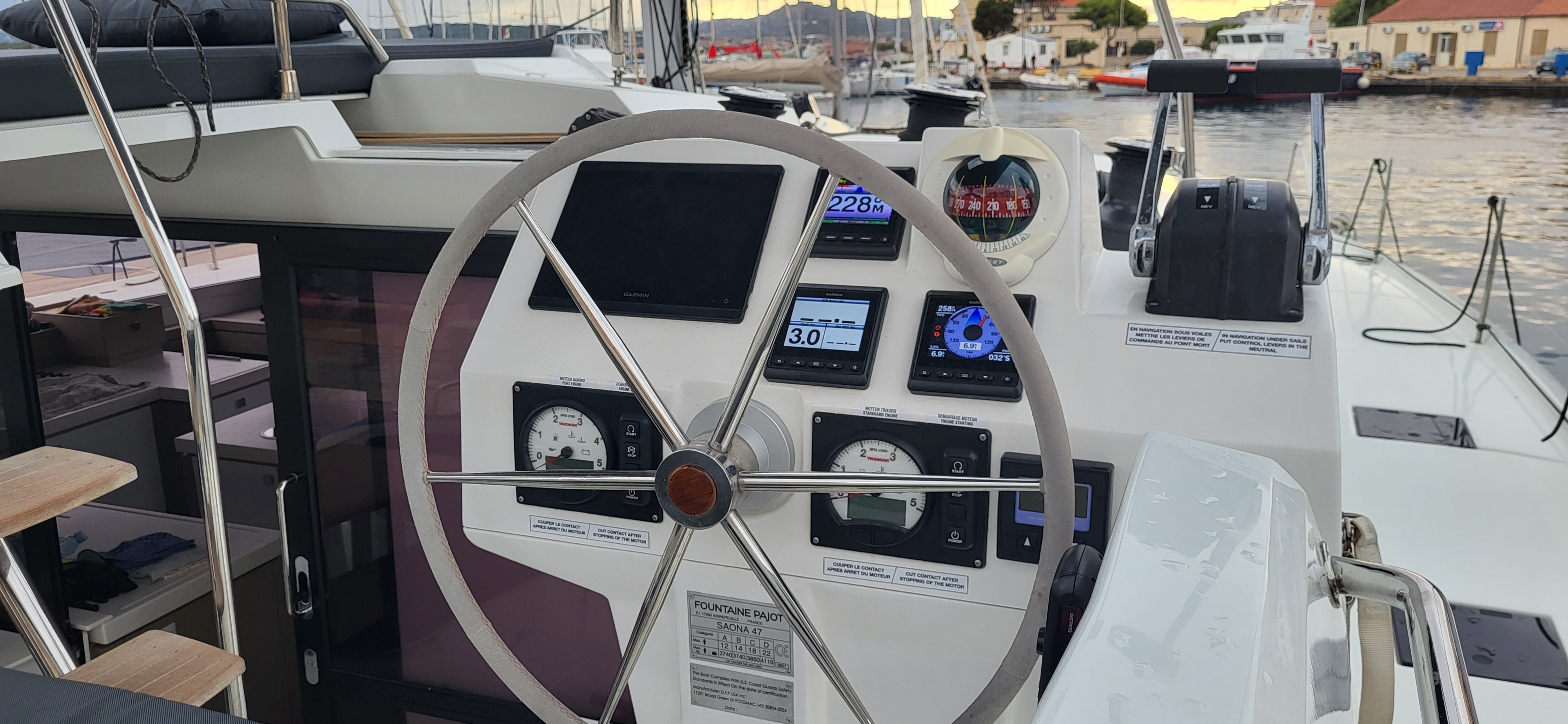 | Navigation | Echolot, GPS mit Kartenplotter im Cockpit, Radar, Sumlog, Windmesser |