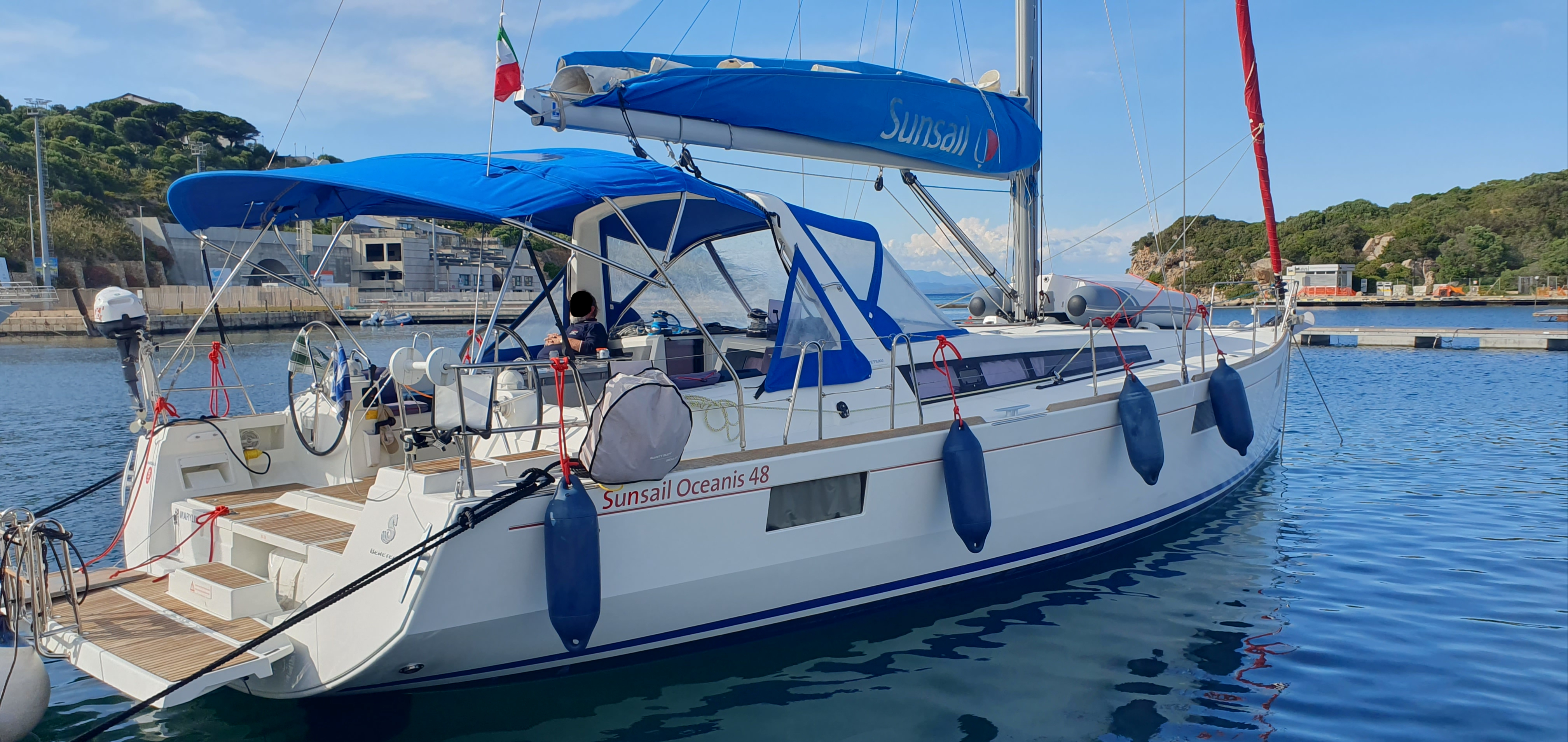 | Safety | Autopilot, Bootsmannstuhl, Bordapotheke, Bugstrahlruder, elektr. Bilgepumpe, Feststoffschwimmwesten, Feuerlöscher, Flickzeug und Ersatzteile für Segel, Motor und Beiboot, Handbilgepumpe, Handschuhe, Nebelhorn, Notpinne, Notsignale, Radarreflektor, Reserve-Motoröl, Rettungsinsel, Rettungskragen, Sicherheitsausrüstung, Sicherheitsgurt, Sicherheitsleinen, Taschenlampe, UKW-Funk, Zweitanker |