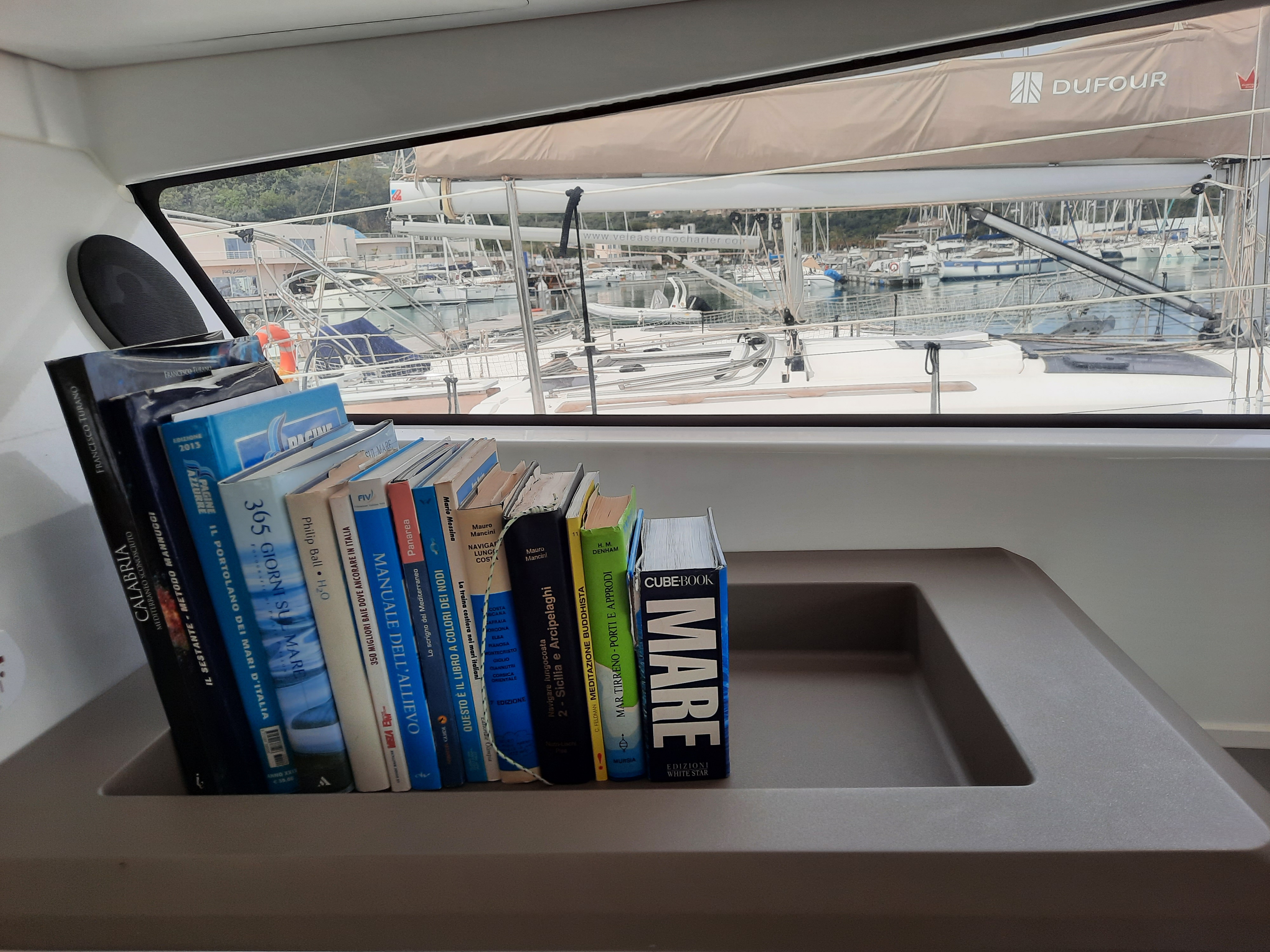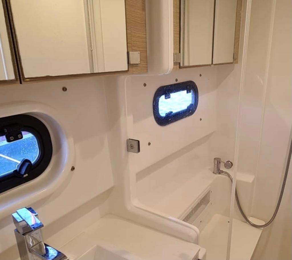 | Outside | Anker mit Kette, Badeleiter, Bootshaken, Cockpitleuchte, Deckpolster |