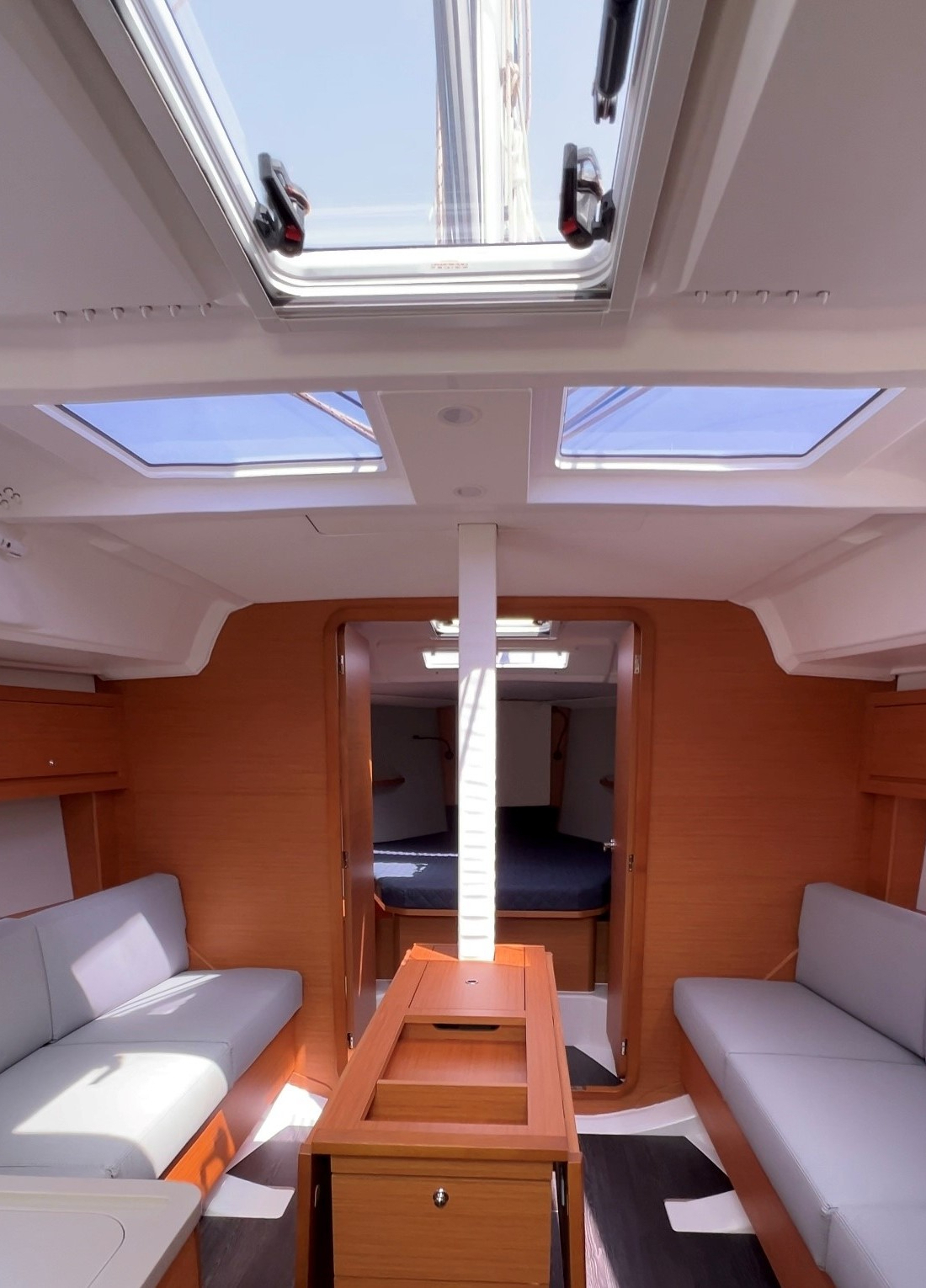 | Outside | Ankerwinsch, Außendusche, Badeleiter, Biminitop, Cockpitlautsprecher, Cockpittisch, Lifeline System, Solaranlage, Sprayhood, Spülbecken im Cockpit |
